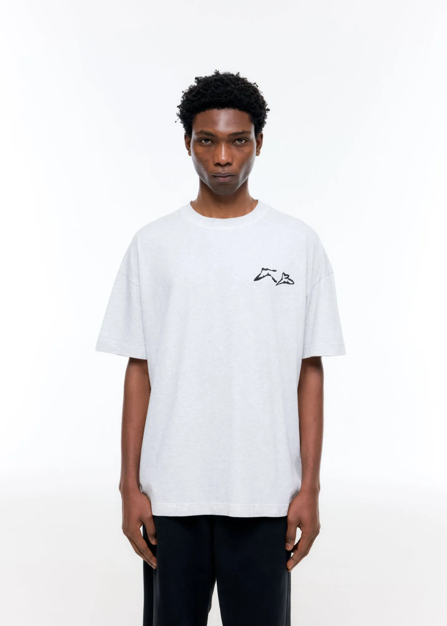 The Akimbo x CB T-shirt. Inspired by Akimbo’s Utah roots we’ve created a graphic that takes elements from both of our logos and printed it on our newly developed 280gsm single jersey. This garment has then undergone a heavy washing process to give it a natural aged fade.