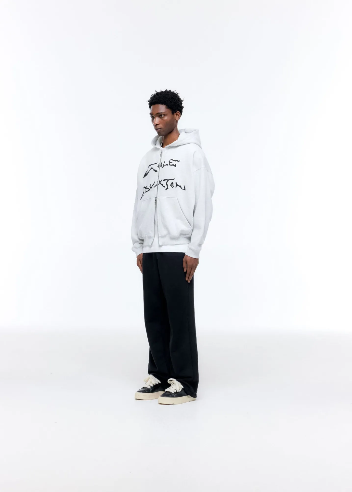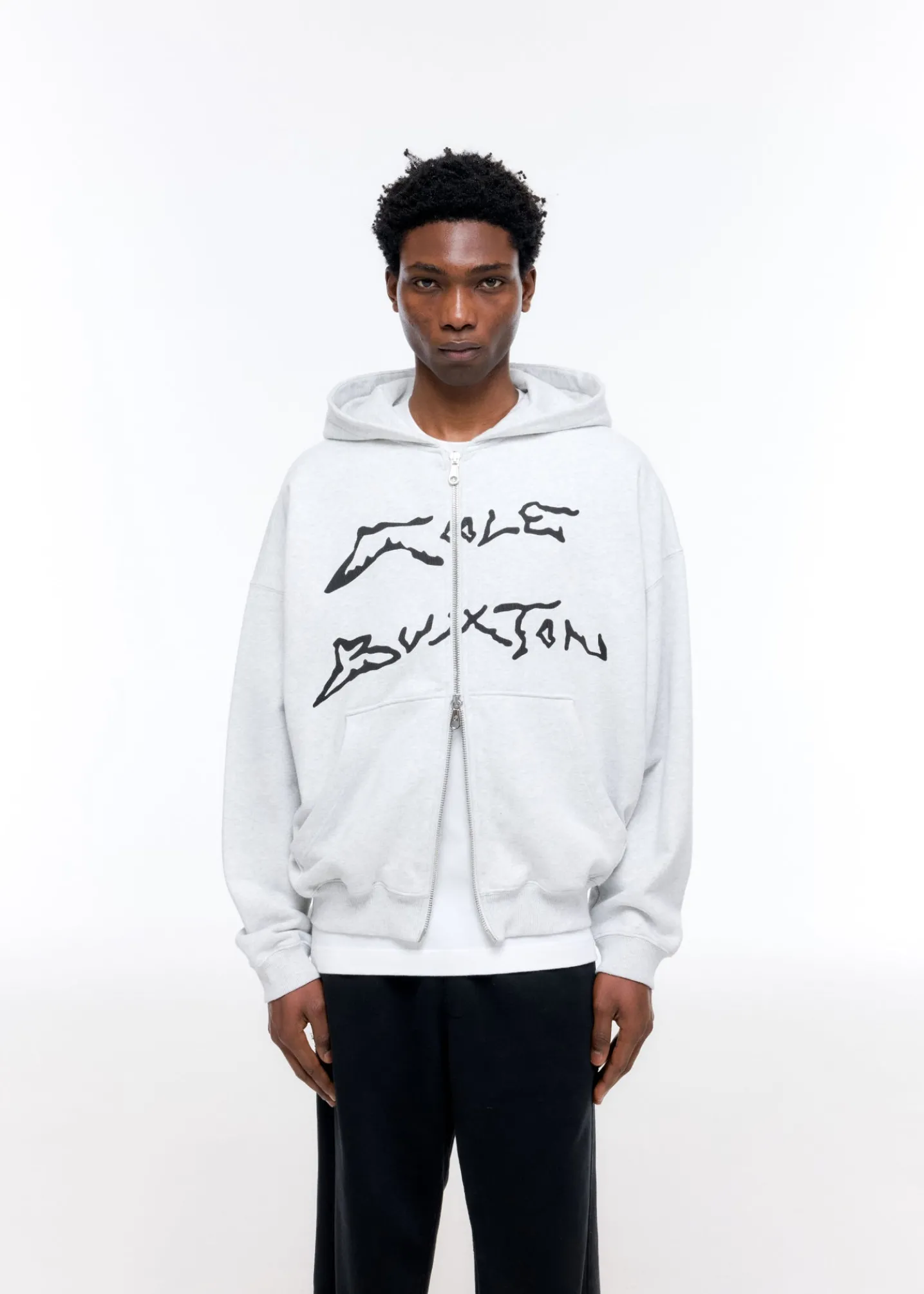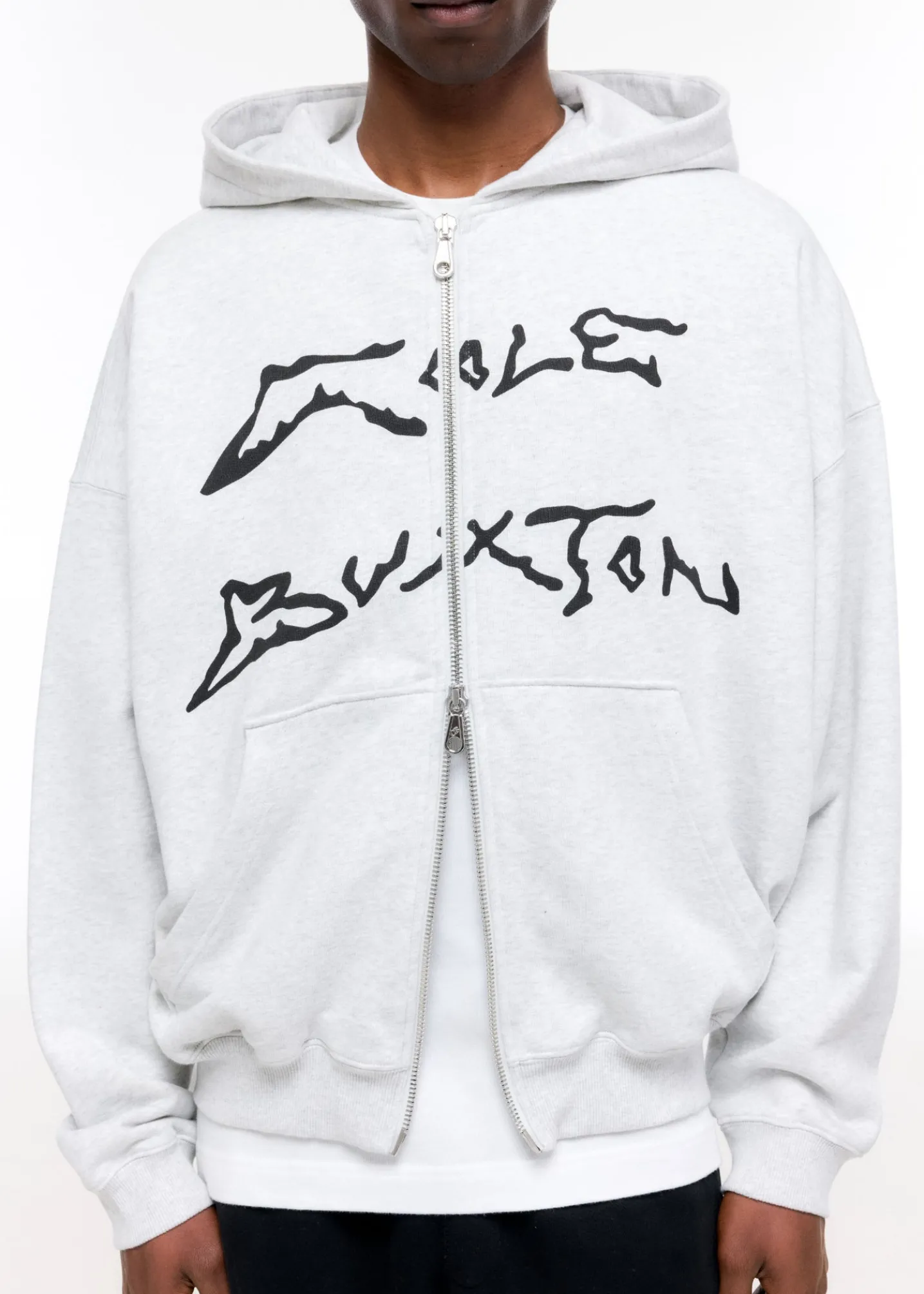 The Akimbo x CB zipped hoodie. Inspired by Akimbo’s Utah roots we’ve created a graphic that takes elements from both of our logos and printed it on our newly developed 500gsm half brushed American fleece. This garment has then undergone a heavy washing process to give it a natural aged fade.