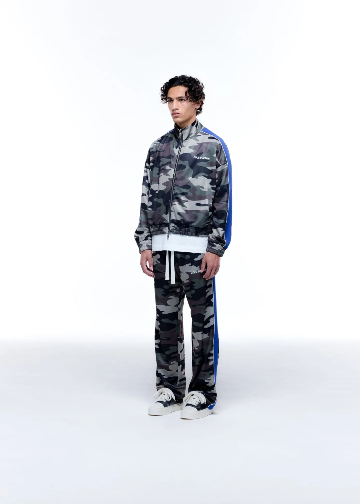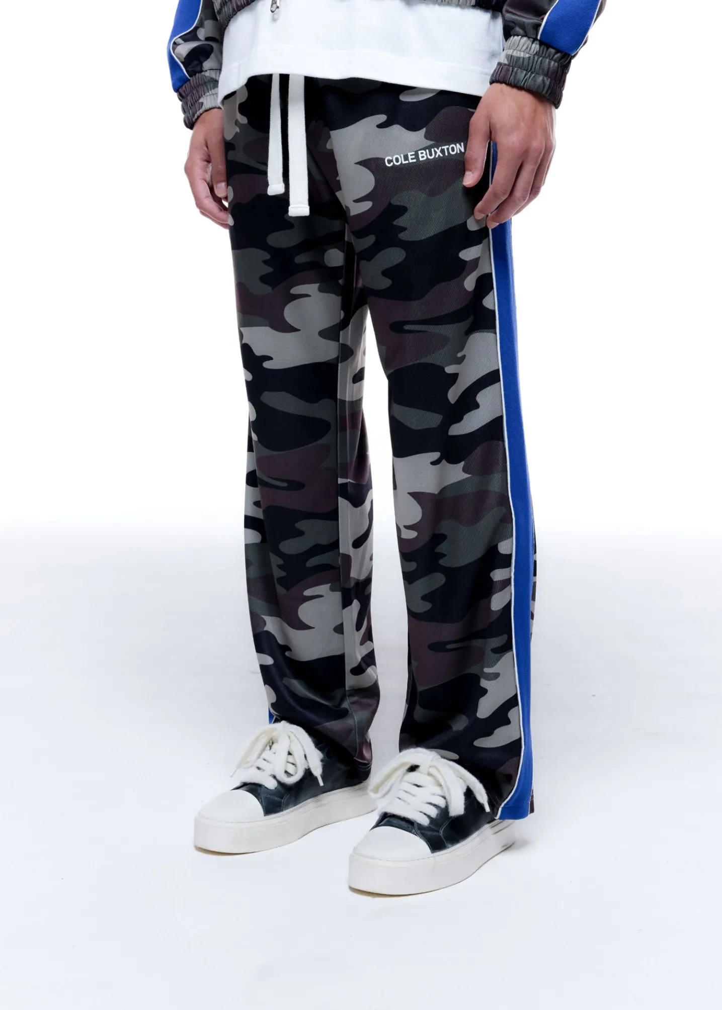 Cut from our drapey interlock polyester camouflage in a baggy straight leg silhouette featuring woven tape on the outer leg, screen printed logo on the left thigh and wide cotton drawstrings.