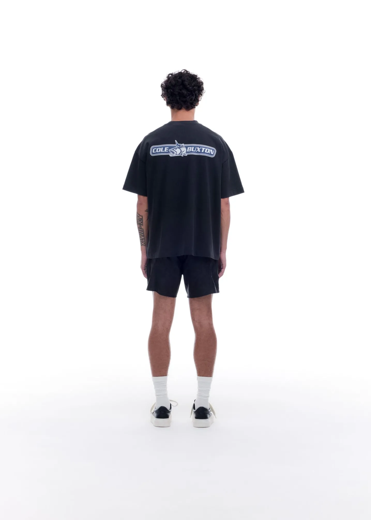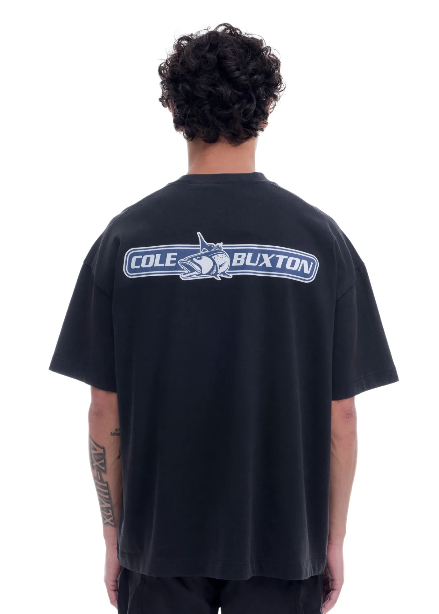 The CB fishing T-shirt. Cut in our refined ss25 shape with dropped shoulders from our luxury 100% cotton 220gsm single jersey. Featuring our signature cover stitched neckline and a screen printed chest/back logo inspired by big-game fishing.