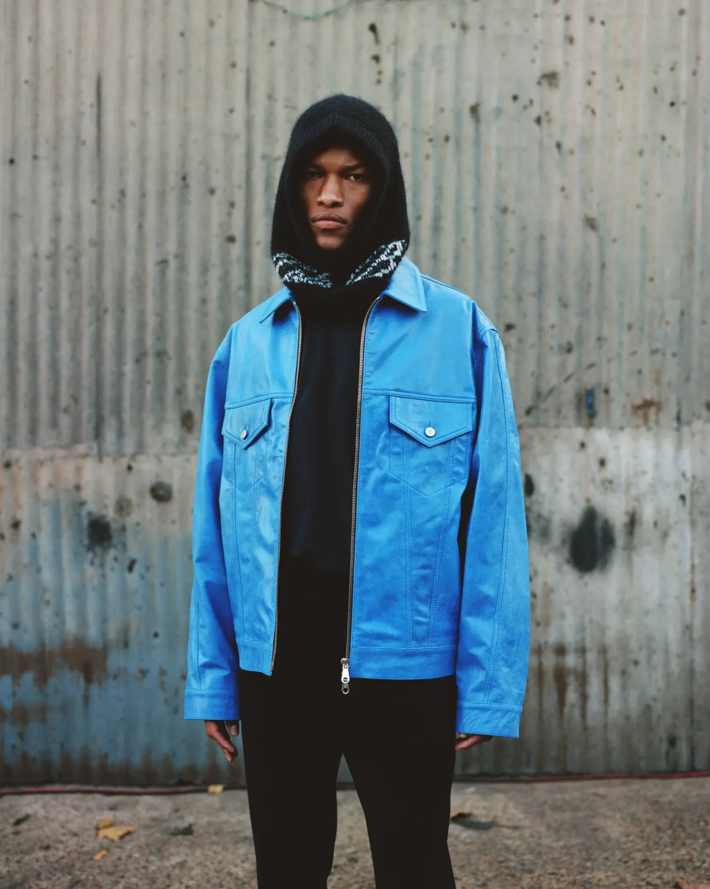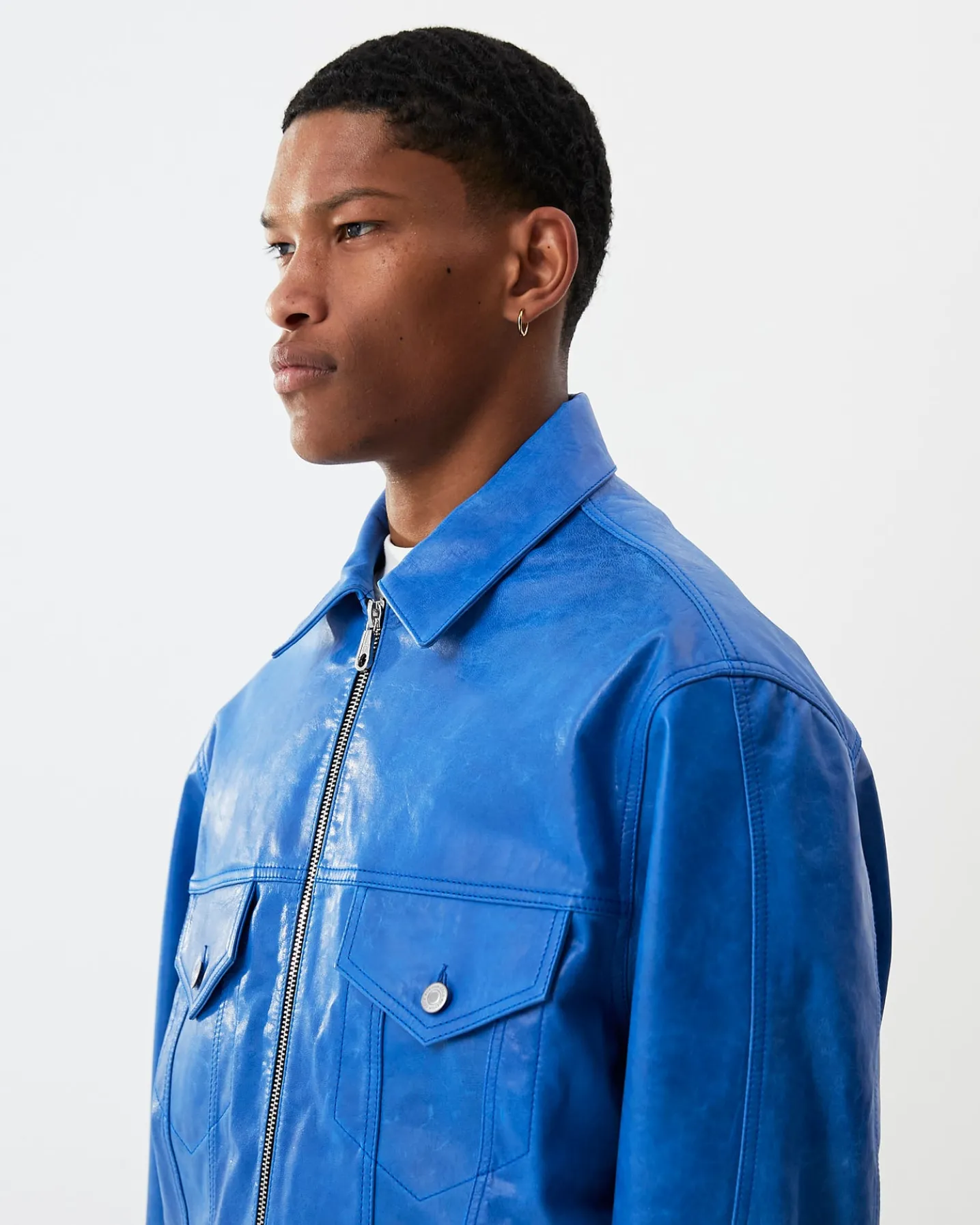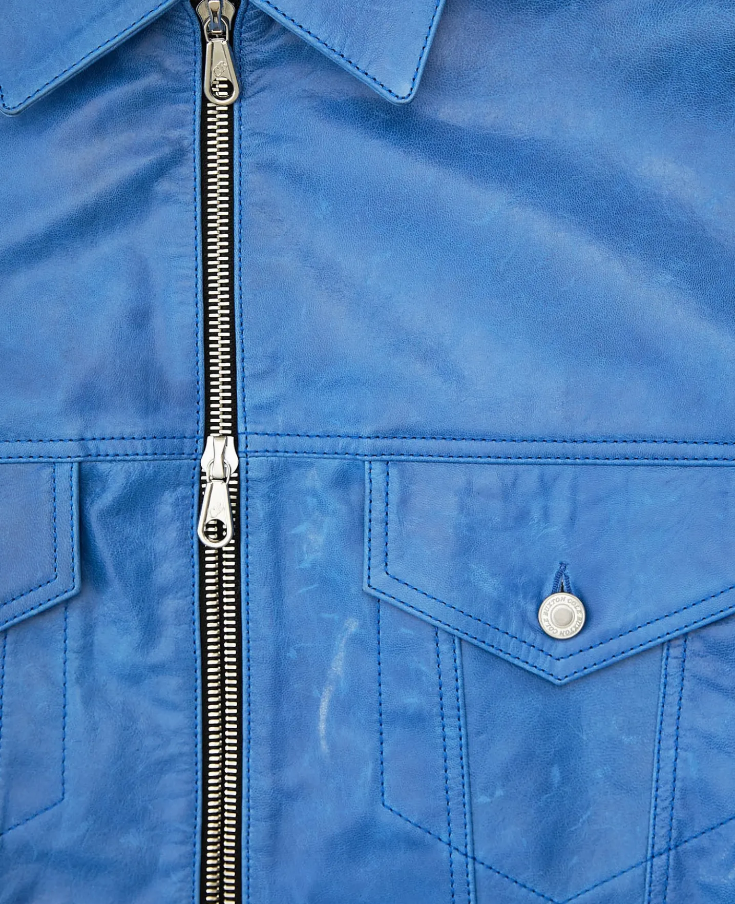 A nod to classic Americana our leather trucker jacket is cut from skins that have been heavily tumbled to create a soft handle. Details include, 2 chest pockets, outer arm seam, subtle “Buxton” debossing across the back and finished with riri hardware throughout.