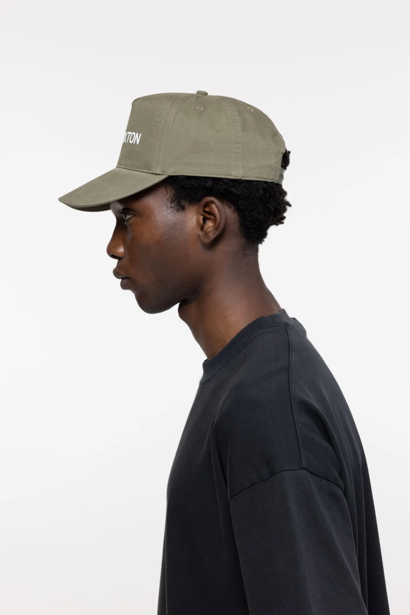 Cotton canvas twill cap in a boxy silhouette with exaggerated dart at the centre front. Featuring our classic Cole Buxton print.