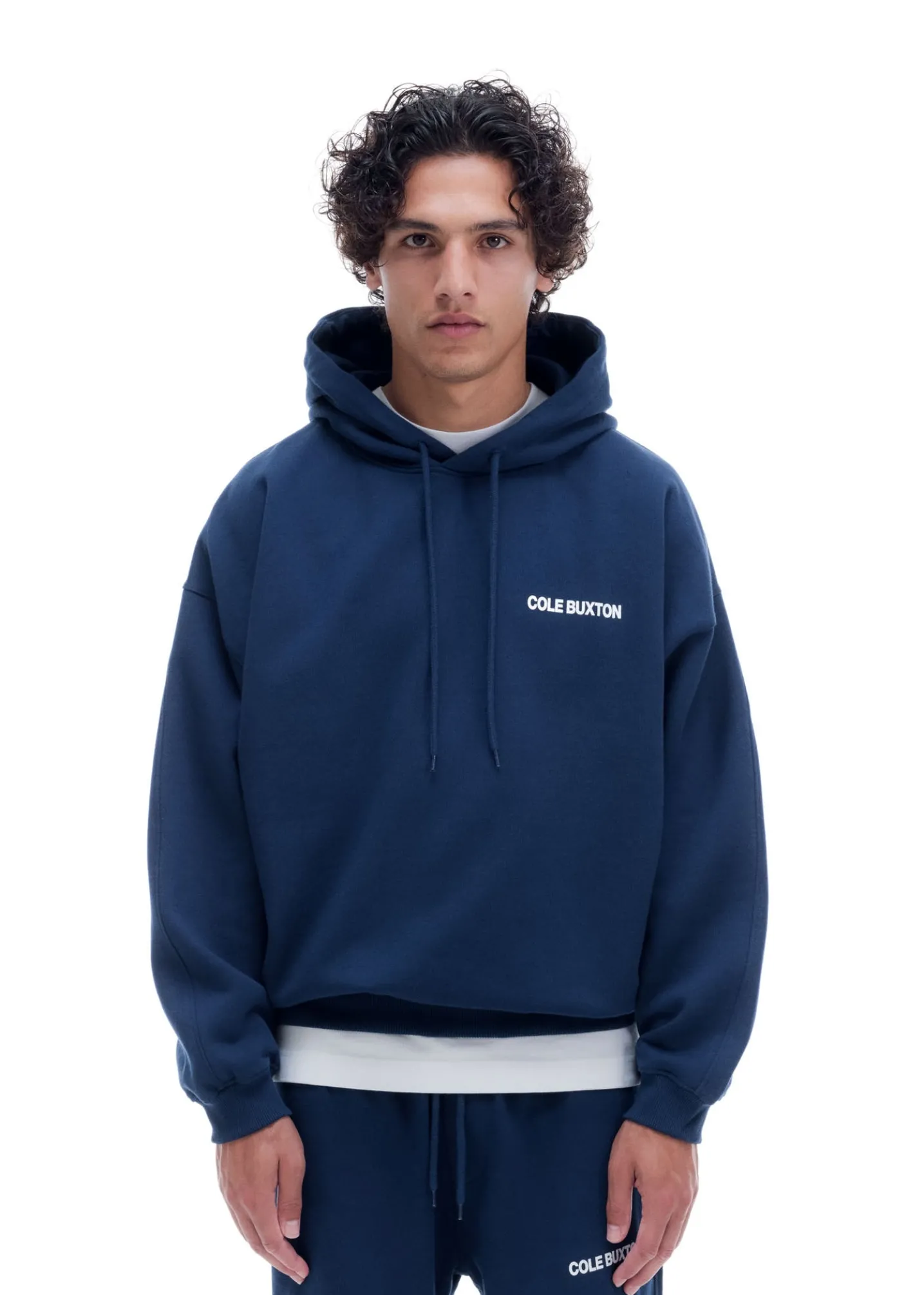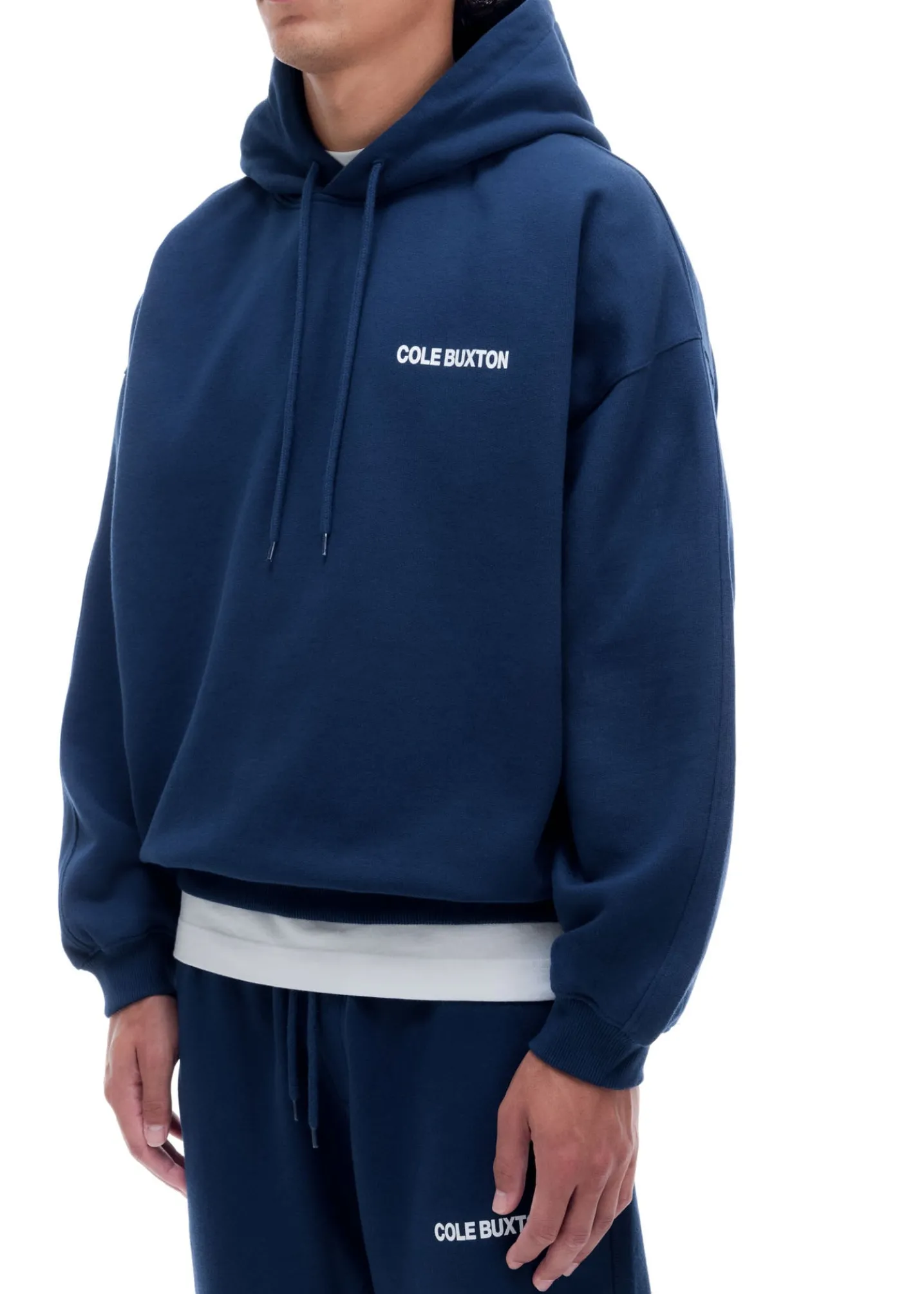 The Cole Buxton Sportswear Hoodie. Defined by our signature silhouette, twisted outer-arm seam and dropped shoulders. This features our large back print inspired by Olympic national teams and a front Cole Buxton emblem on the left chest.