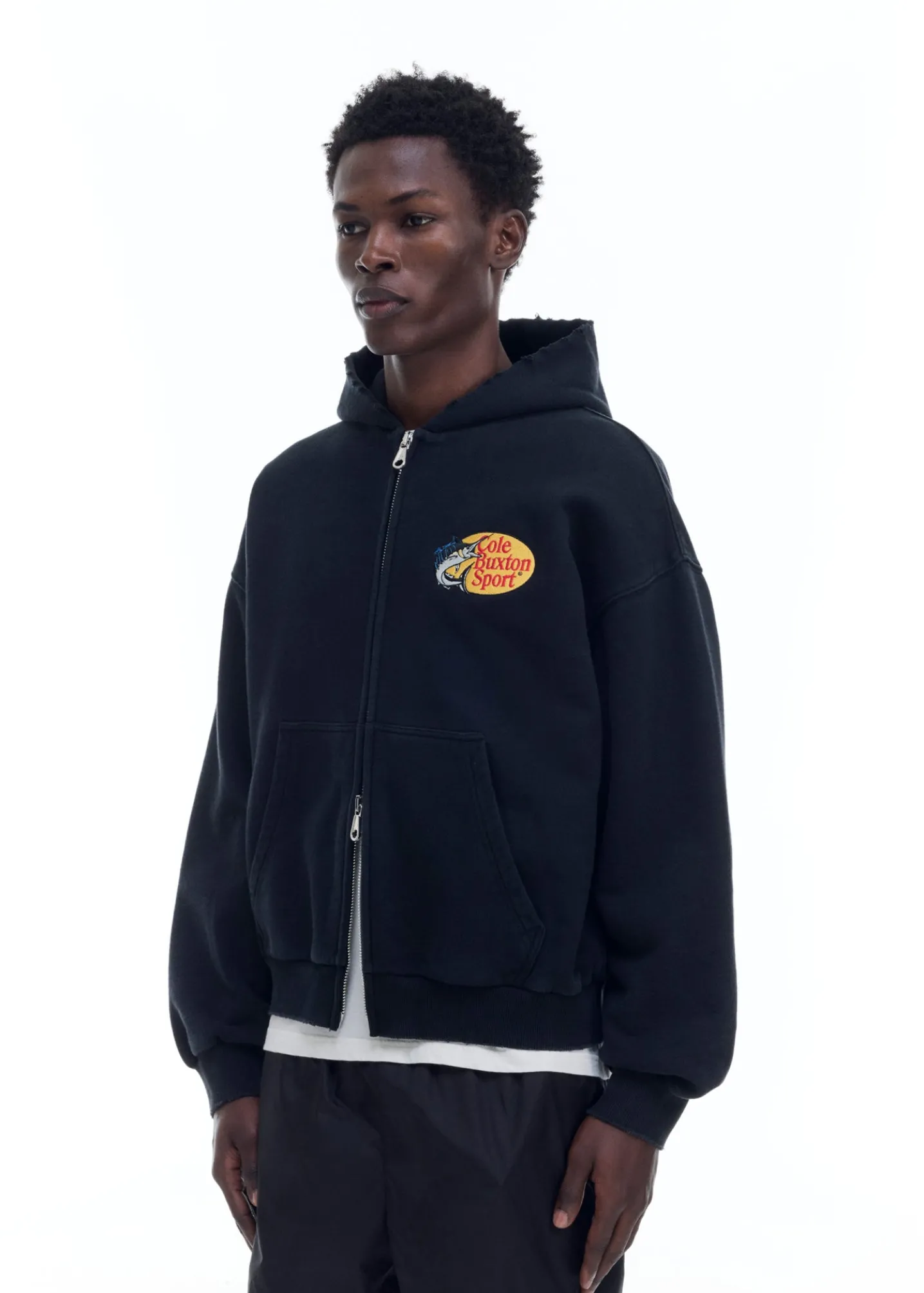 Introducing the CB sport fishing zipped hoodie. Cut from our 430gsm brushed back cotton in a brand new cropped silhouette featuring our marlin logo embroidery patch, a 2-way CB branded zip and single needle cover-stitched all over.