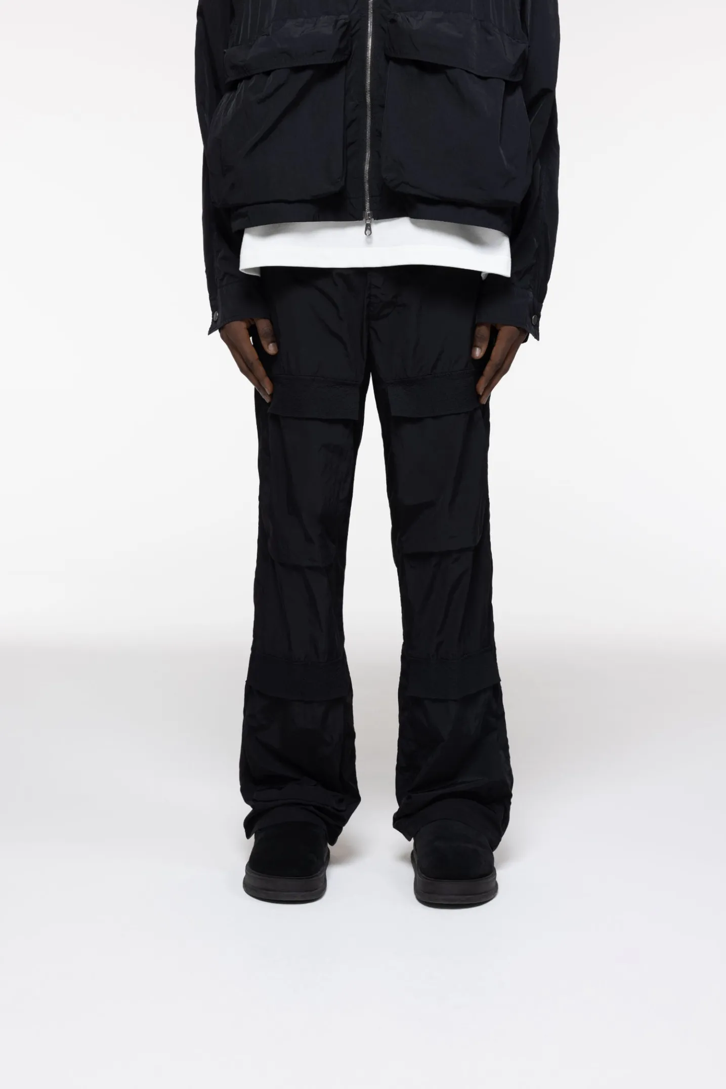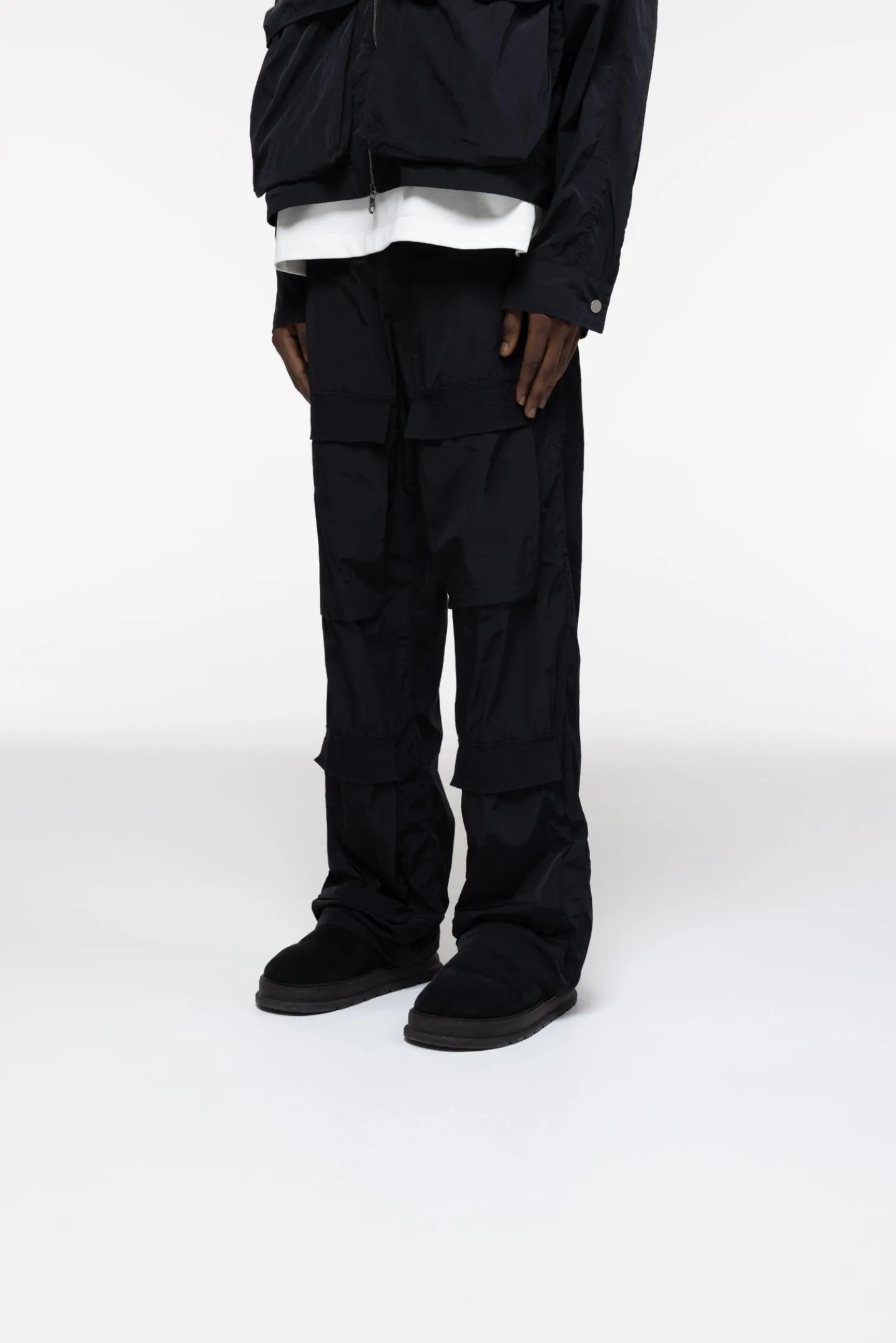 These pants have been cut from a lightweight nylon in a baggy straight leg silhouette. The standout feature of these pants are the double cargo pockets on each leg with quilted pocket flaps. We have dyed this garment with a cold wash technique to emphasise the detailing and finished it with a CB branded zipped fly..