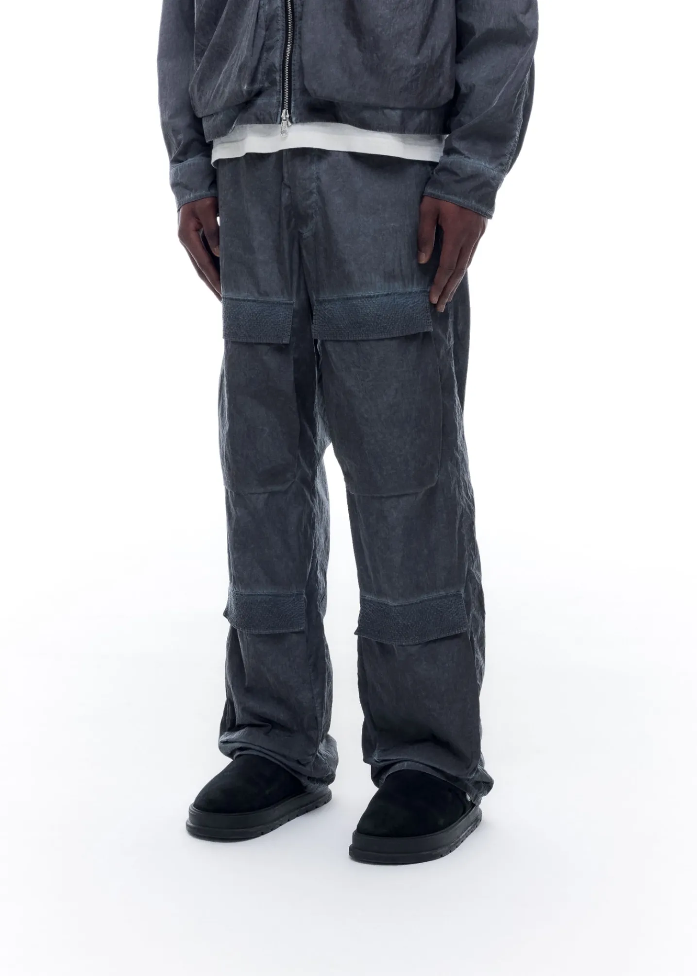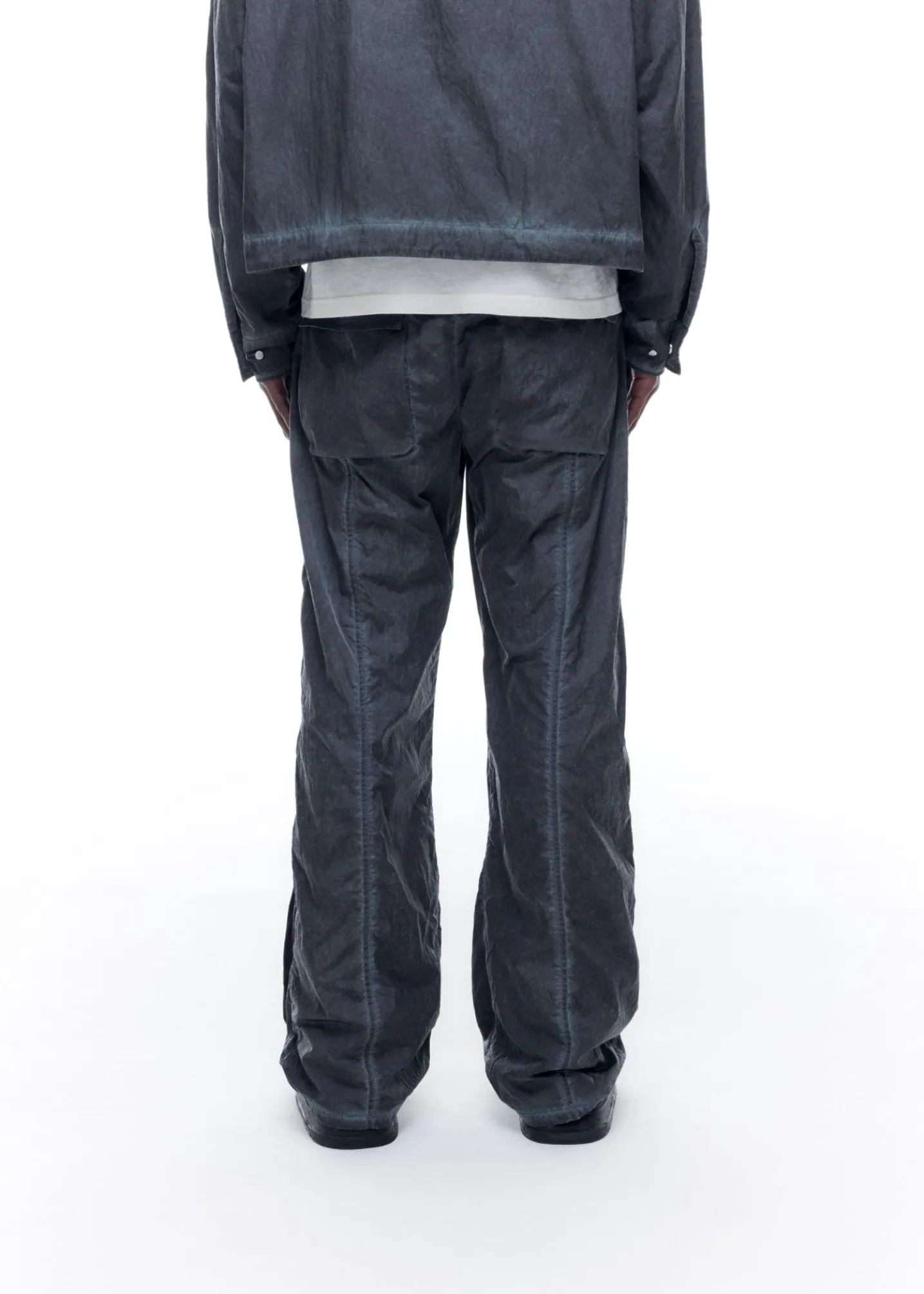These pants have been cut from a lightweight nylon in a baggy straight leg silhouette. The standout feature of these pants are the double cargo pockets on each leg with quilted pocket flaps. We have dyed this garment with a cold wash technique to emphasise the detailing and finished it with a CB branded zipped fly..