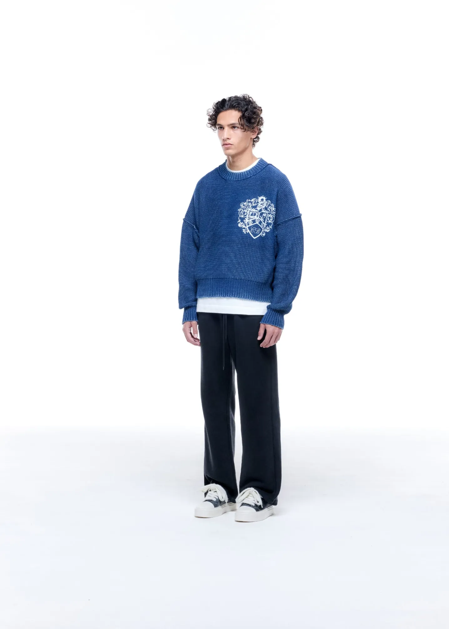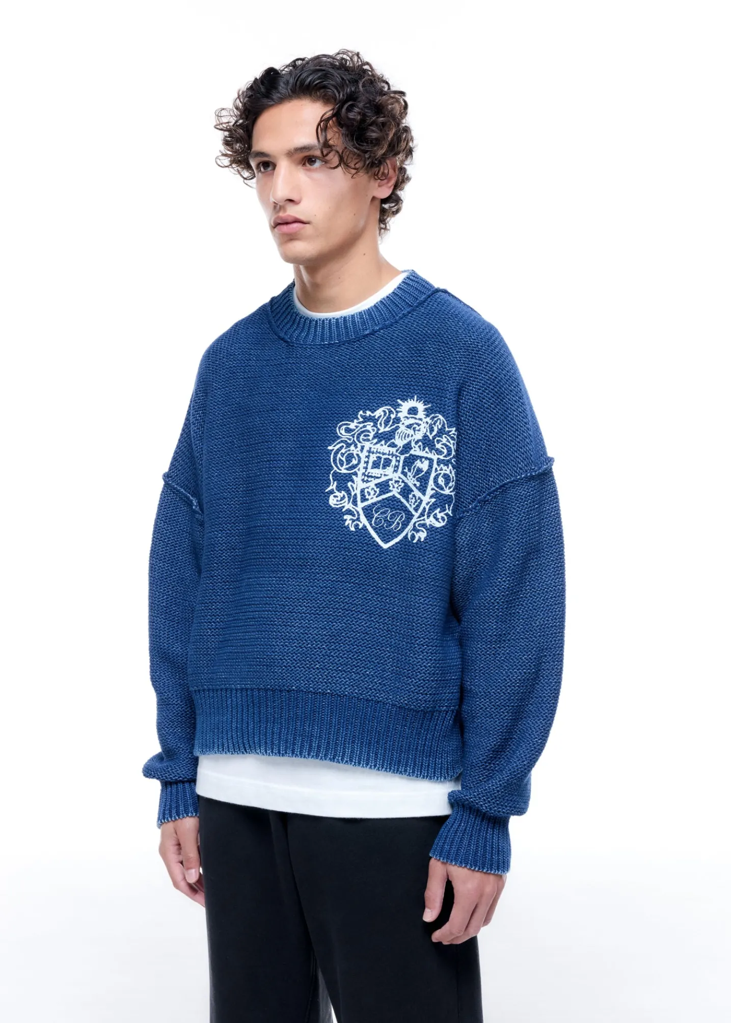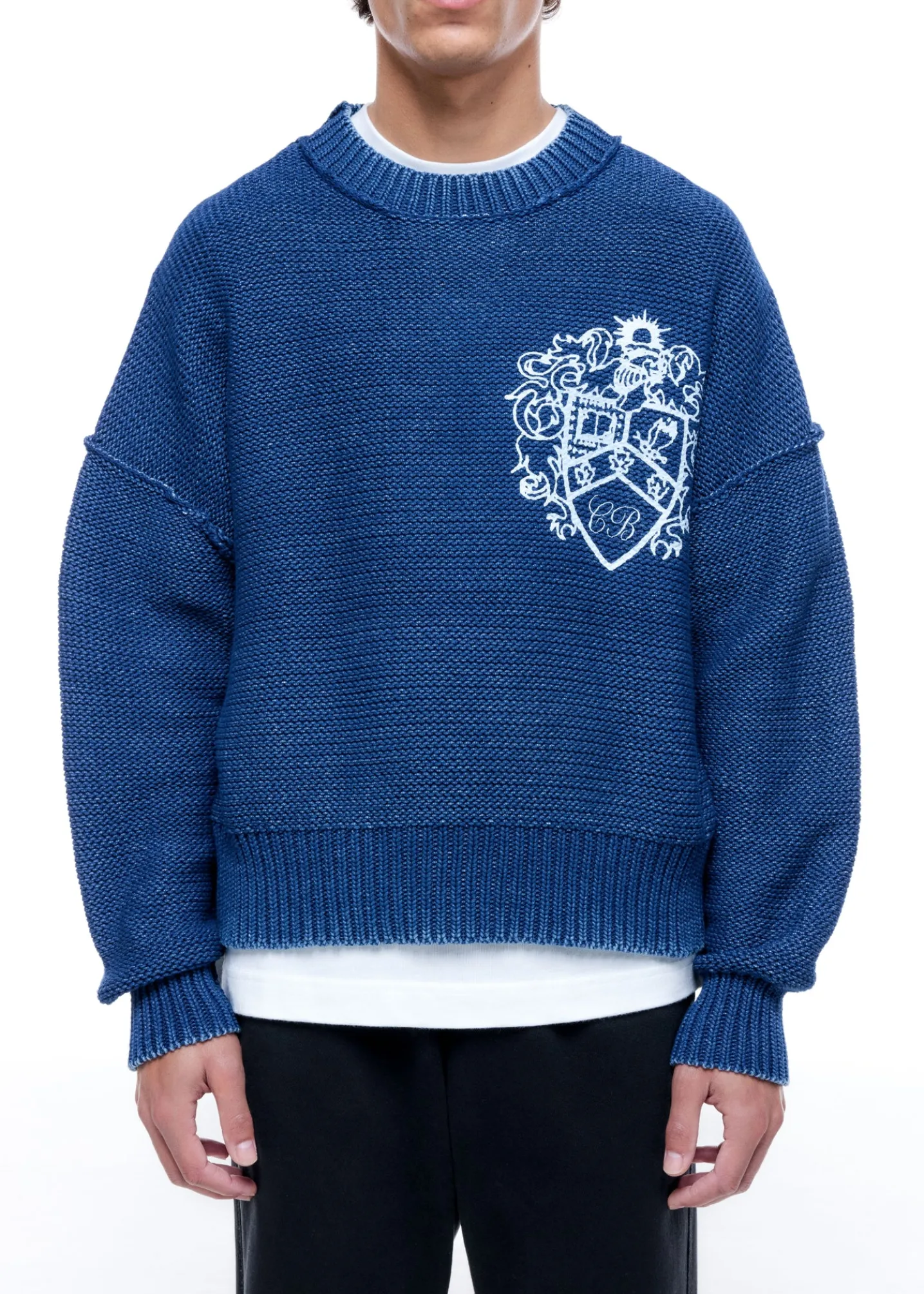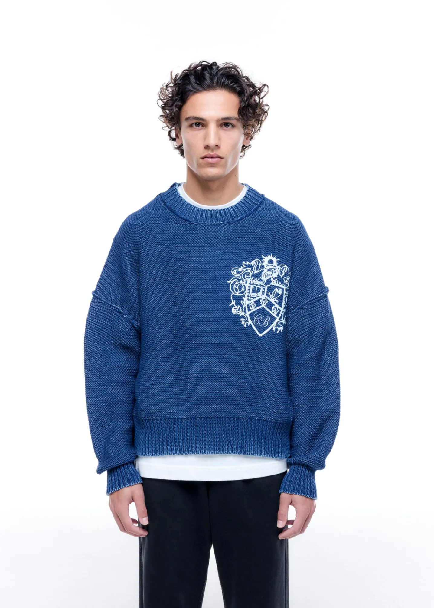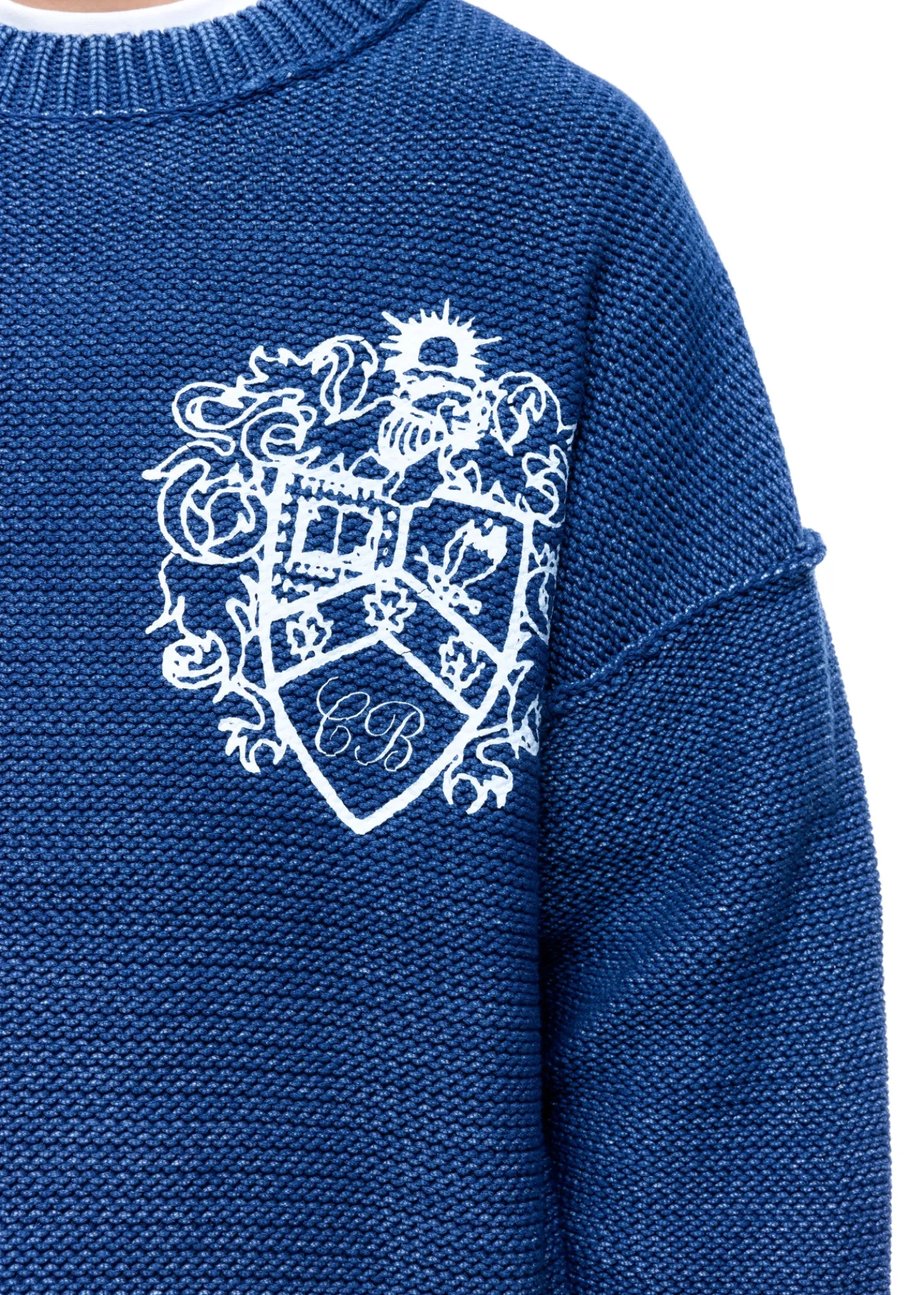 This sweatshirt has been knitted in a 100% cotton with a deep rib and acid washed for a vintage faded patina. The silhouette is cropped in length with dropped shoulders, a relaxed neck/hemline to sit perfectly over a t-shirt or by itself. This garment has been designed to be fully reversible with one side plain and faded and the other side featuring our screen printed collegiate crest logo which perfectly encapsulates a timeless Ivy League style.