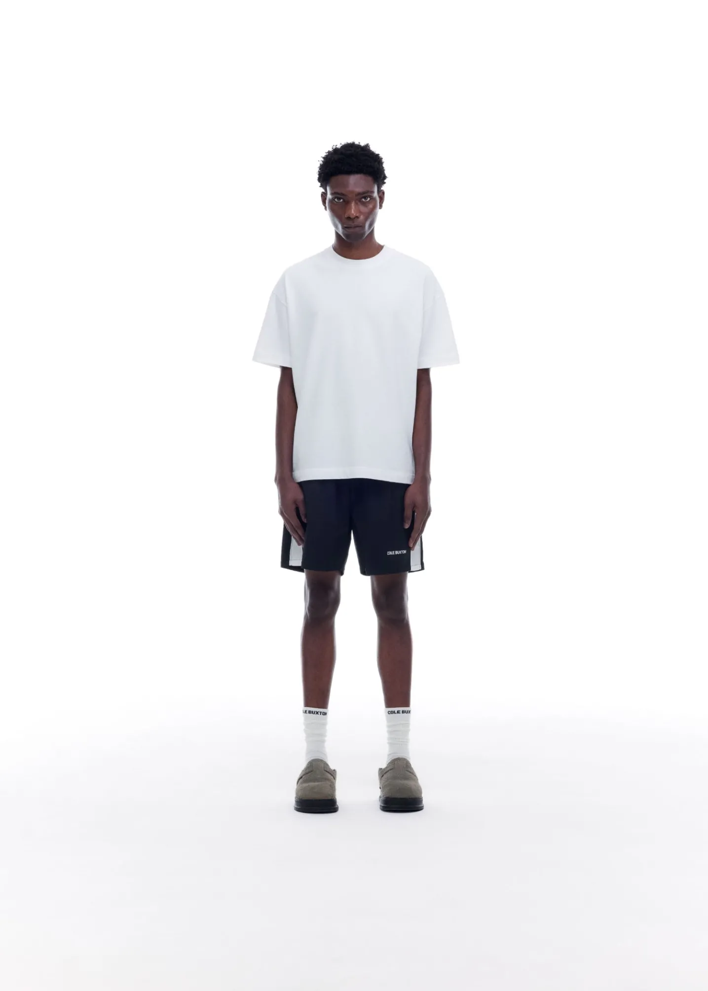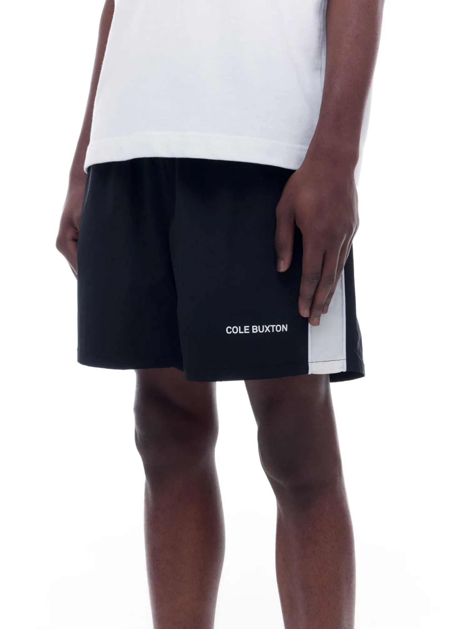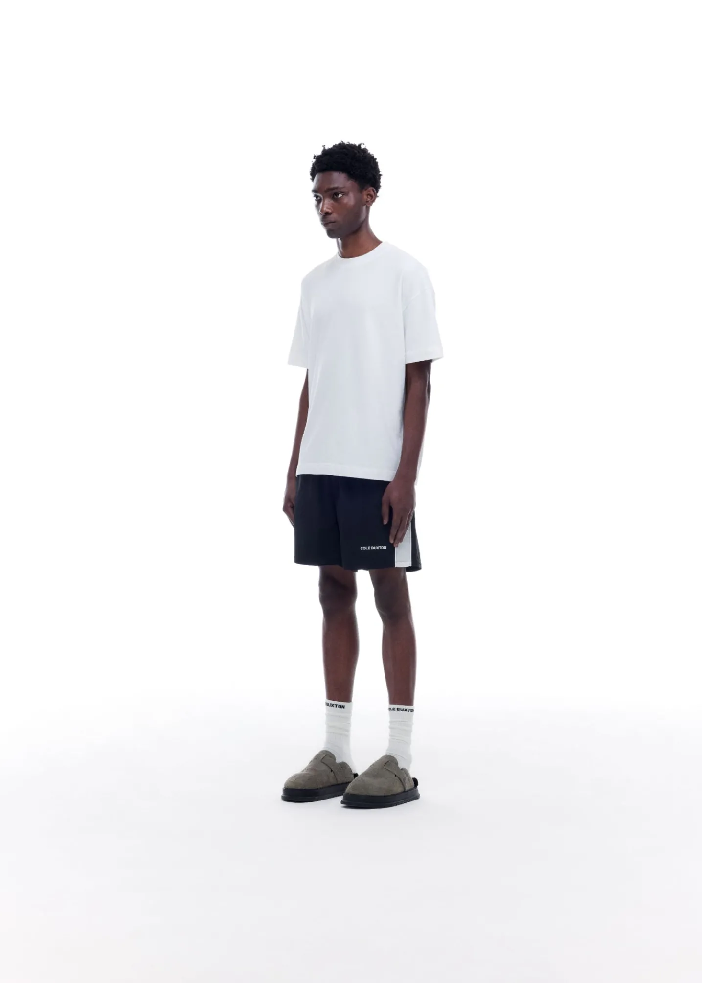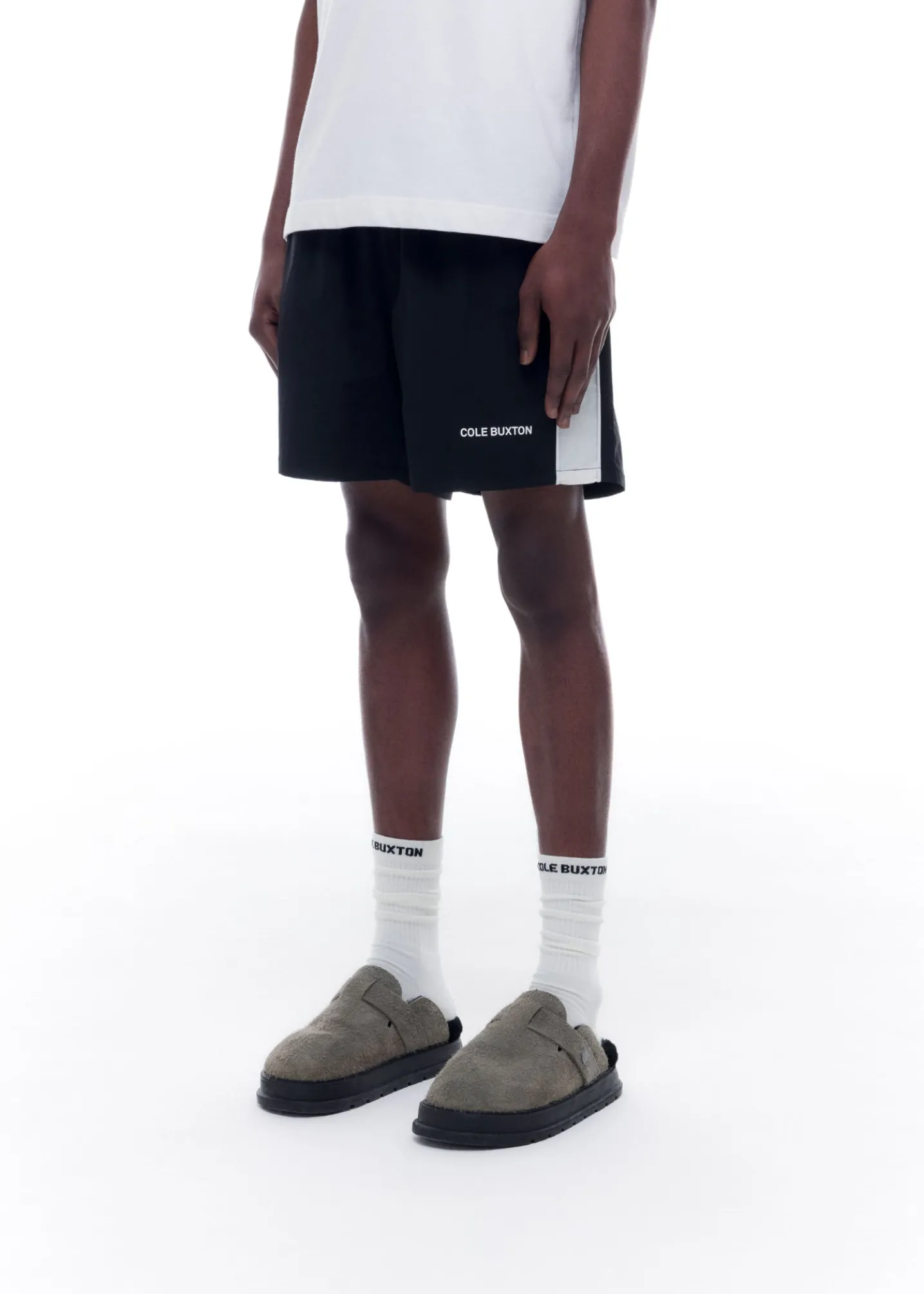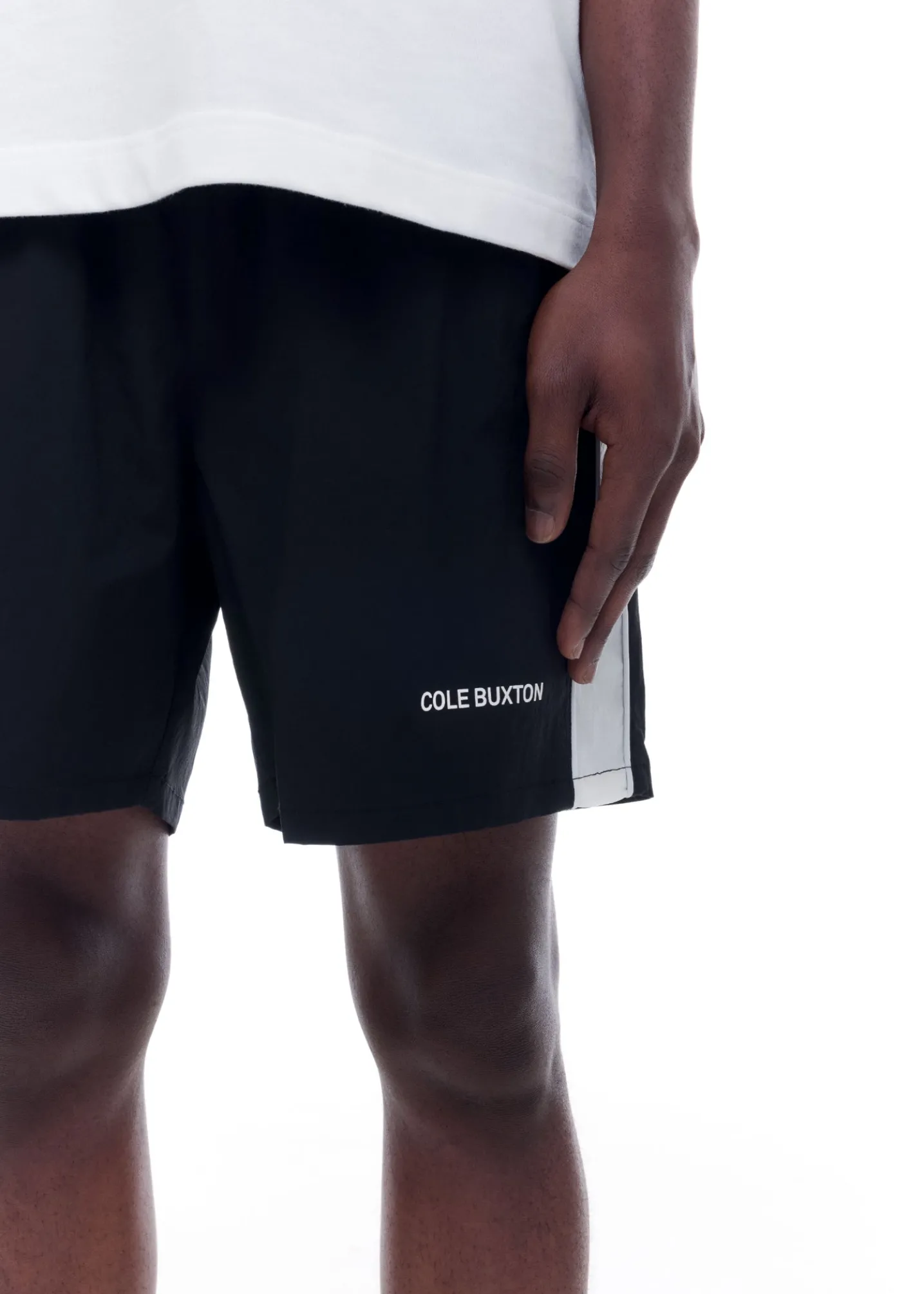 Brand new for SS25 are these taped swim shorts. Cut from quick dry Nylon in old school mid-thigh silhouette with woven tape on the outer leg and, screen printed logo on the left thigh. We have lined them with mesh and finished them with our signature CB branded zips.