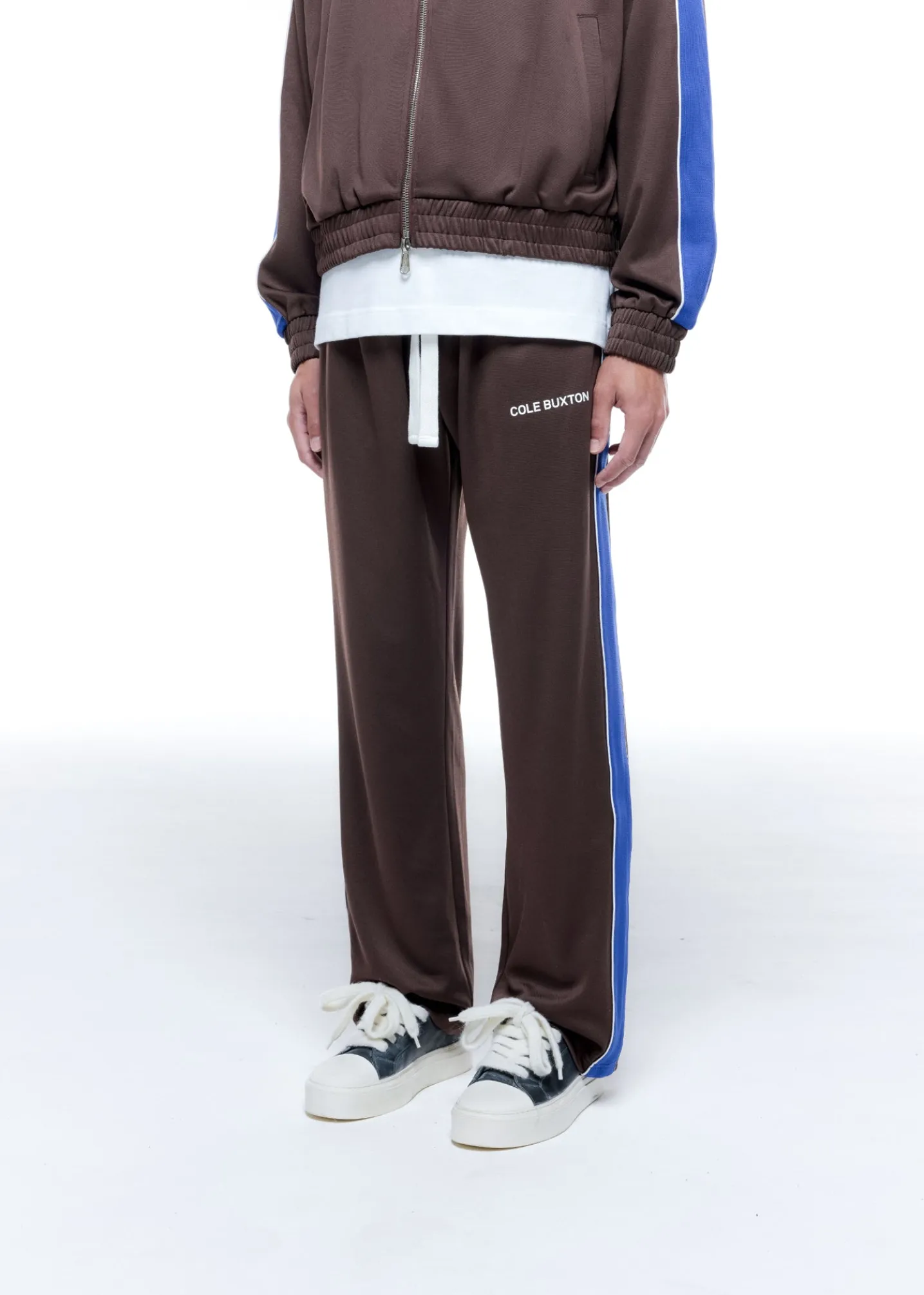 Cut from our drapey interlock polyester in a baggy straight leg silhouette featuring woven tape on the outer leg, screen printed logo on the left thigh and wide cotton drawstrings.