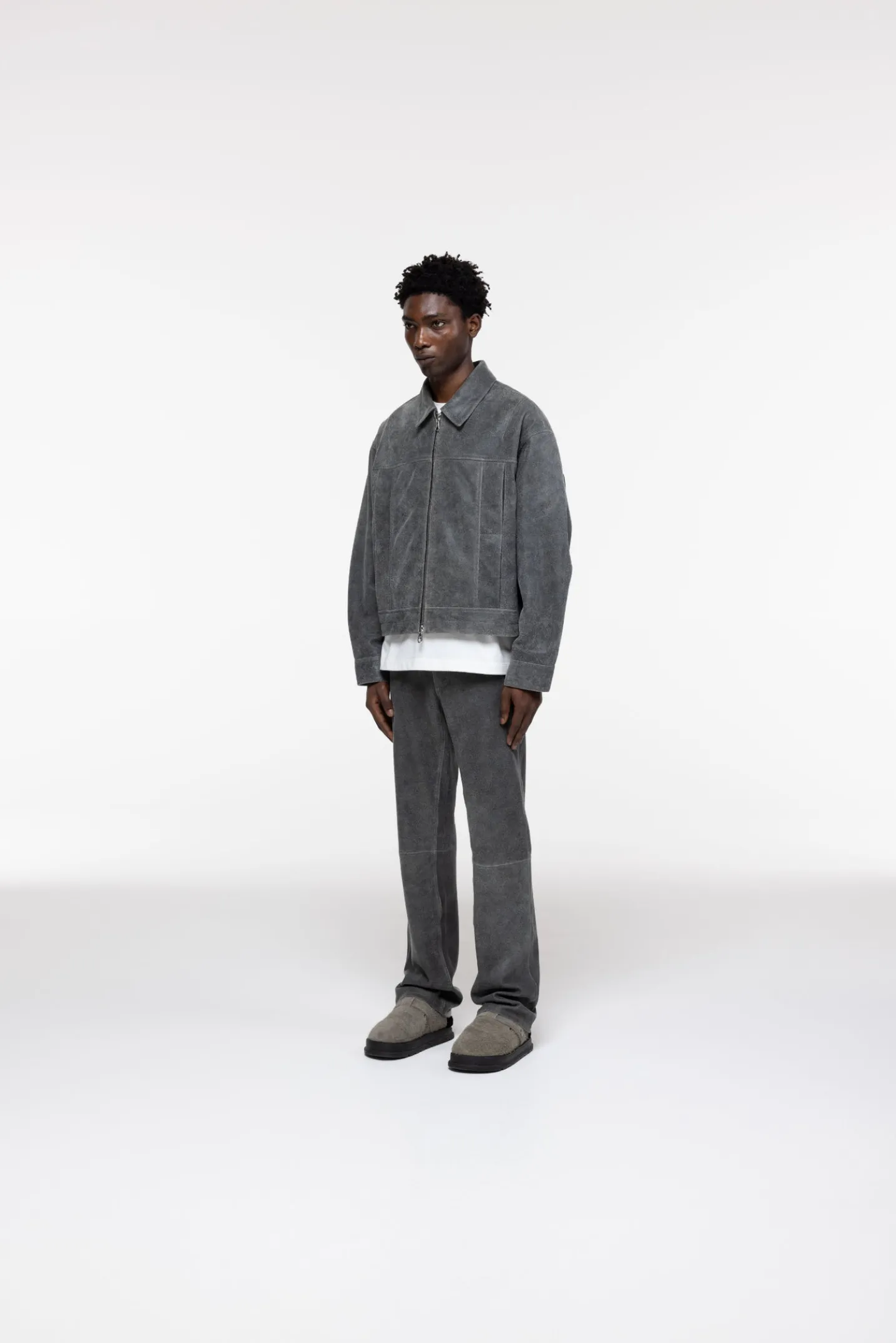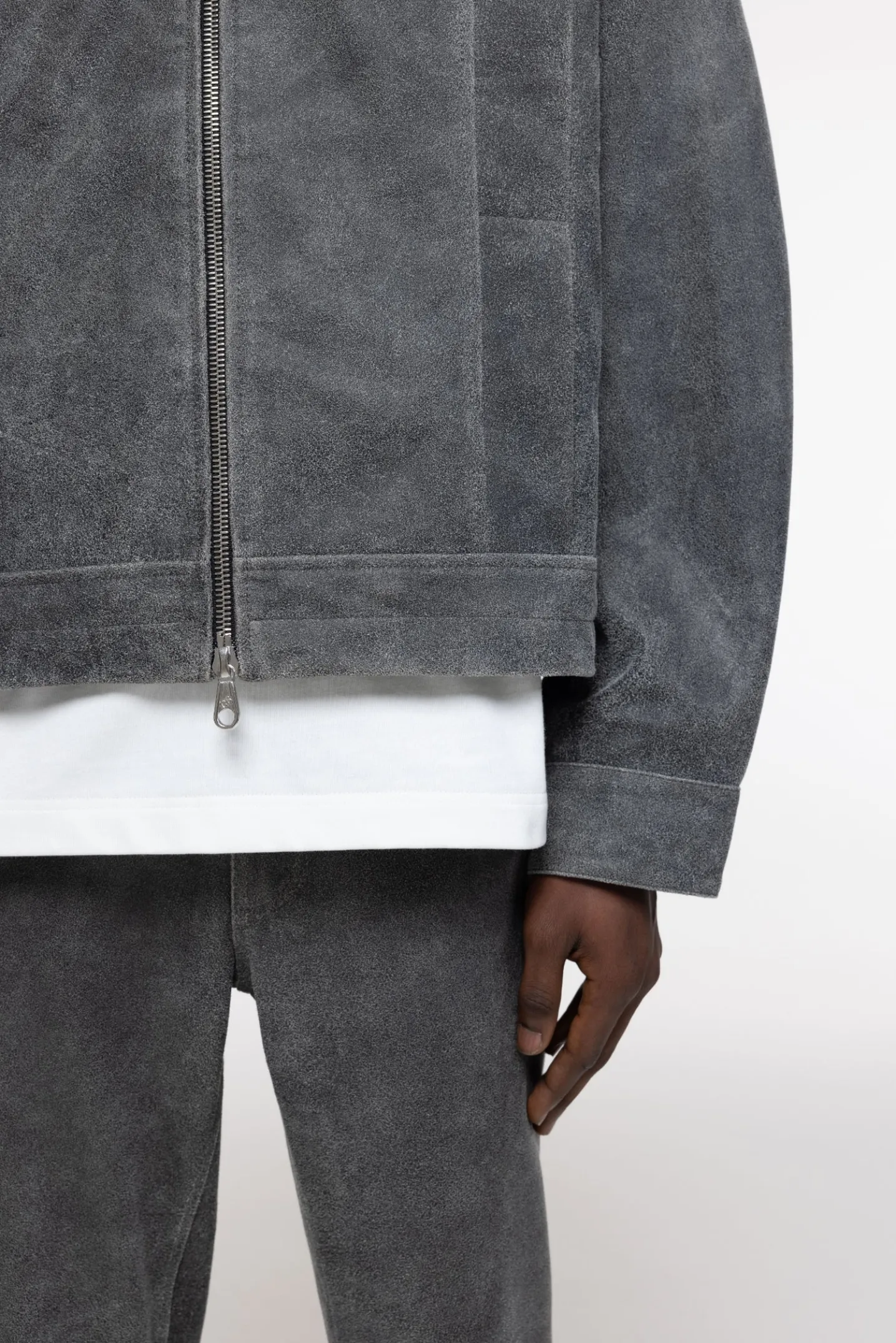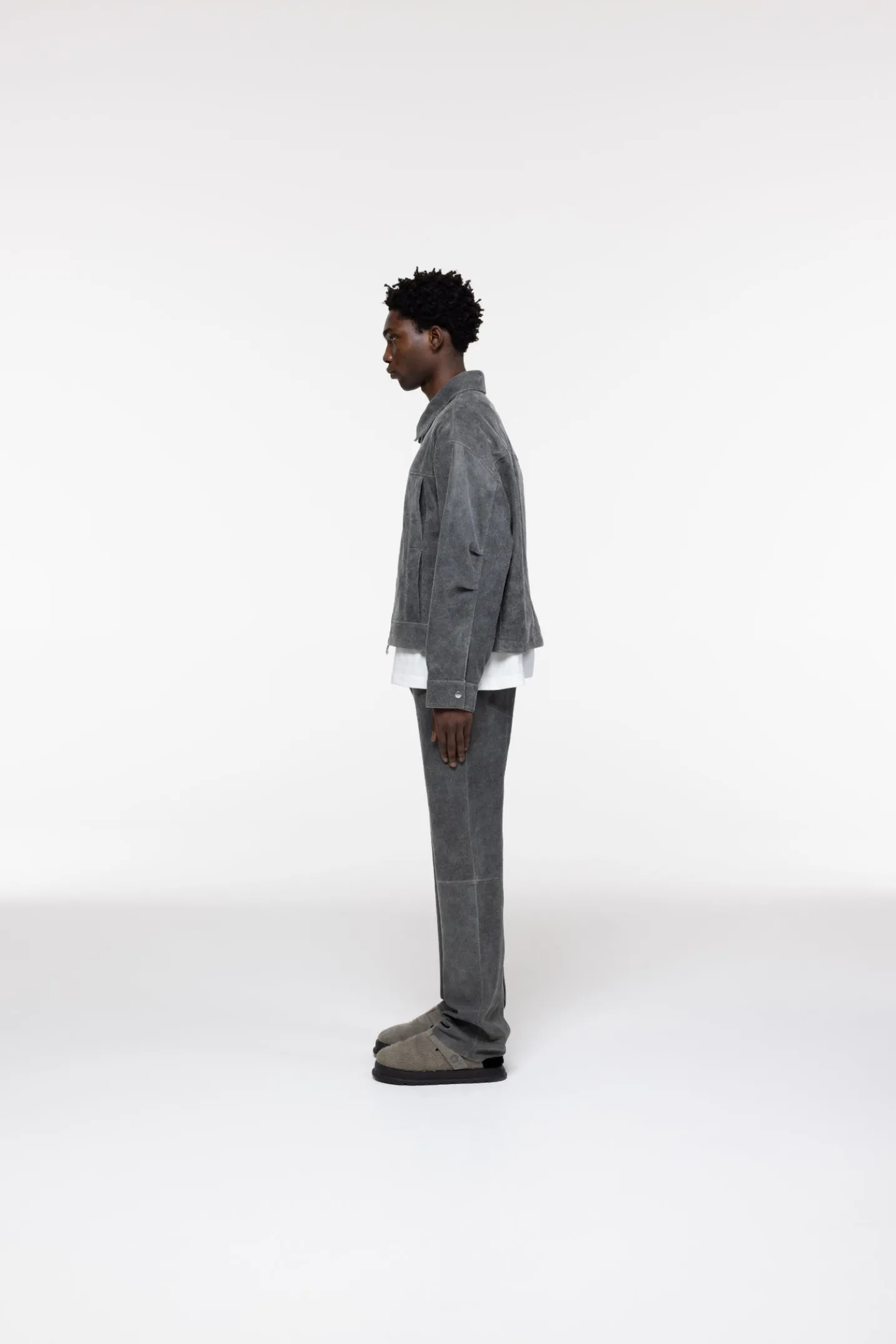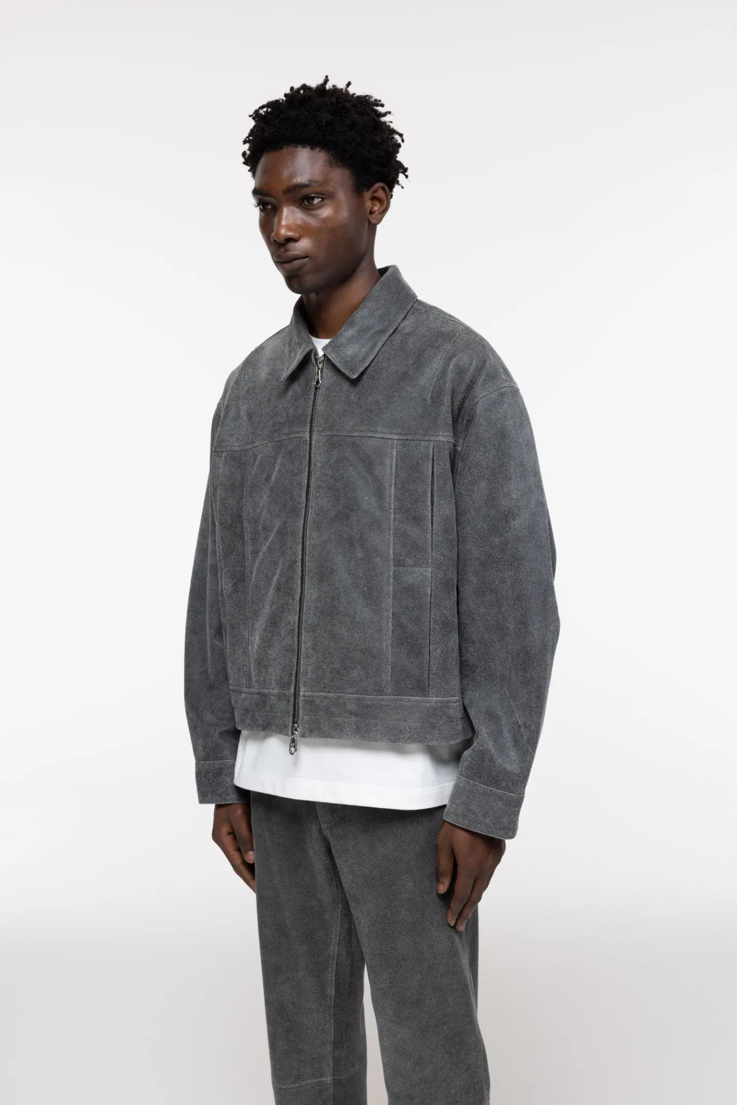 This crackedleather work jacket is luxury throughout, cut in a cropped silhouette with slightly dropped shoulders and a classic overshirt collar. The outer is an Italian soft cracked lamb skinleather with a “Buxton”embossing across the back. Featuring oversized double welt pockets and finished with a CB branded riri zip.