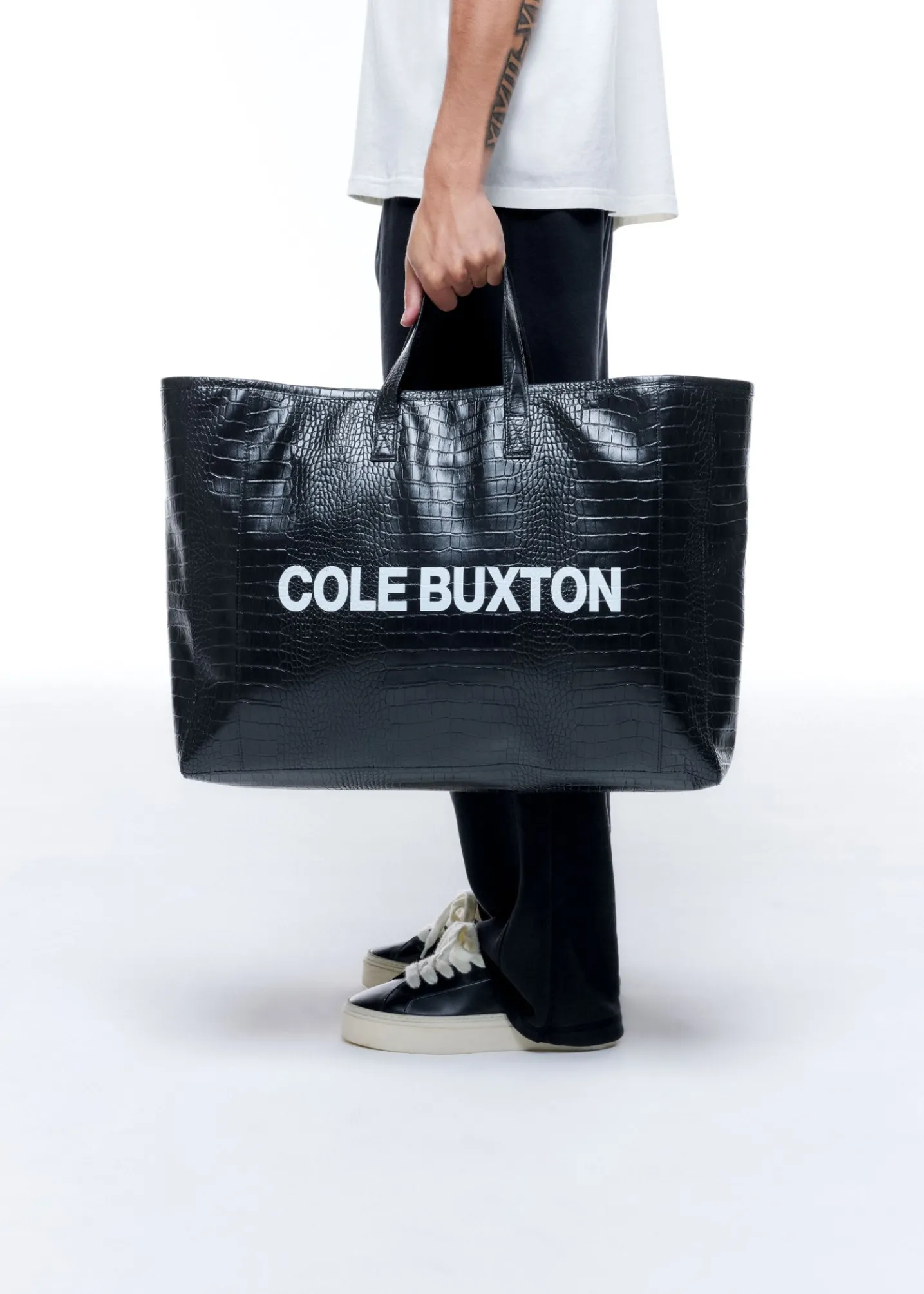 Designed for daily use, this large leather tote bag features an inside laptop sleeve and a small change pocket finish with a riri zip. The bag can be carried over the shoulder or by hand thanks to the removable straps. The heavy cow skin has been embossed with an alligator pattern and printed with our classic Cole Buxton logo.
