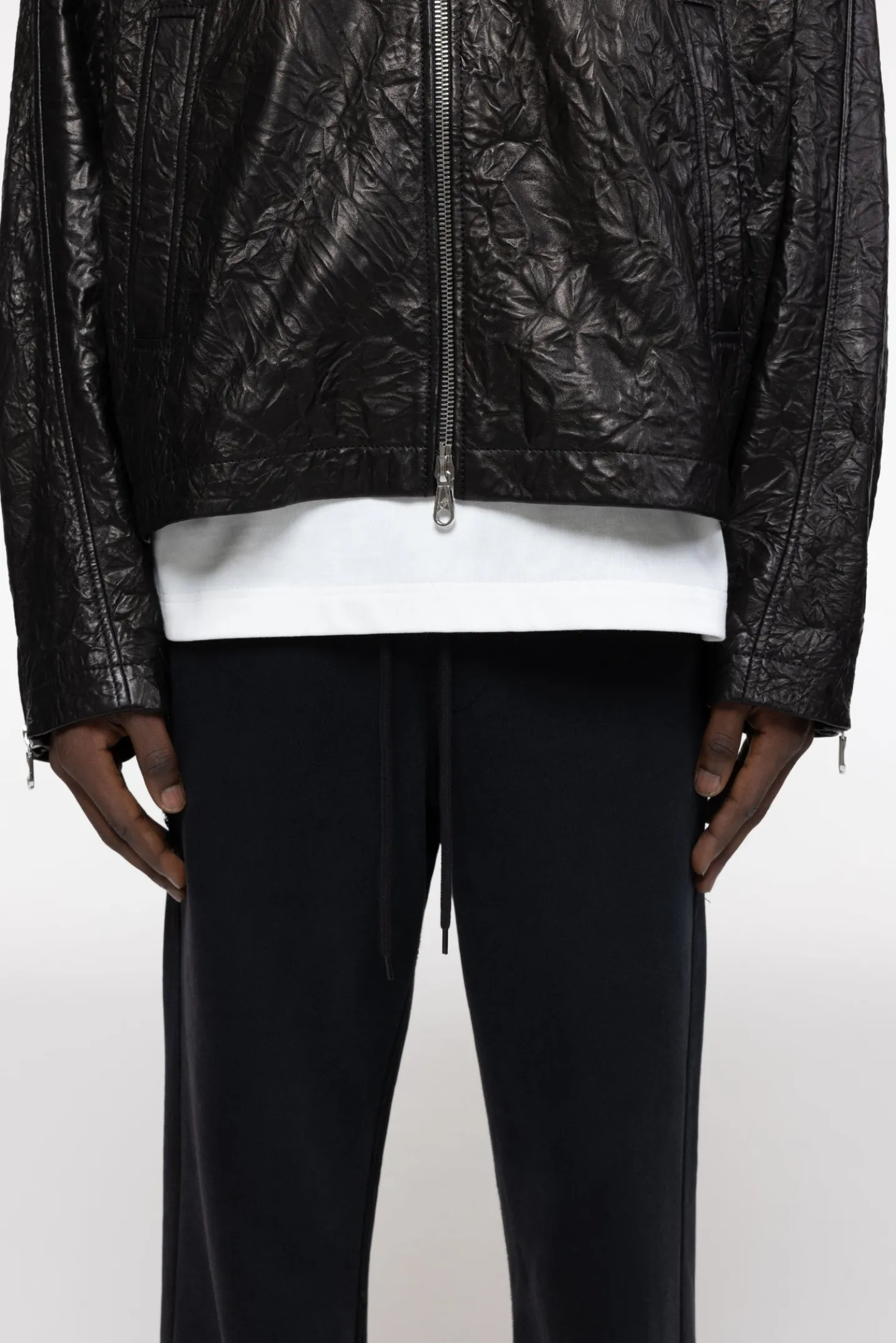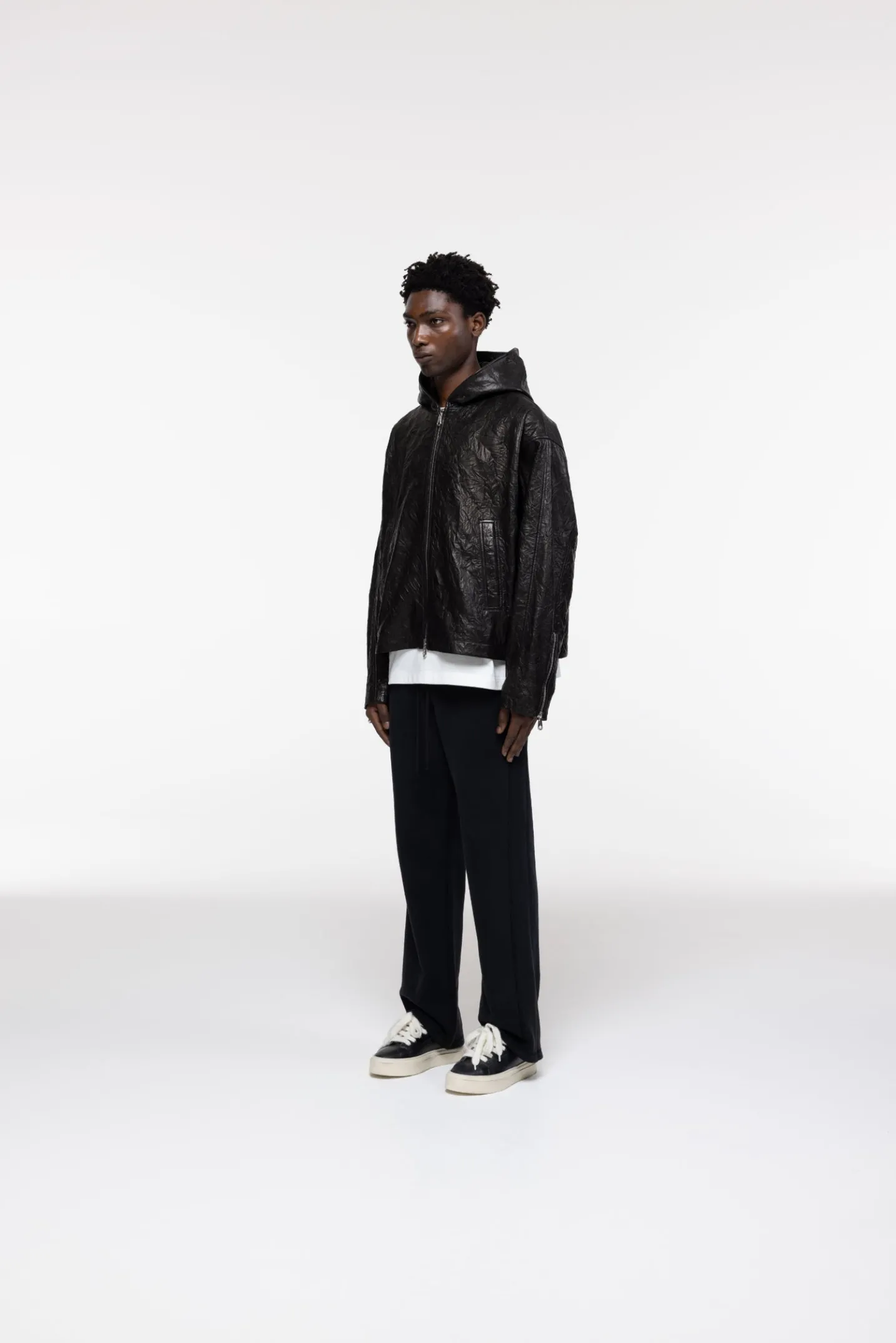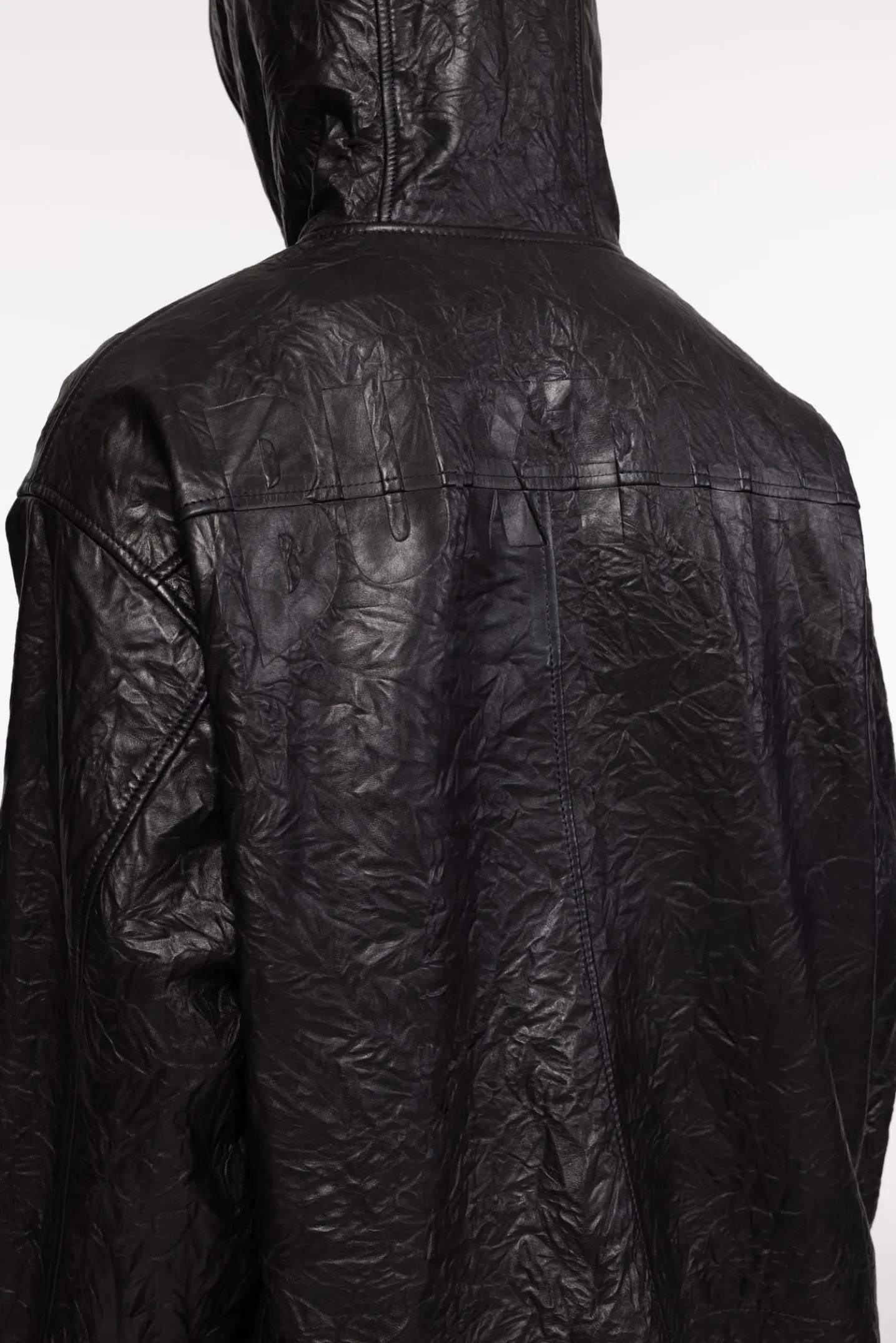 This hooded jacket is luxury throughout, cut from a super soft crinkled Italian leather in an oversized cropped silhouette. Featuring two jet pockets, zipped cuffs and finished with a two-way CB riri zip.