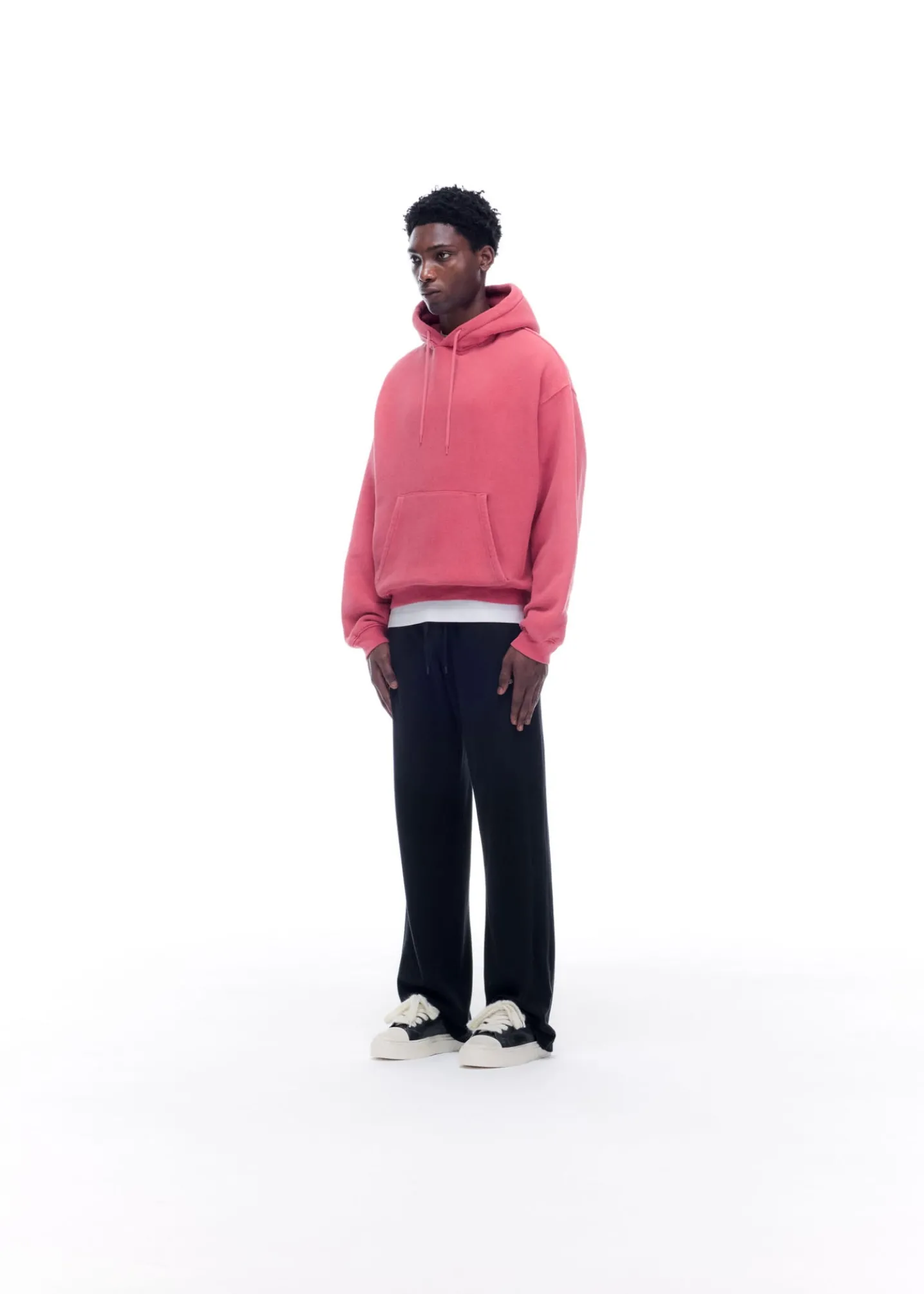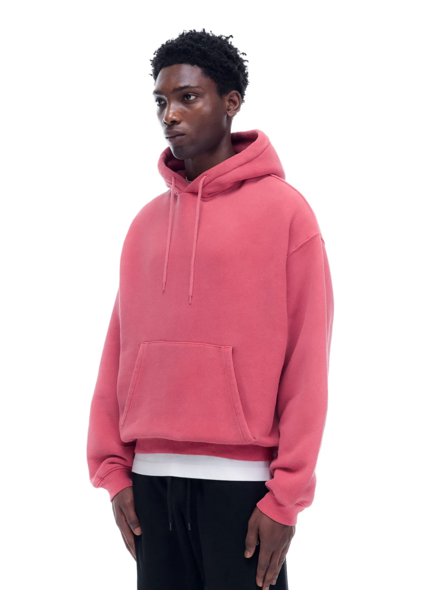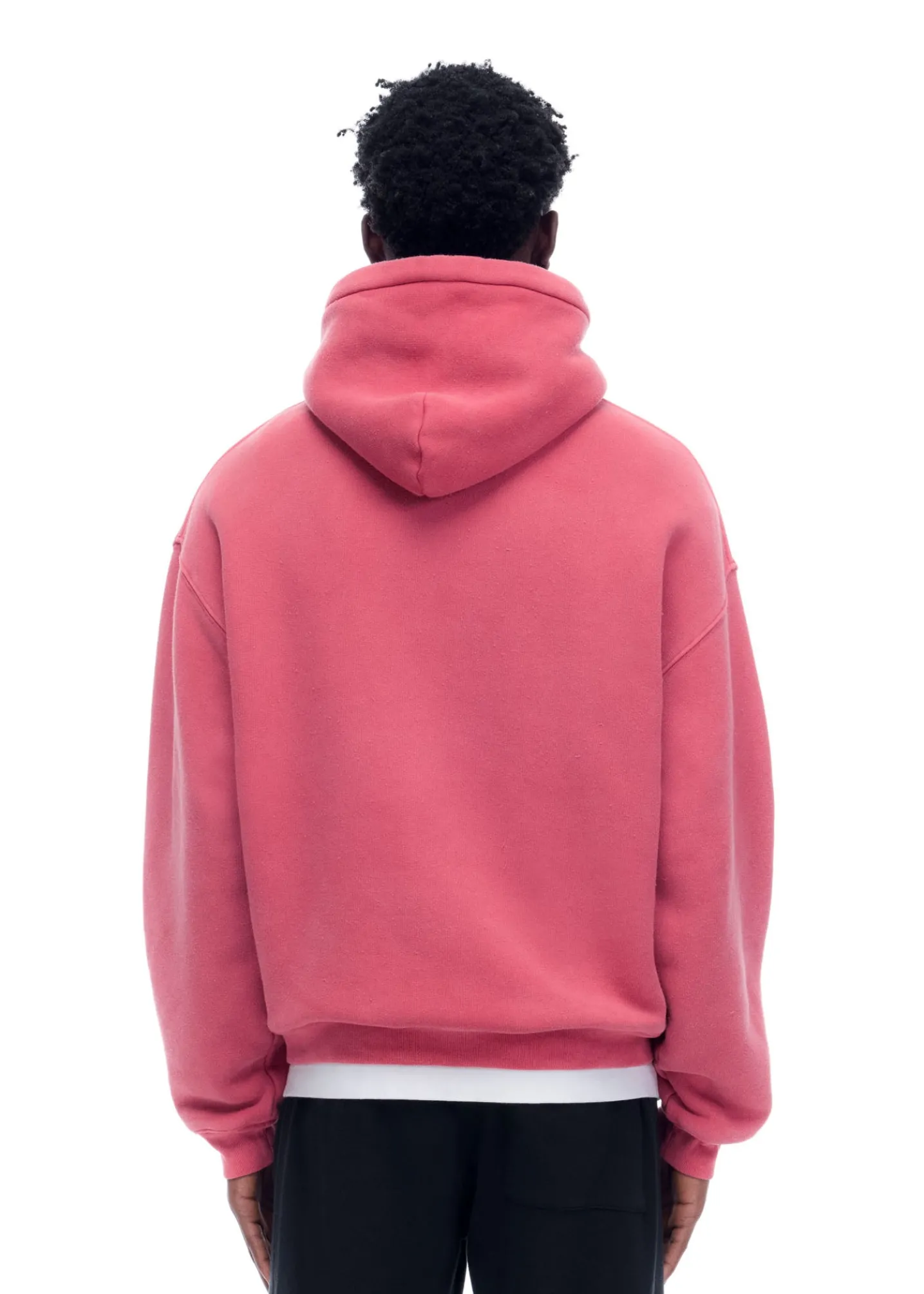 Introducing the Danbury Hoodie, a brand new development for resort 25. We’ve custom knit a 100% cotton compact fleece and heavily brushed the face to create an authentic vintage hand feel. The fabric is 430gsm in weight yet drapey and soft. The silhouette is old school with slightly dropped shoulders, a small single fold hood and loose ribbed body for layering.