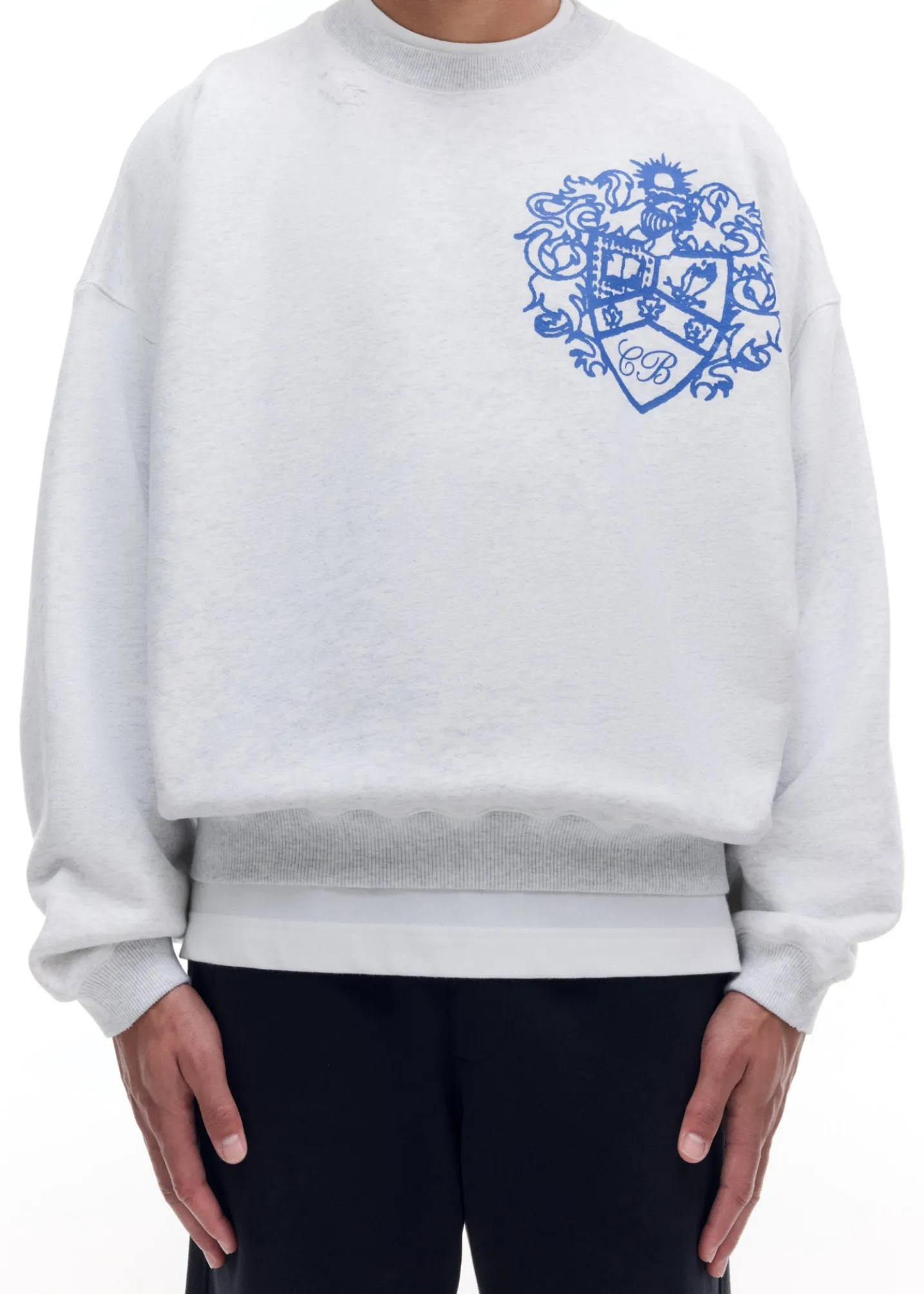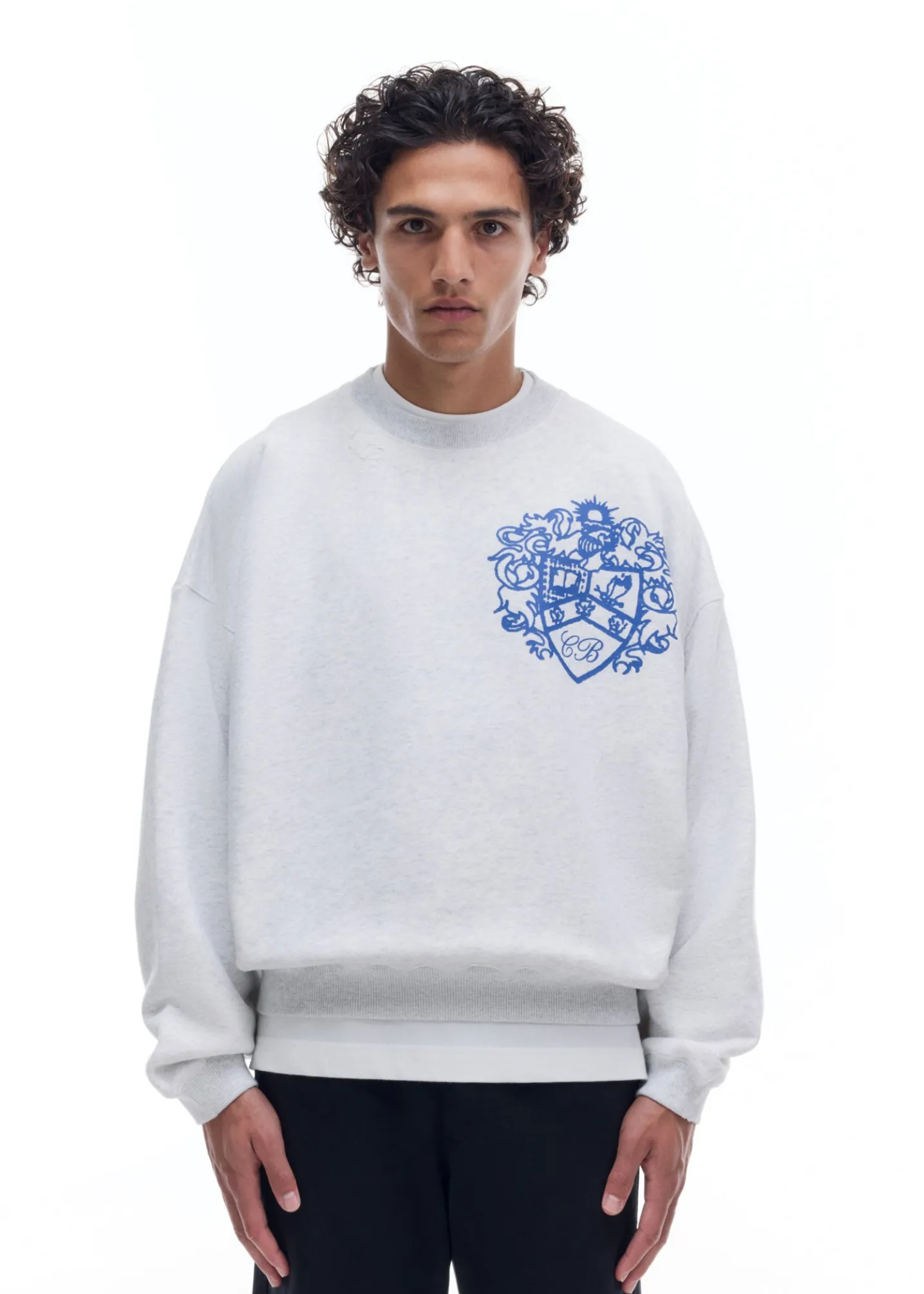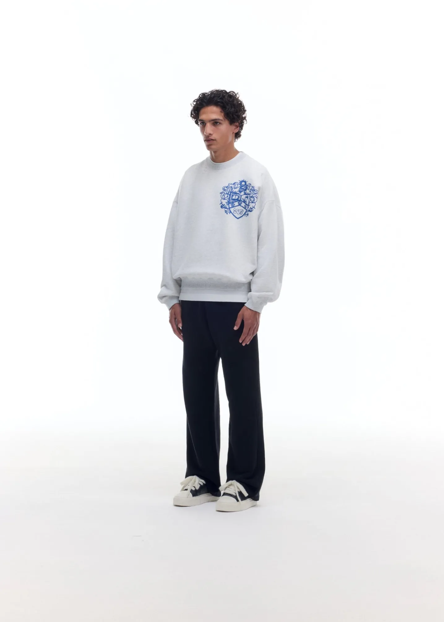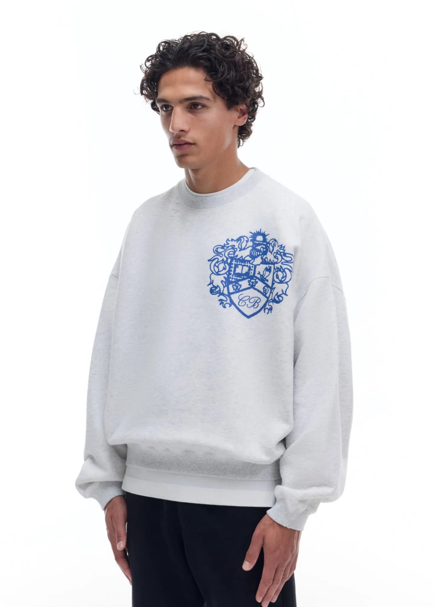 The collegiate crest sweater is cut in our classic pullover sweatshirt silhouette with a soft vintage wash, dropped shoulders and signature outer arm seam. Featuring our brand new crest graphic printed oversized on the left chest.