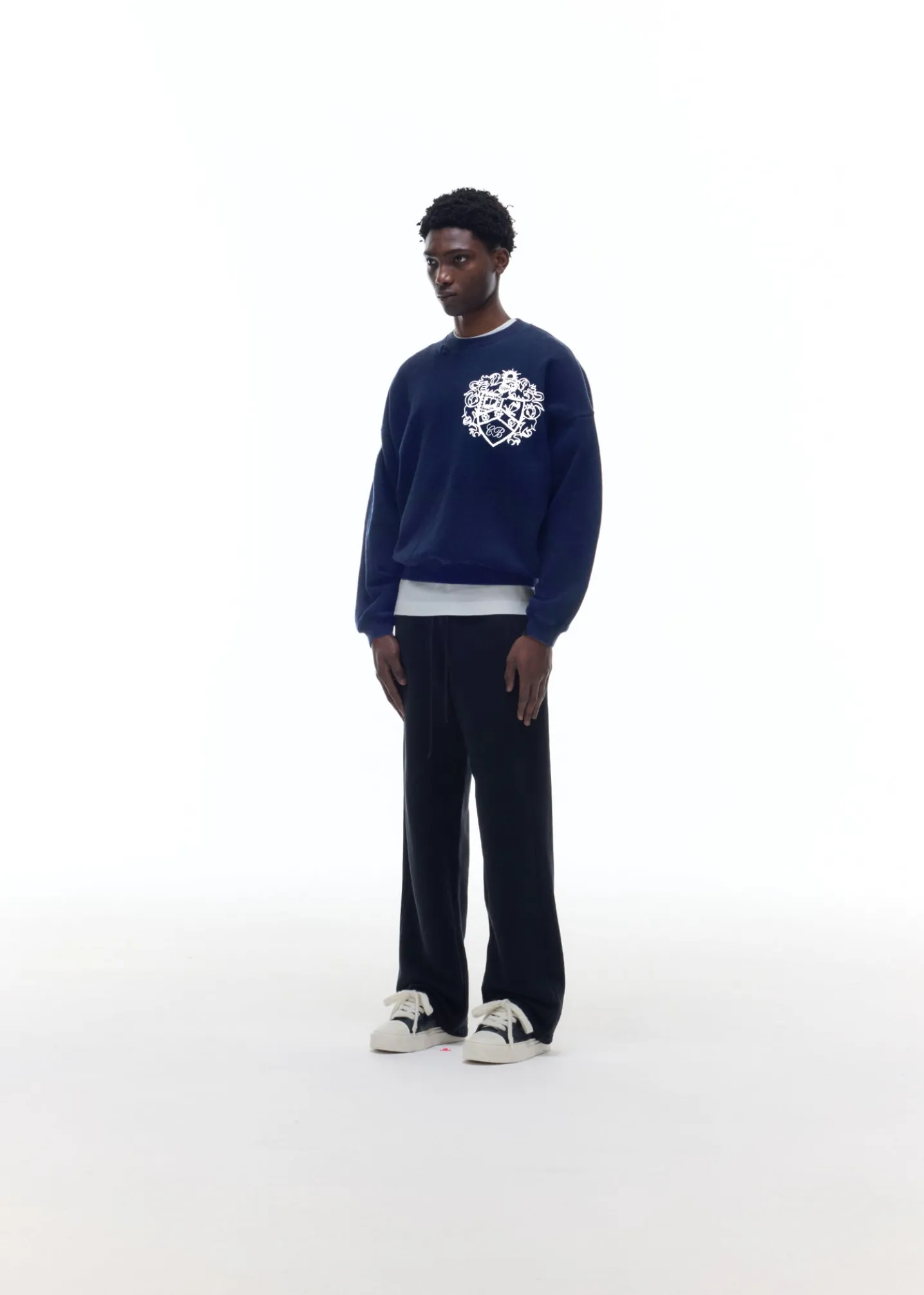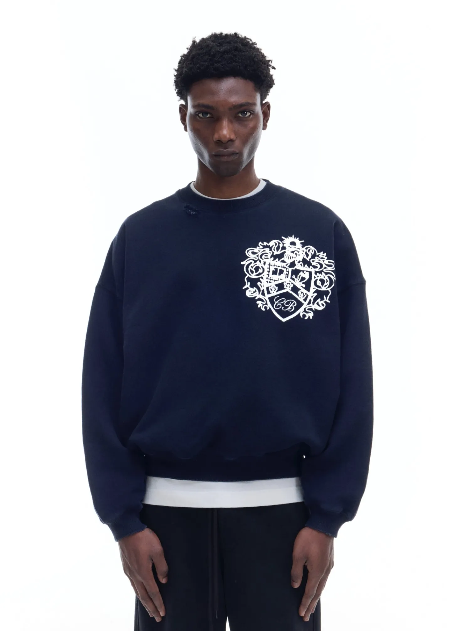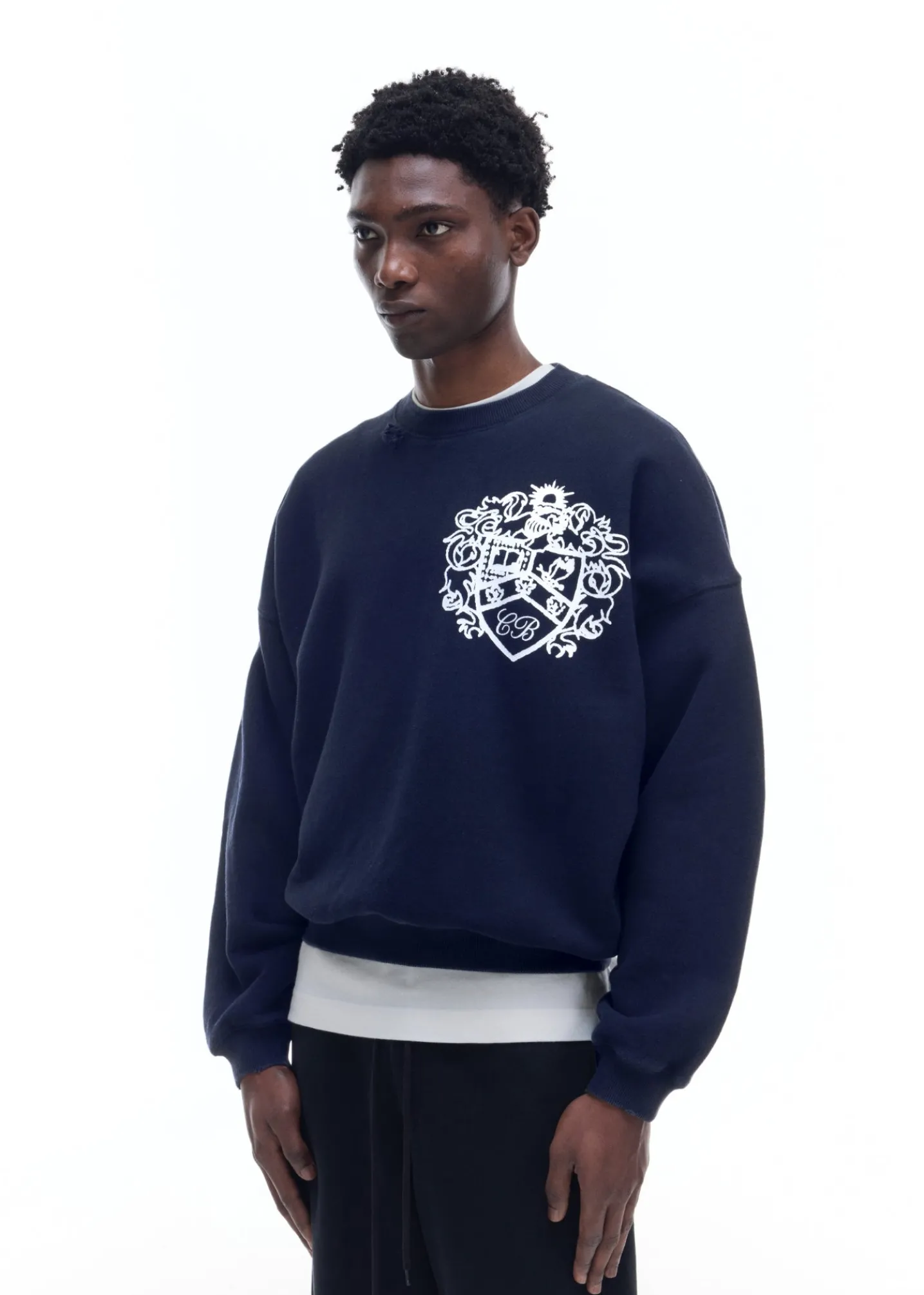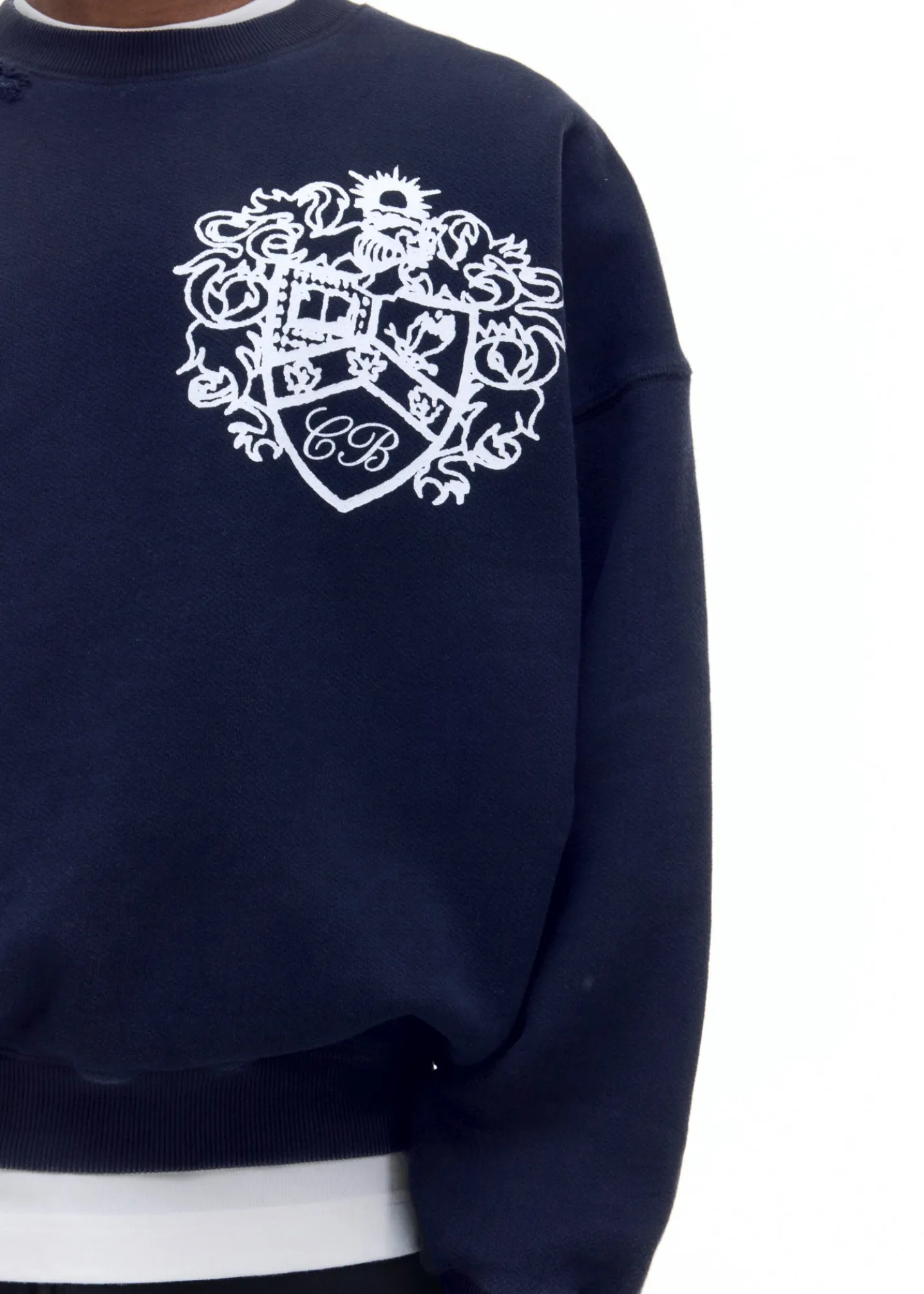 The collegiate crest sweater is cut in our classic pullover sweatshirt silhouette with a soft vintage wash, dropped shoulders and signature outer arm seam. Featuring our brand new crest graphic printed oversized on the left chest.