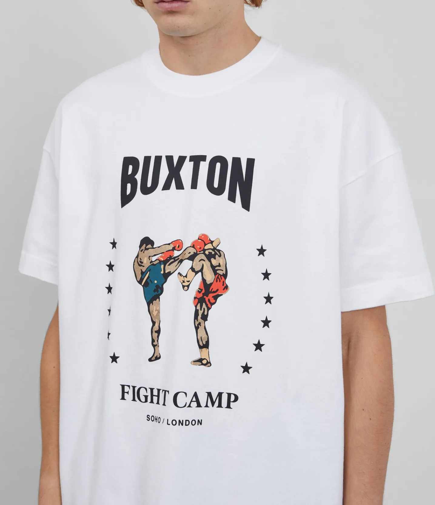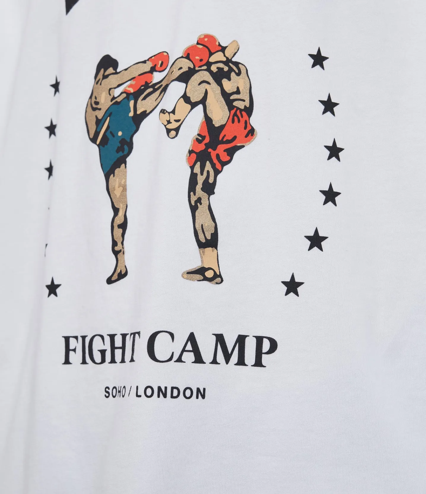 The Fight Camp T-Shirt, inspired by classic Muay Thai graphics, this old school design is finished with thick plastisol ink, mixing bold and metallic Pantones.Built from a luxury-weight single jersey.