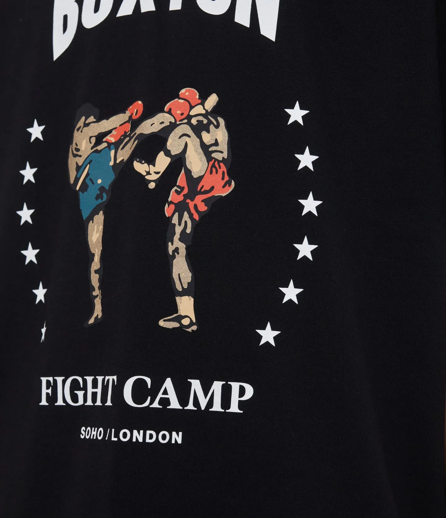 The Fight Camp Tee, inspired by classic Muay Thai graphics, this old school design is finished with thick plastisol ink, mixing bold and metallic Pantones. Built from a luxury-weight GSM single jersey.