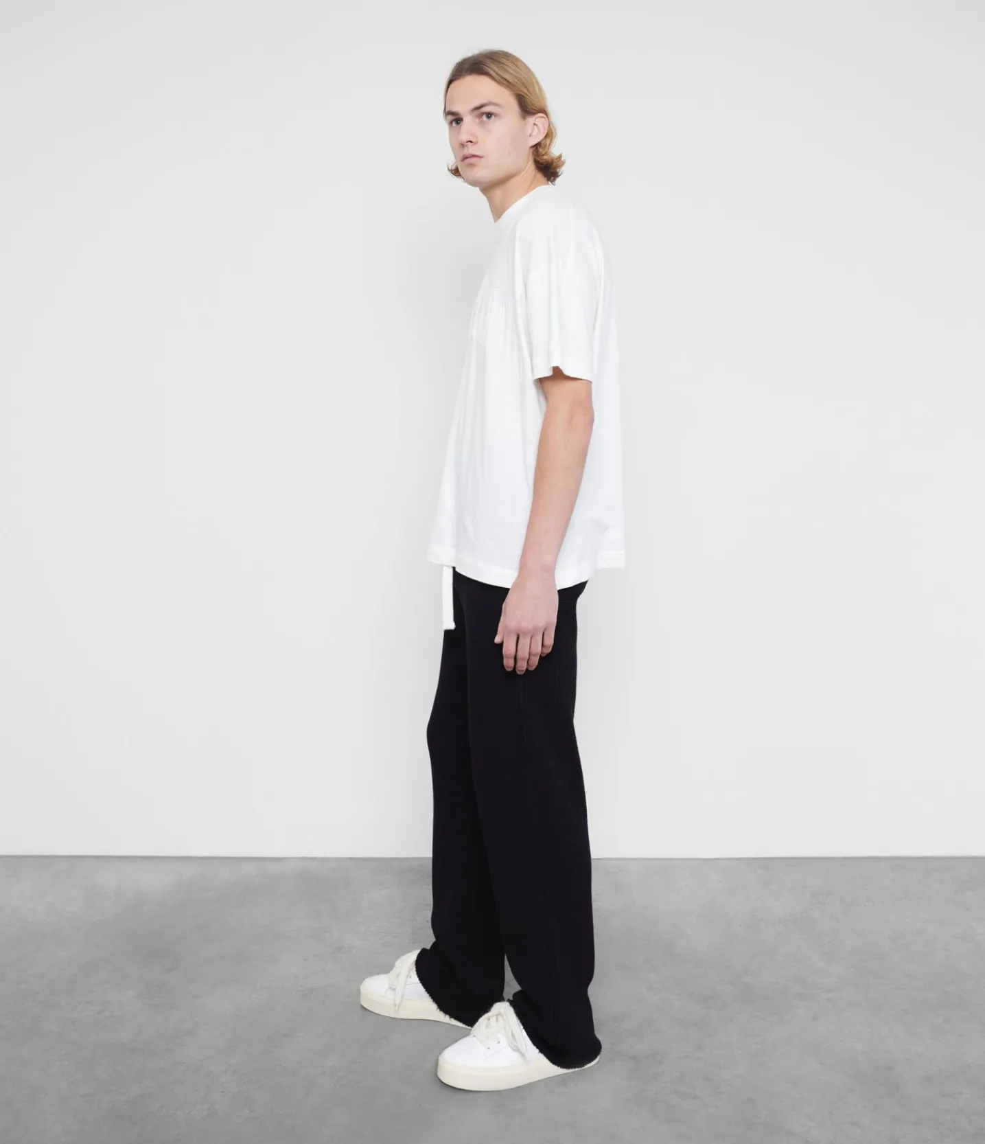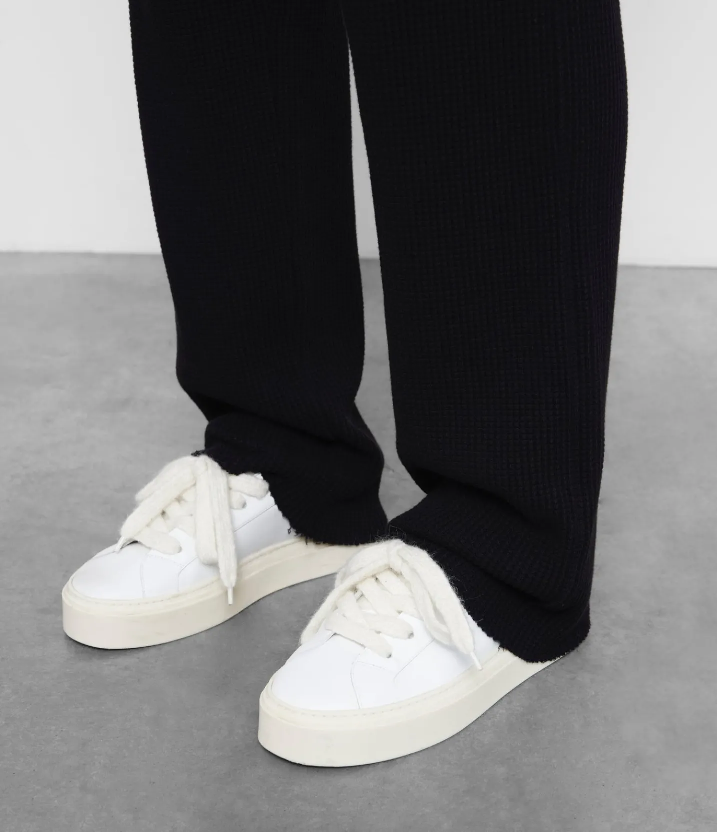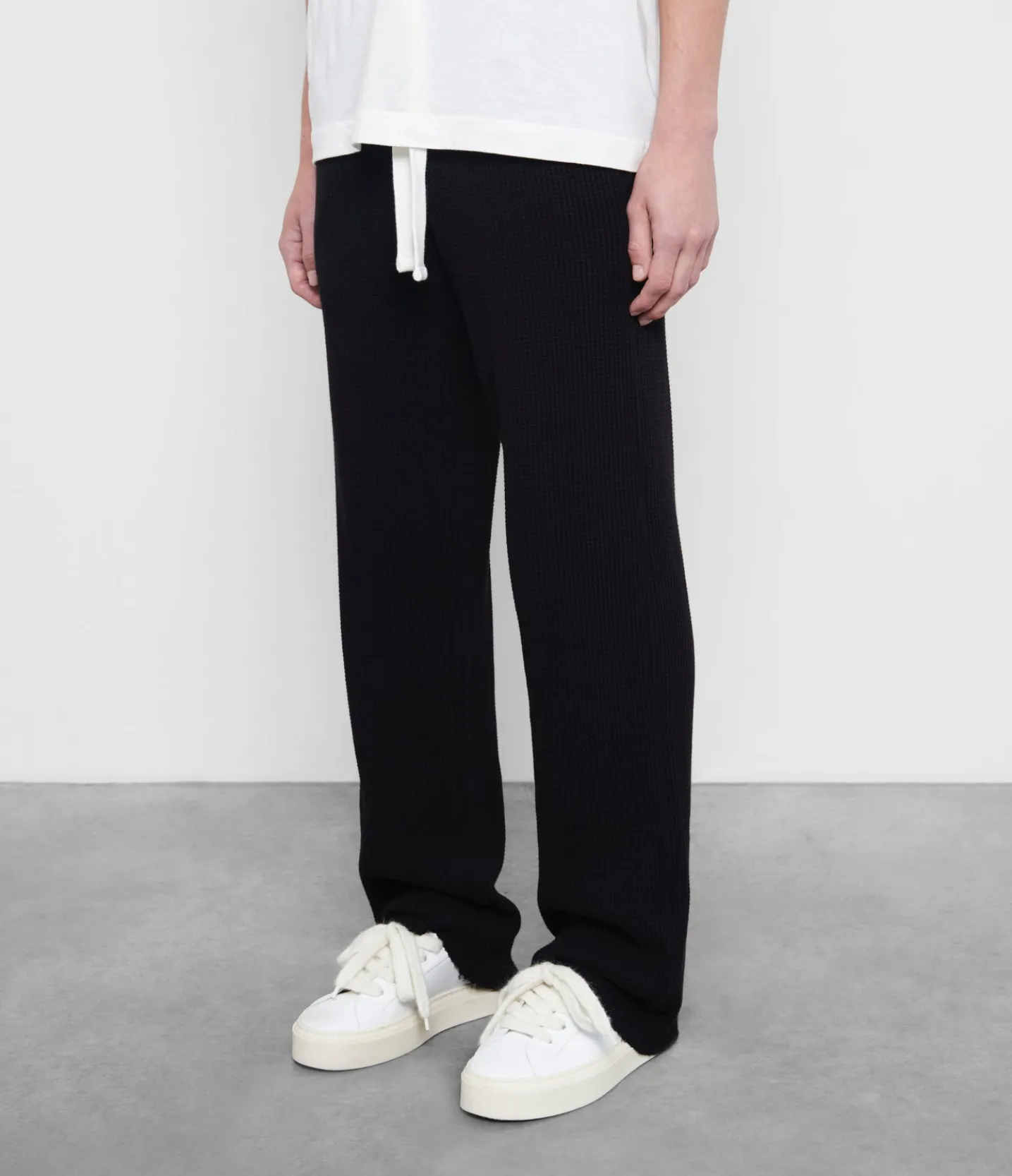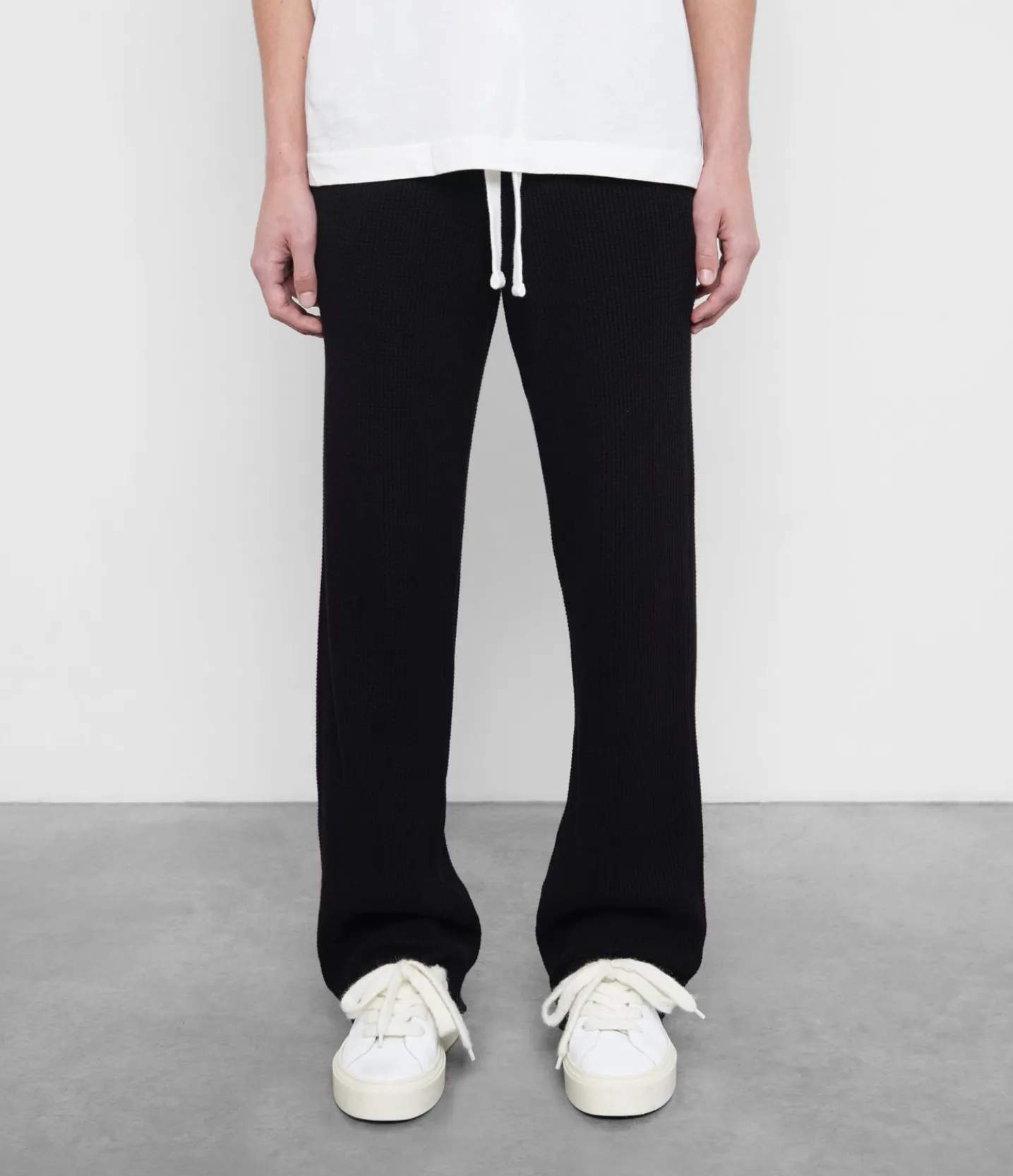 New for ss24 are these heavyweight waffle sweatpants. Cut with a straight leg from a luxury weight waffle knit jersey. These pants have a raw hem with a slightly flared hem to create the perfect stack over any shoe.