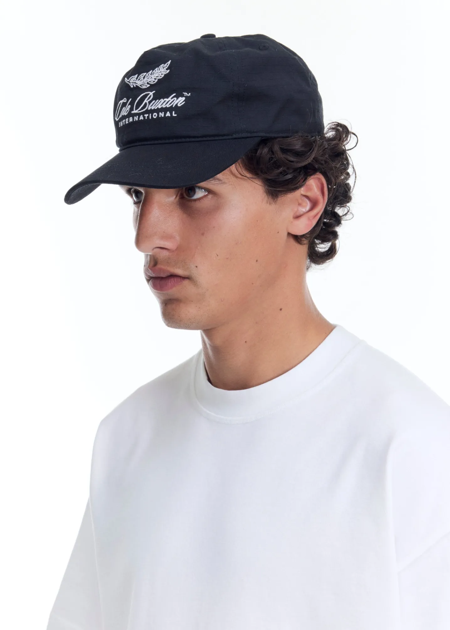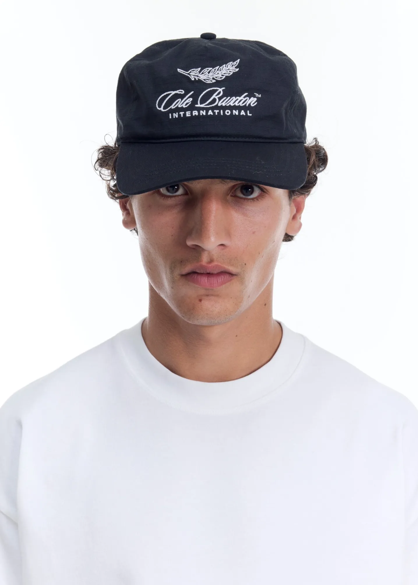 A soft fronted nylon baseball cap in our bespoke silhouette featuring our “International” logo embroidery.