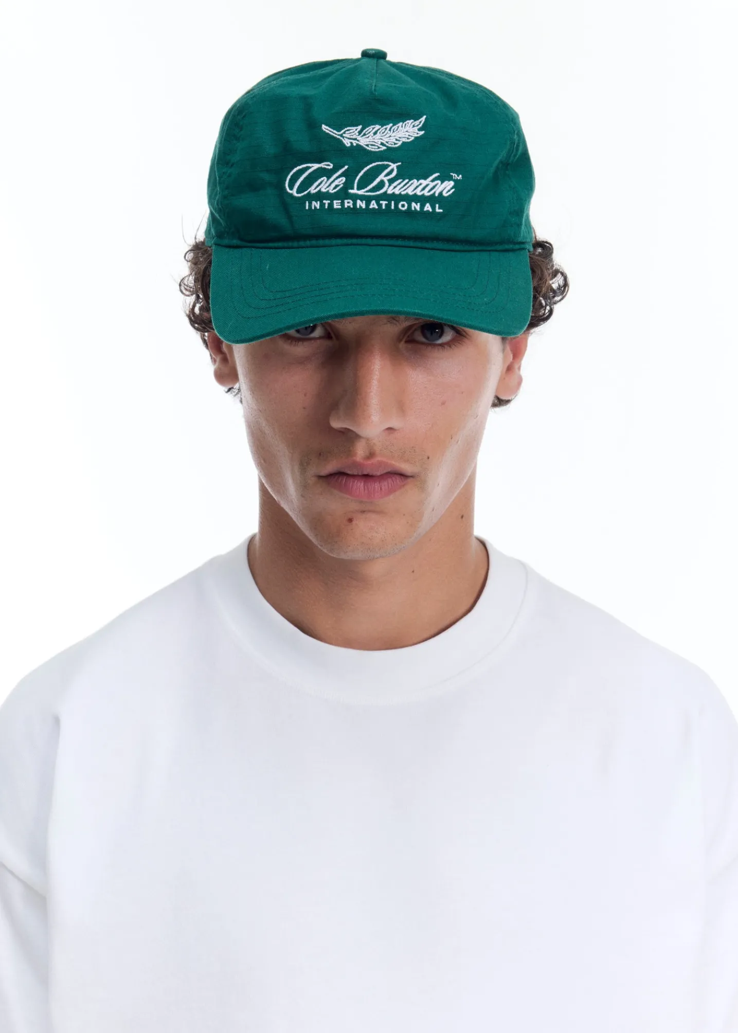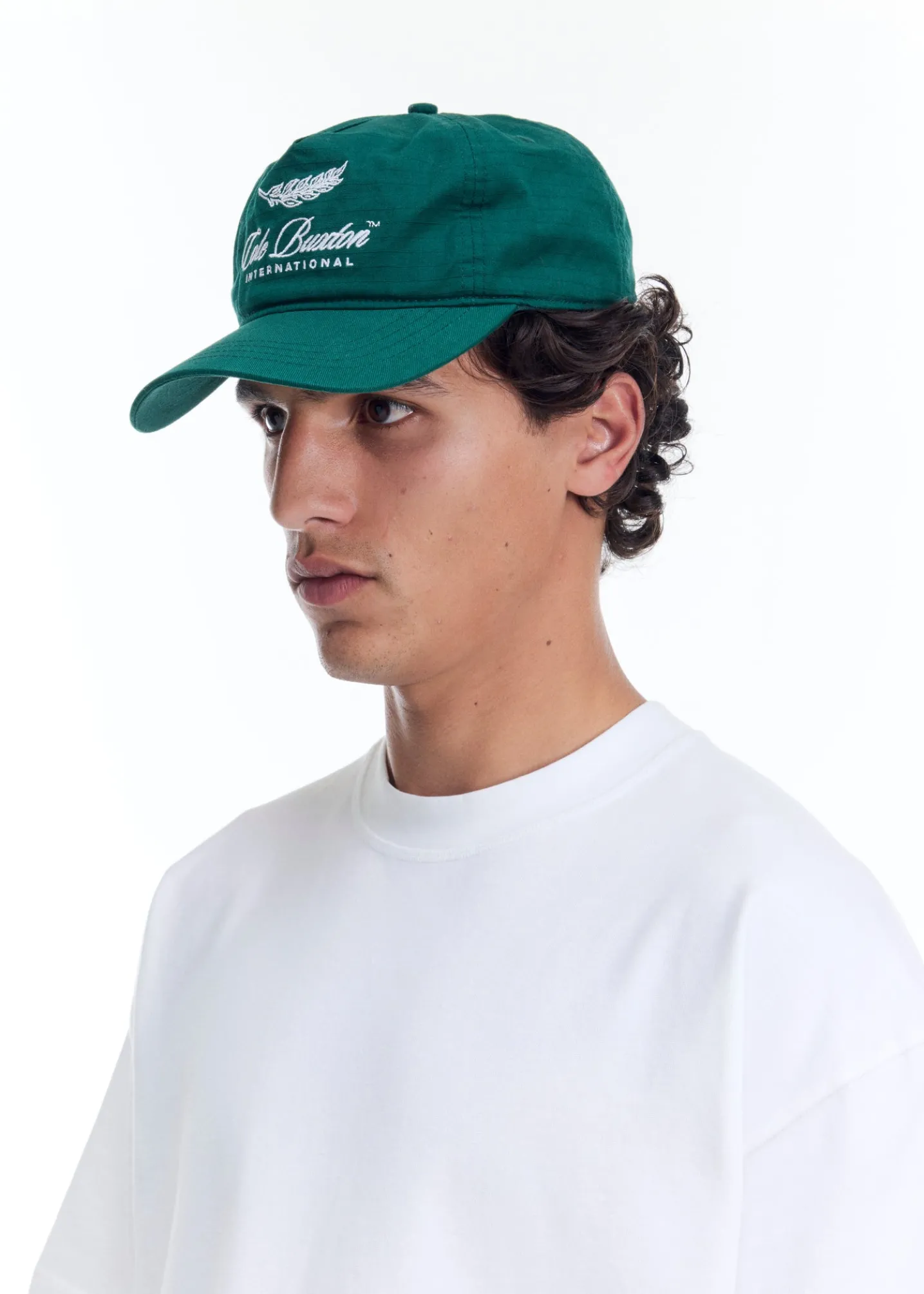 A soft fronted nylon baseball cap in our bespoke silhouette featuring our “International” logo embroidery.