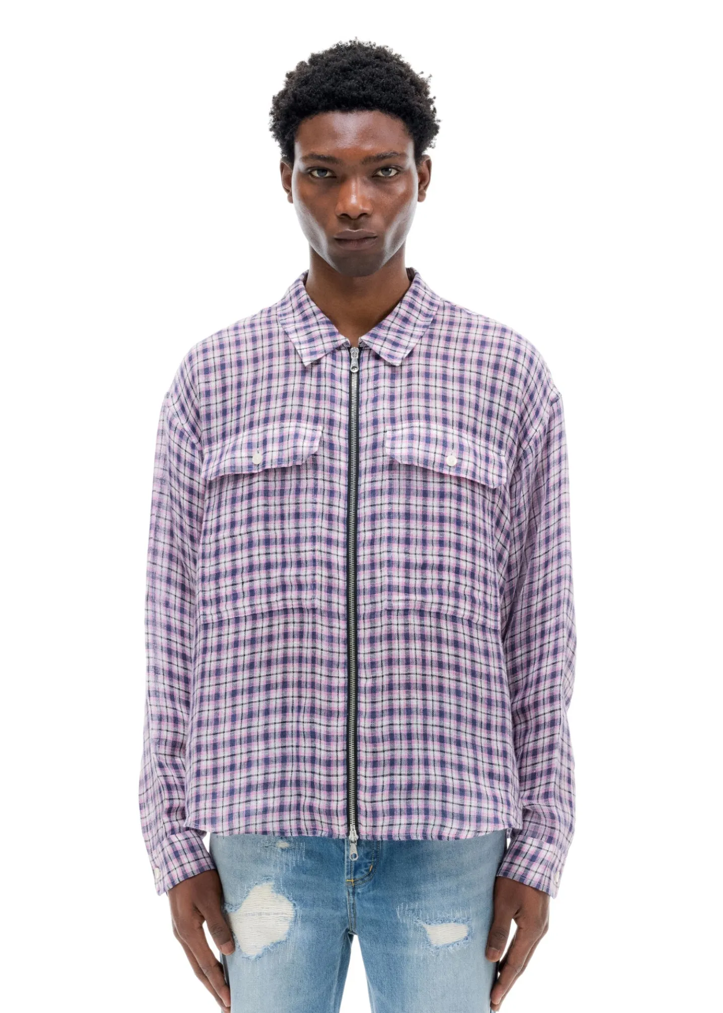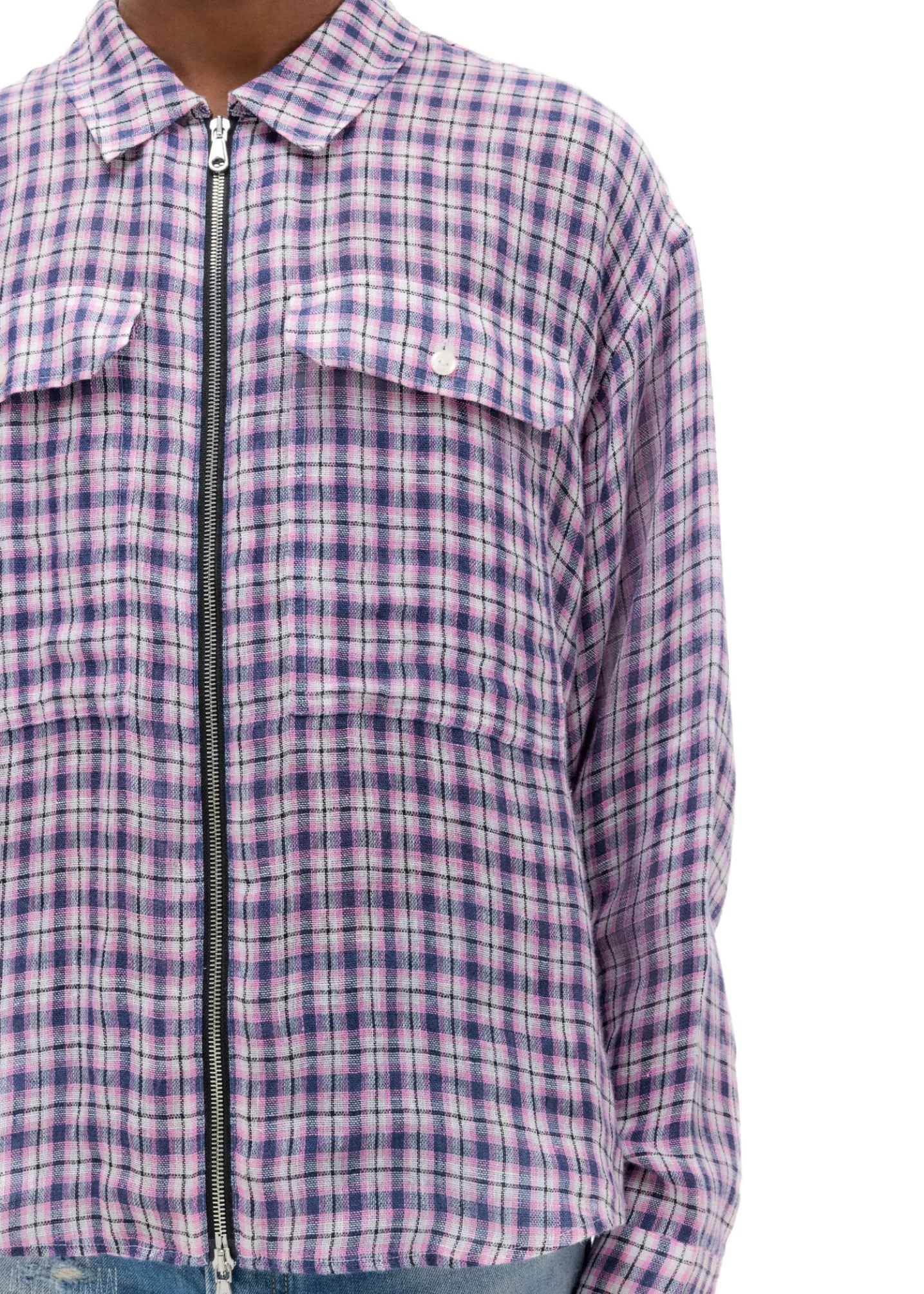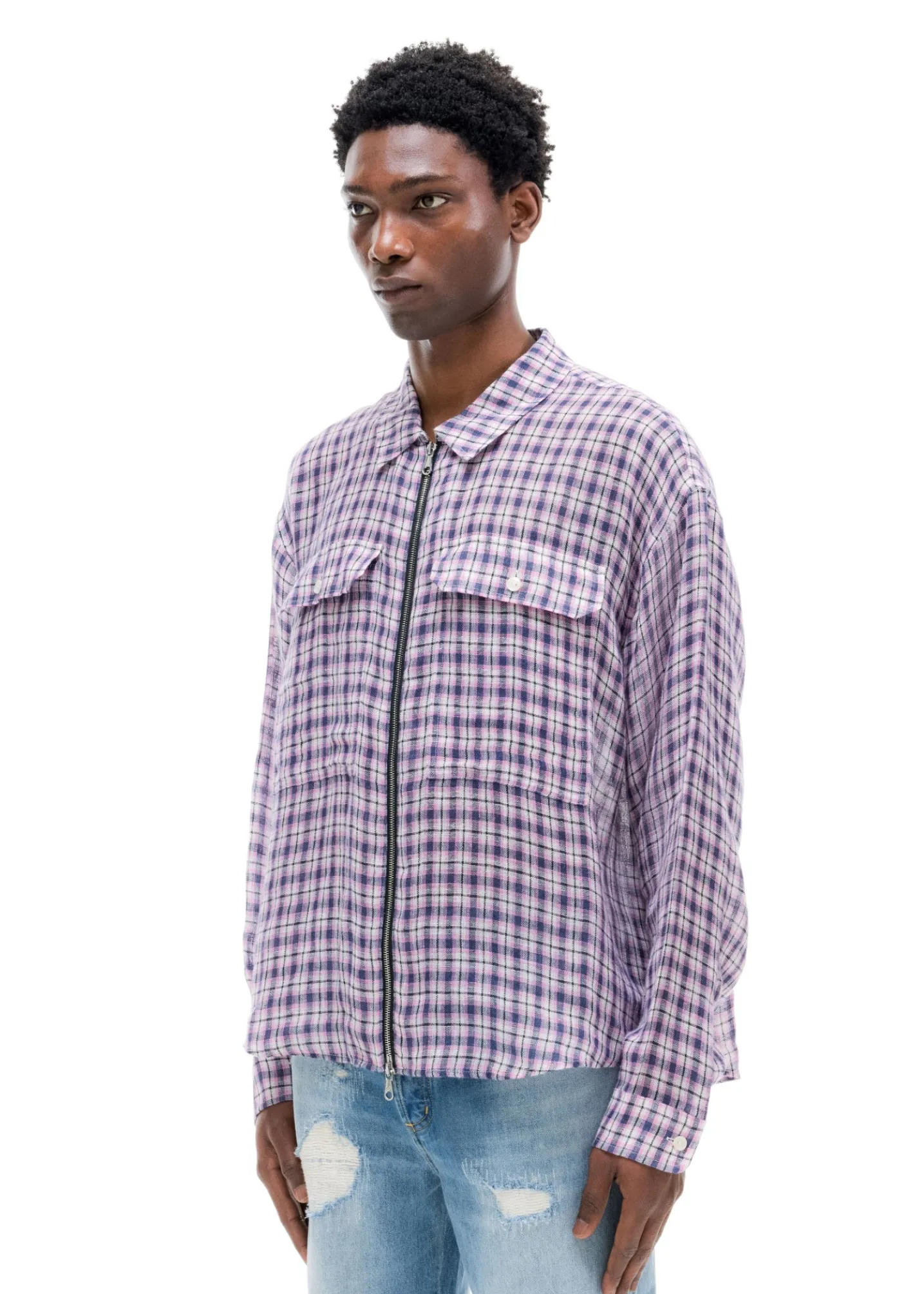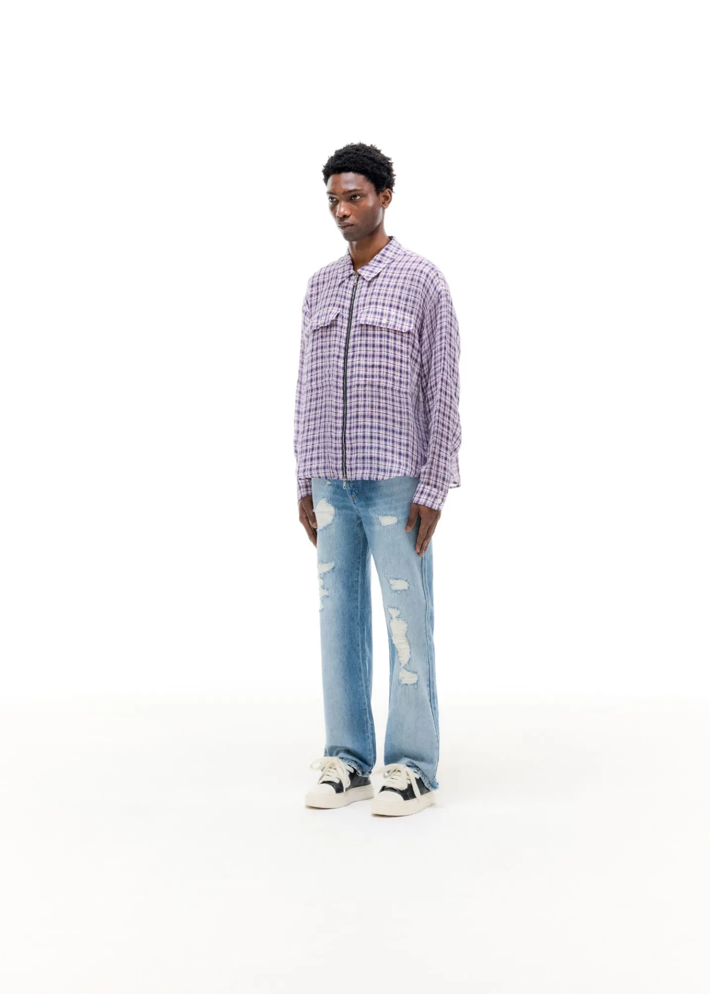 Brand new for SS25 is our zipped linen shirt. With design cues taken from classic Ivy League campus attire we’ve cut this shirt from an Irish linen check in a cropped and wide silhouette with dropped shoulders, a scalloped hemline and finished with 2 button down signature chest pockets and a CB branded 2way zip.