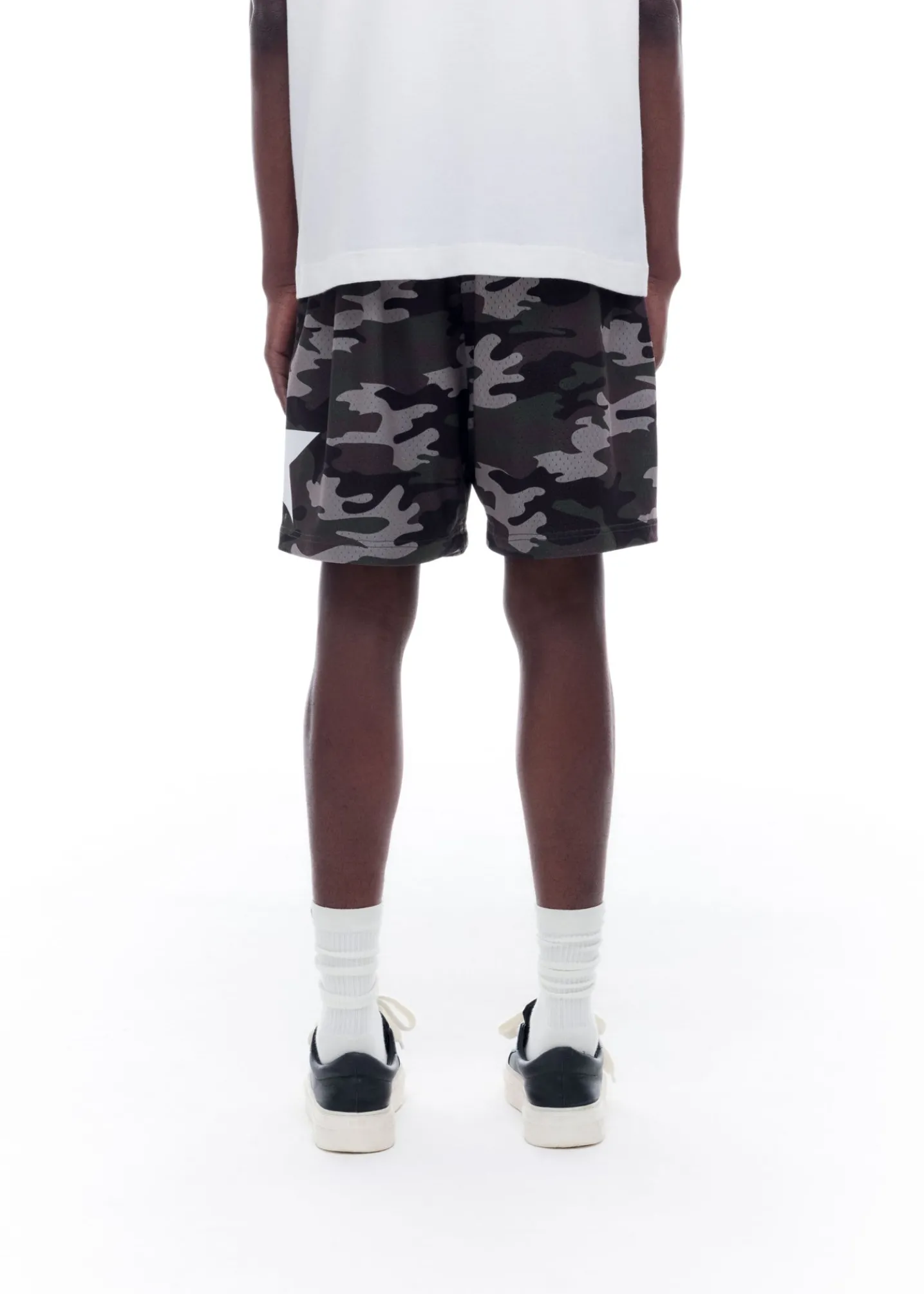 These mesh camo sports shorts are made from a classic polyester mesh fabric and lined with a soft satin for next to skin comfort. We’ve cut these in an athletic fit and branded them with our signature CB Star print.