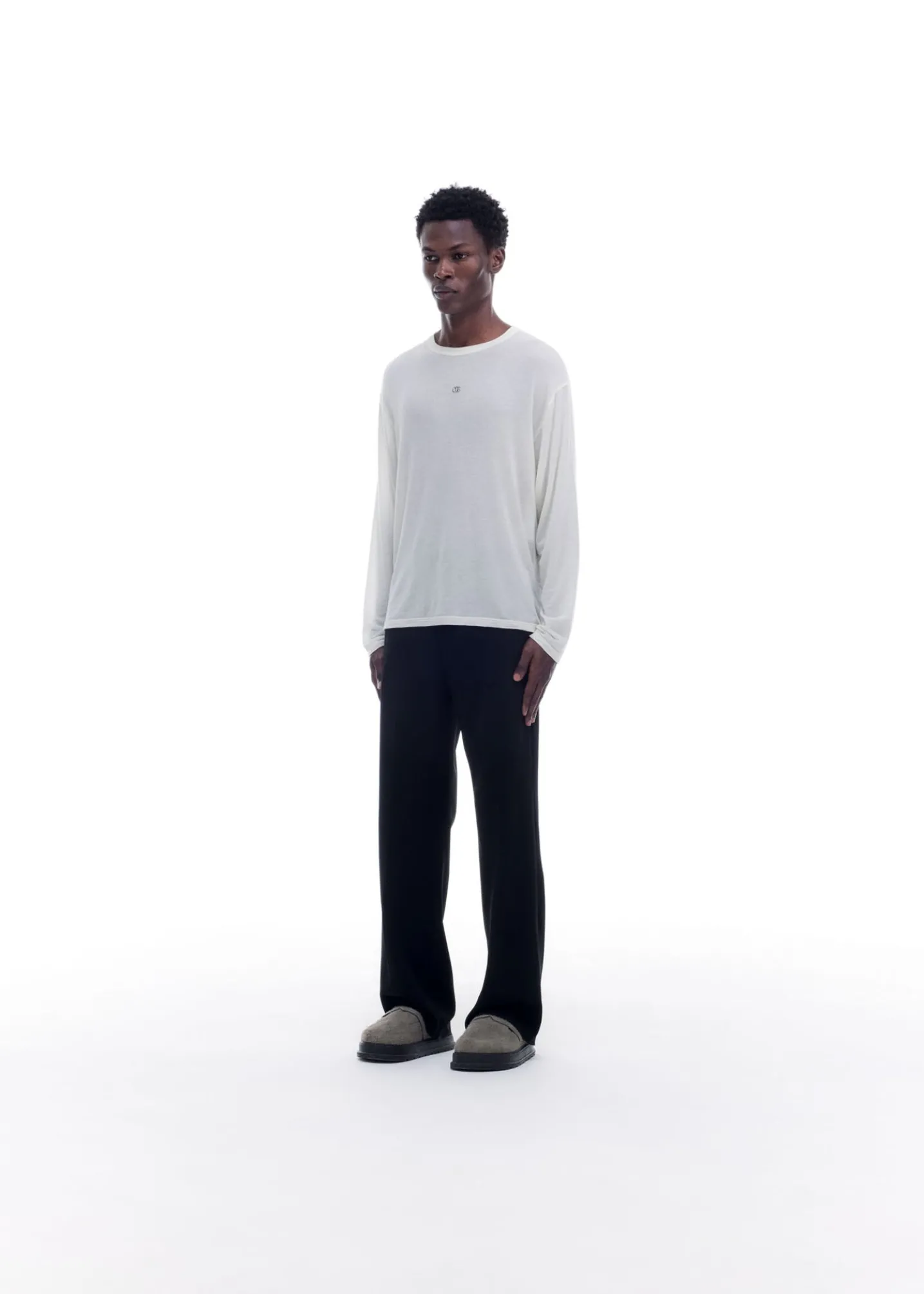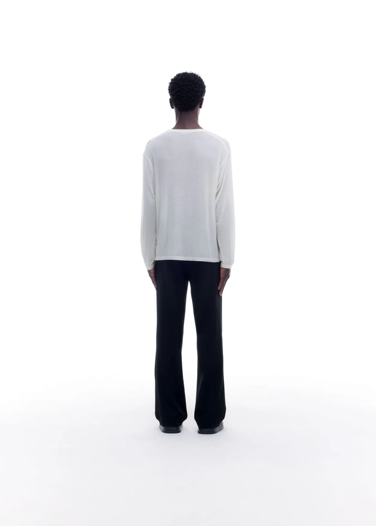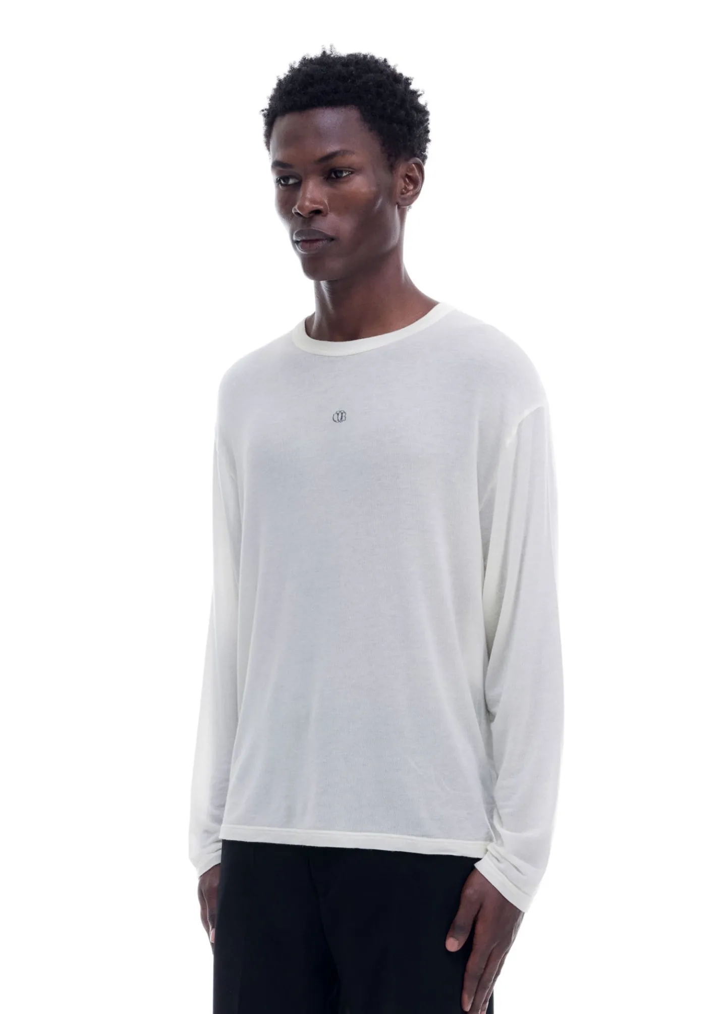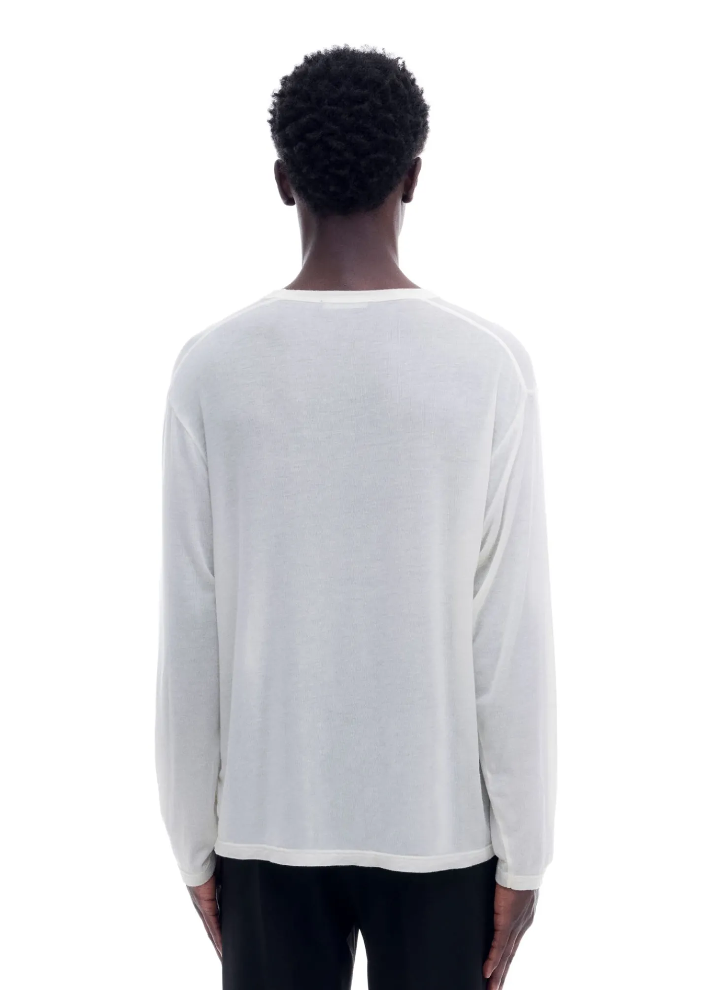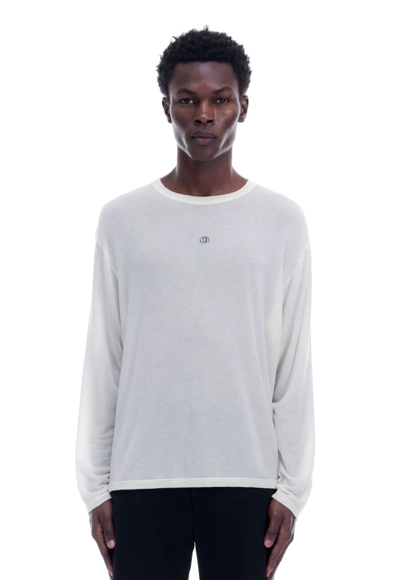 This sheer long sleeve is cut from a luxury blend of Tencel, cashmere and silk in a cropped slouchy long sleeved silhouette. Featuring a small screened logo of our resort crest centre chest.