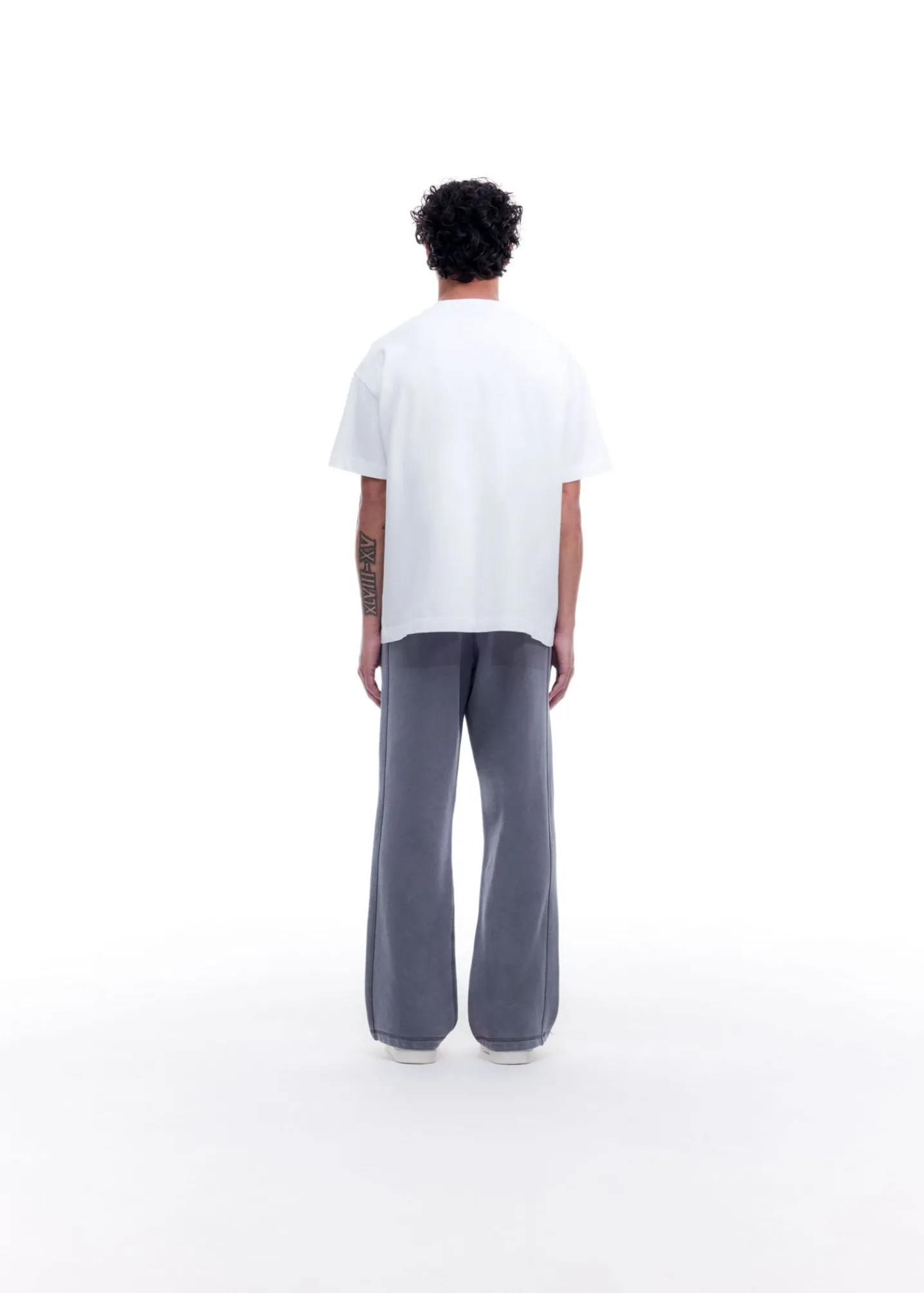 The pocket fade sweatpants, a brand new pant for SS24. We’ve developed a brand new 500gsm half brushed American fleece for this that’s heavy in weight yet has a luxury drape. We have heavily washed this then removed the back pocket to reveal itsdarkerunwashed silhouette.