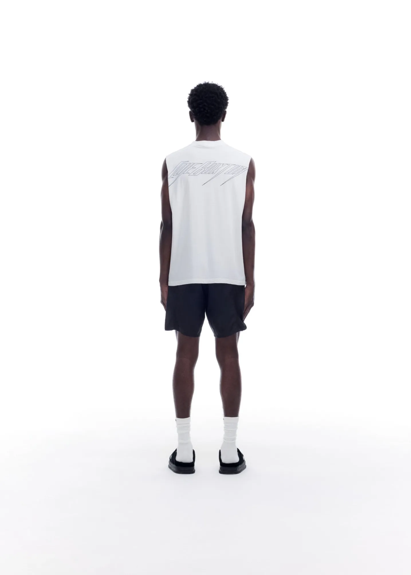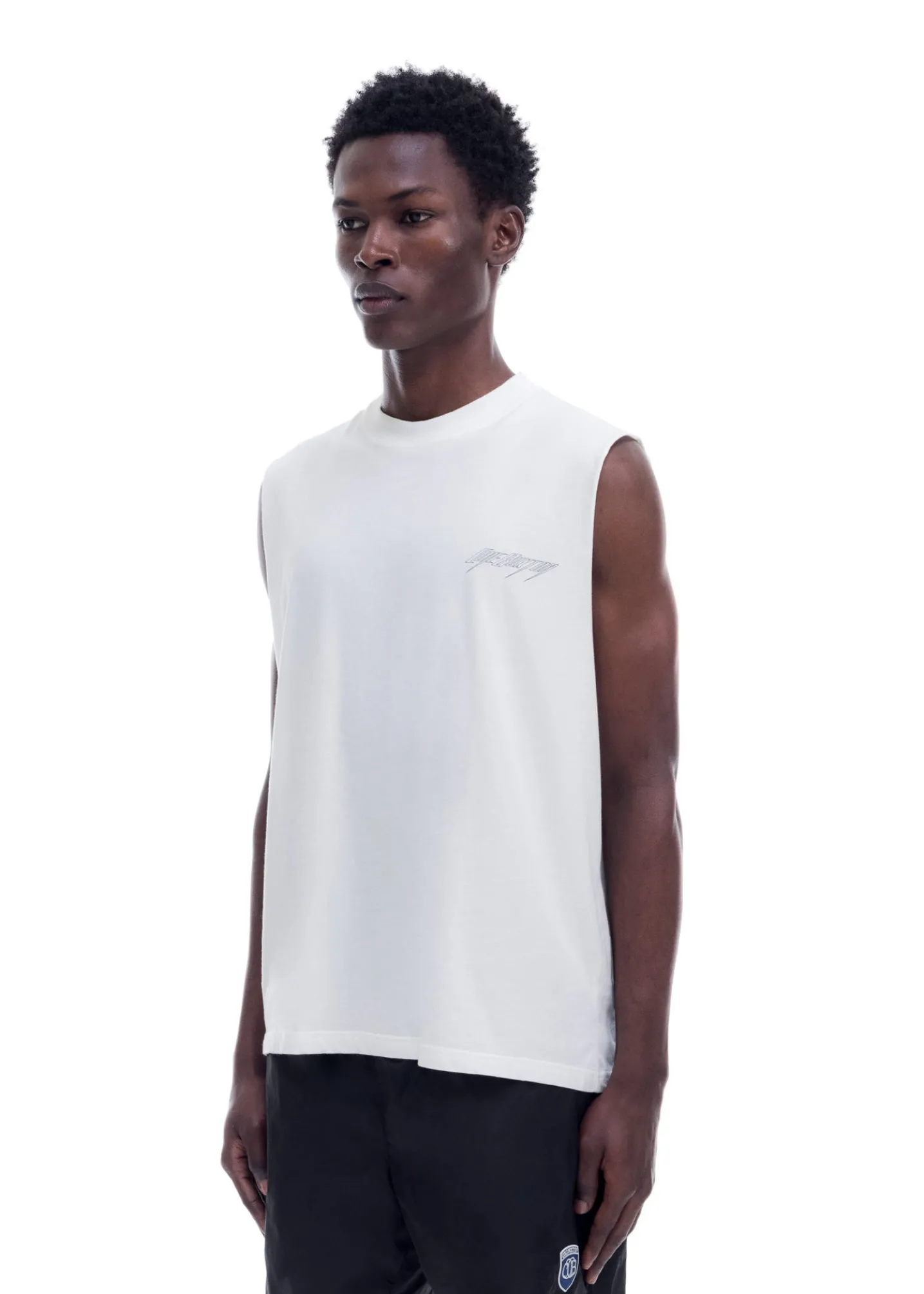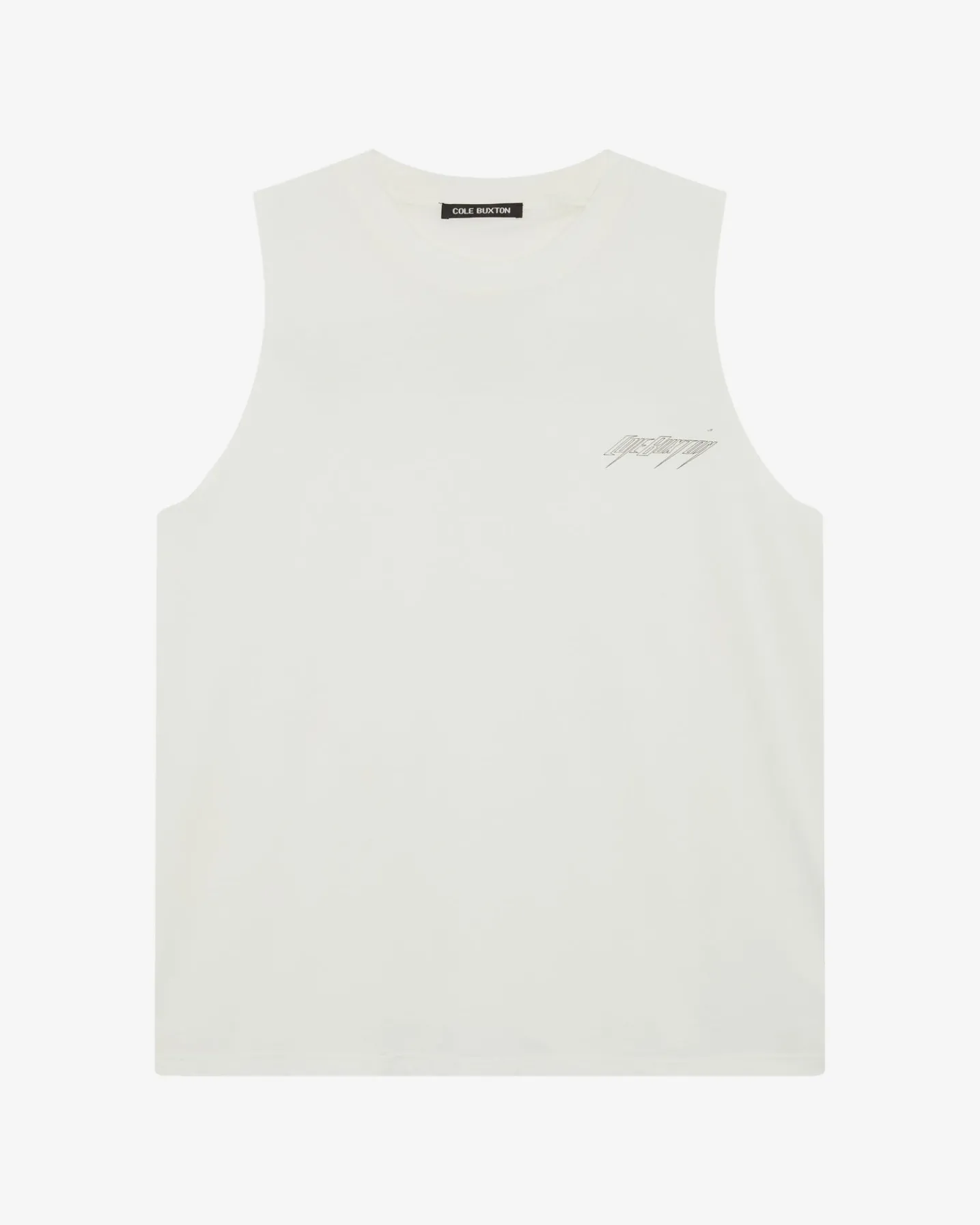 The racer cut off. Cut in our refined ss25 shape with cut off sleeves from our luxury 100% cotton single jersey. Featuring our signature cover stitched neckline and our resort racing logo printed across the back and Cole Buxton on the left chest.
