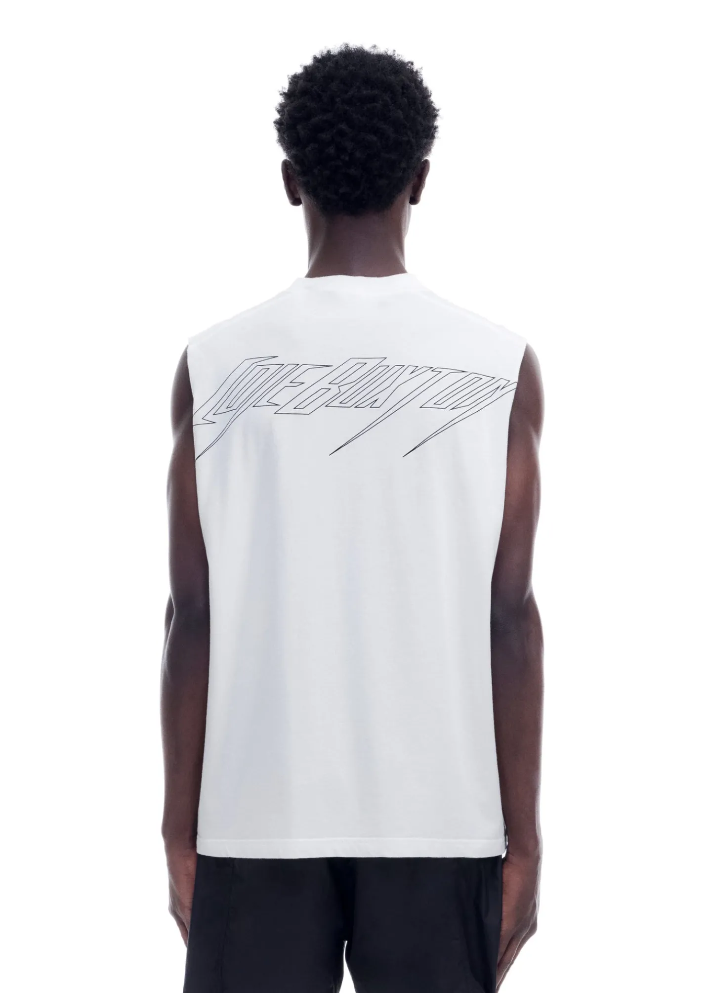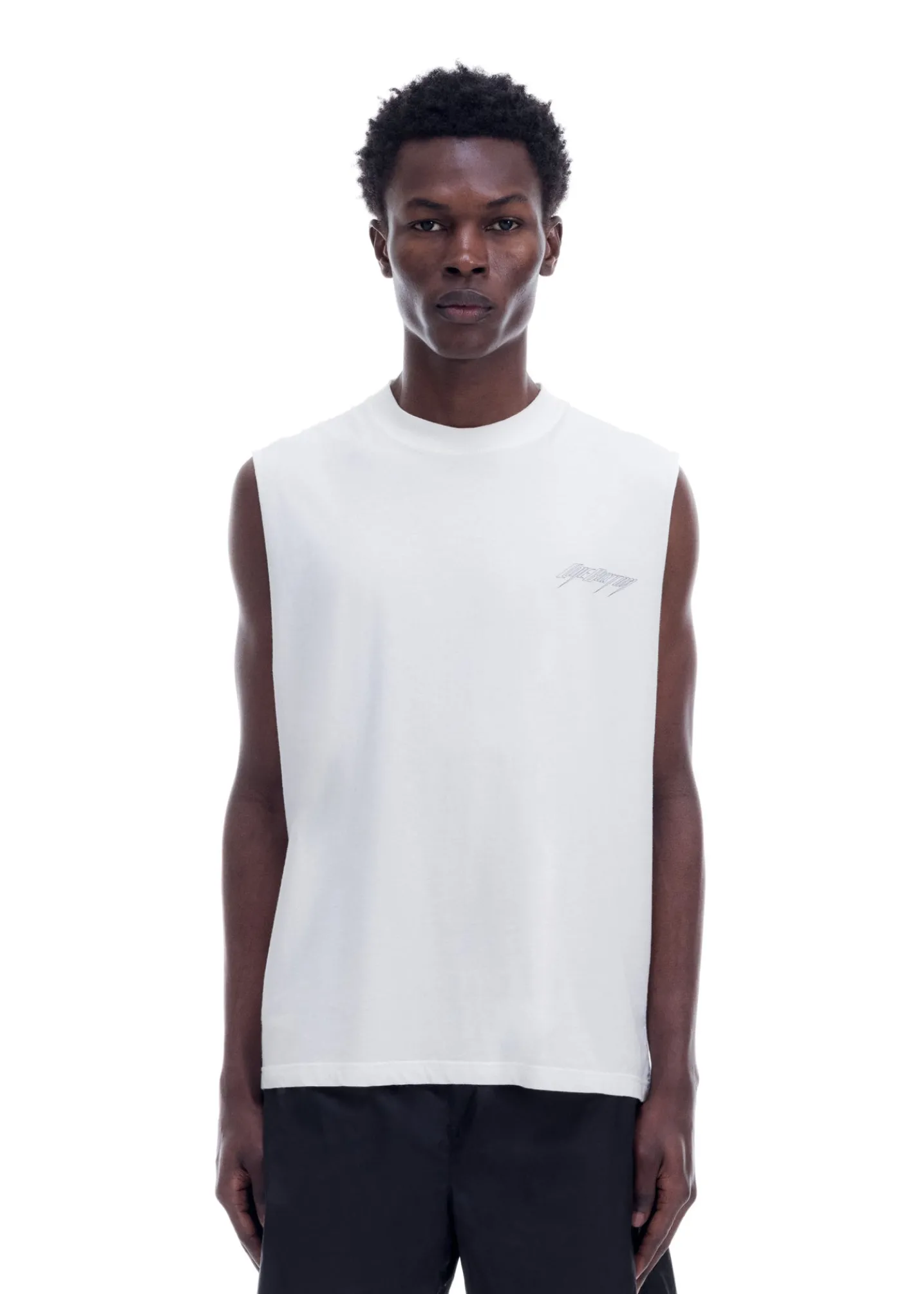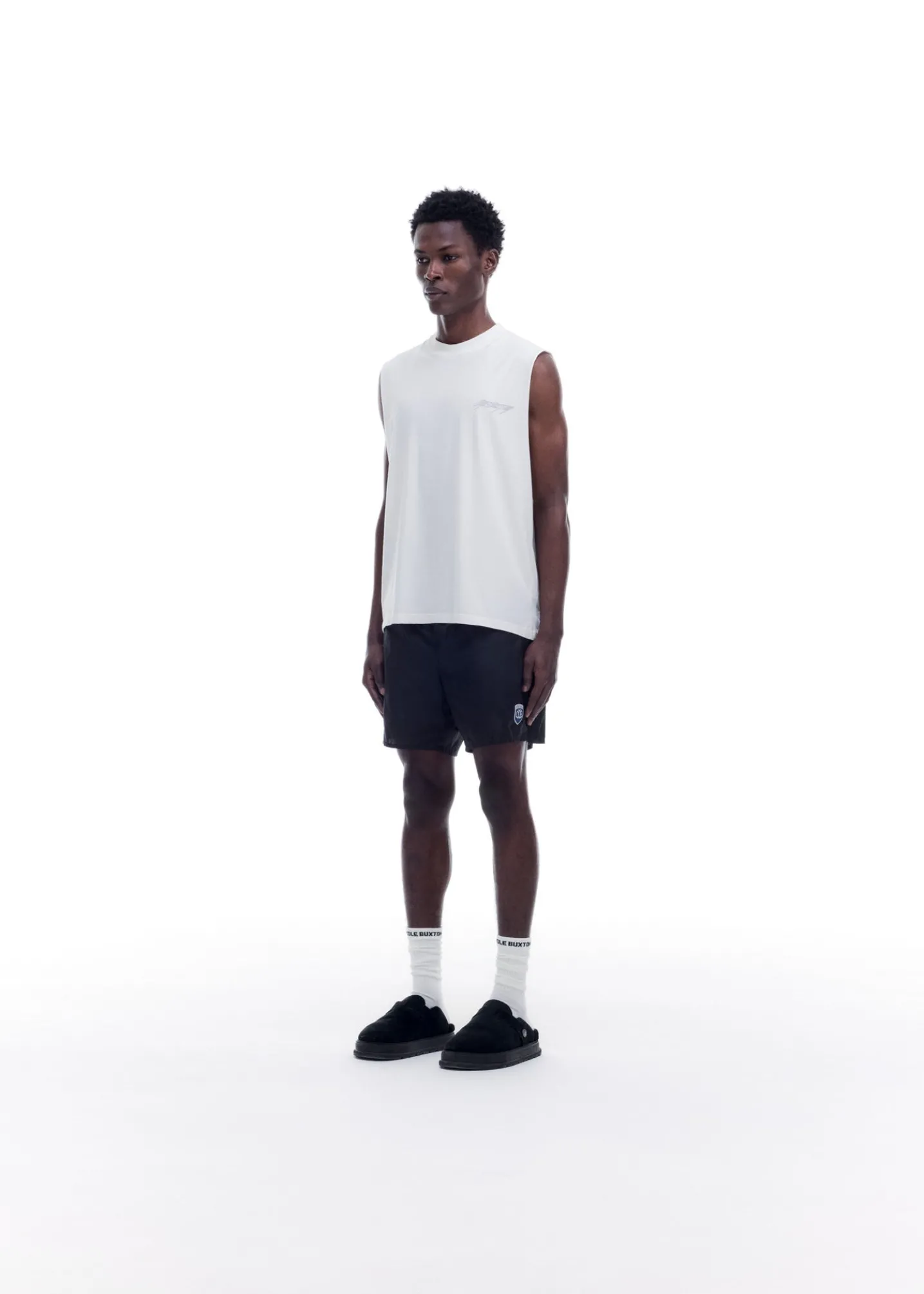 The racer cut off. Cut in our refined ss25 shape with cut off sleeves from our luxury 100% cotton single jersey. Featuring our signature cover stitched neckline and our resort racing logo printed across the back and Cole Buxton on the left chest.