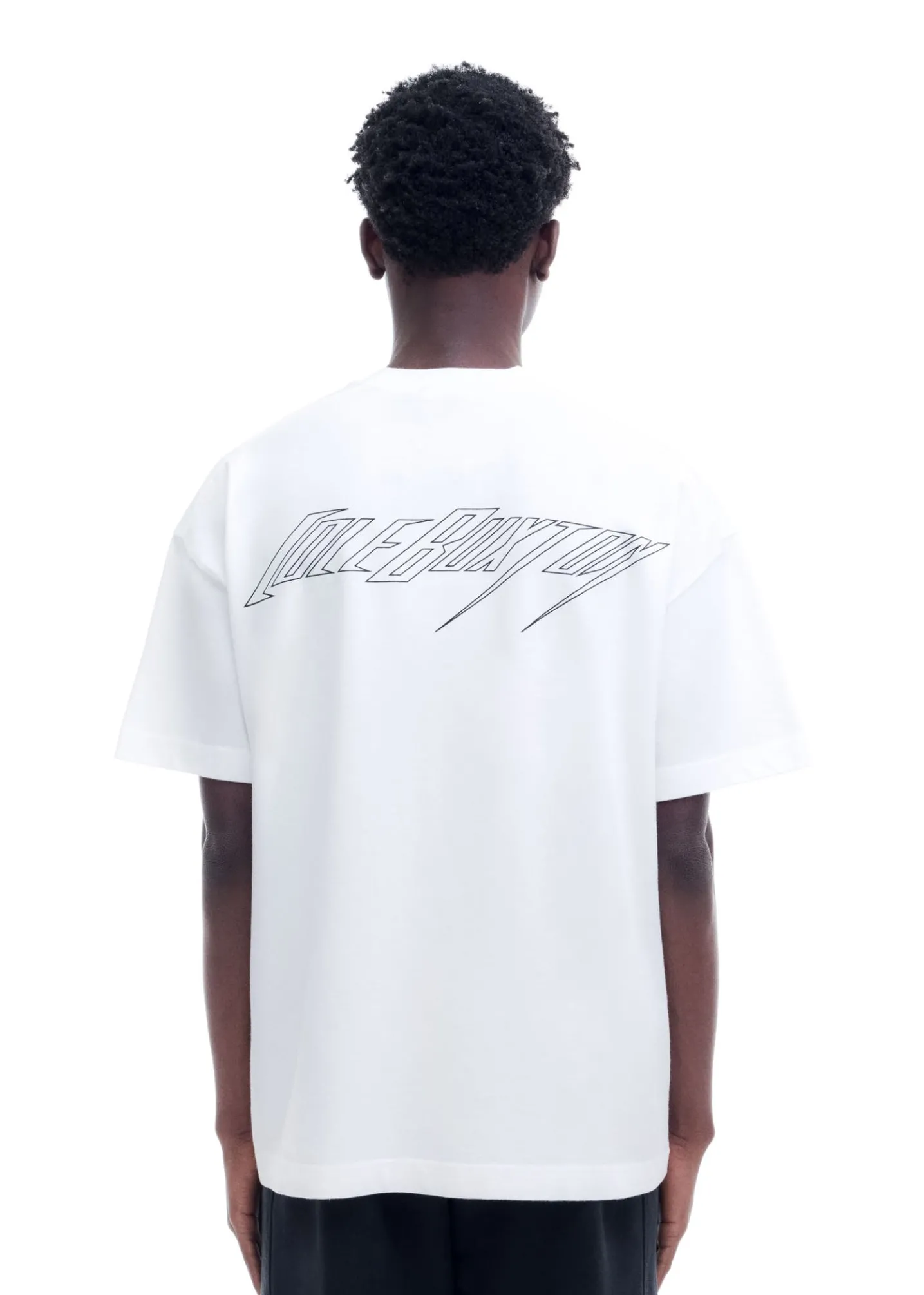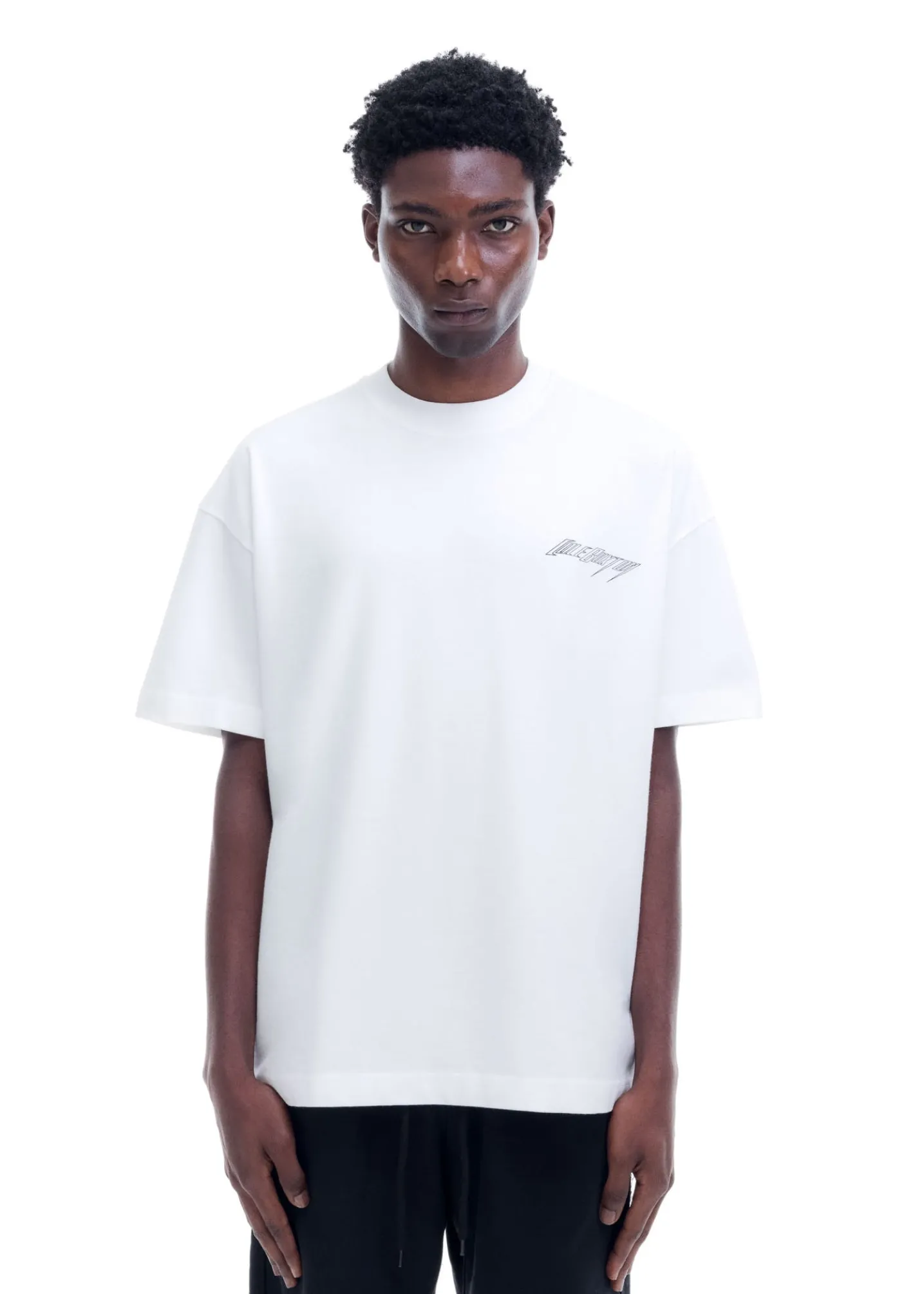 The Racer T-Shirt. Cut from our heavyweight 100% cotton in a oversized silhouette with our signature coverstitch neckline and single needle shoulder detail. Featuring our resort racing logo printed across the back and on the left chest.