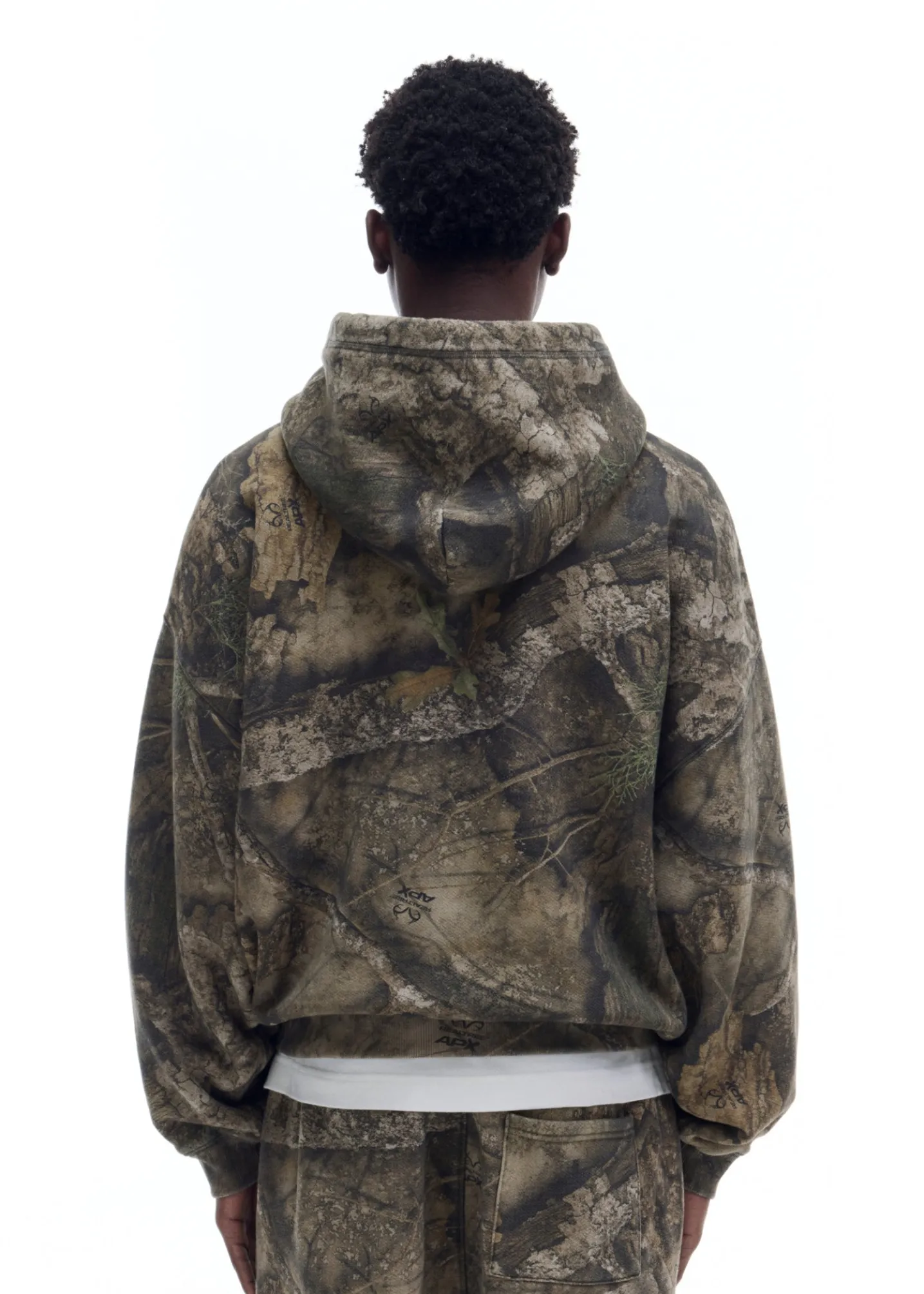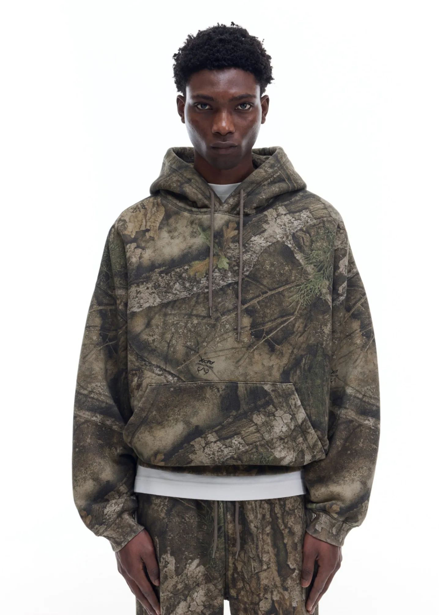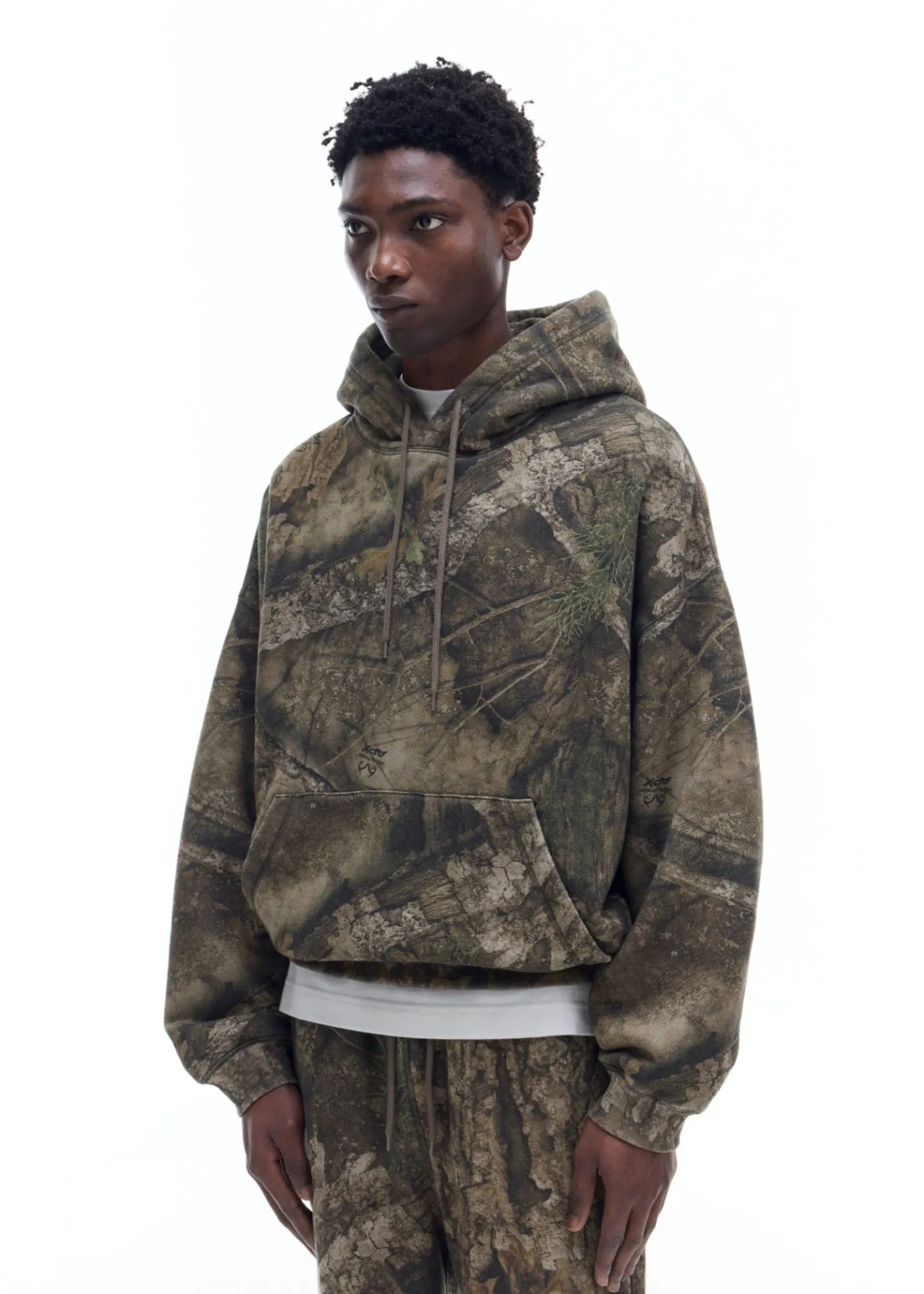 The Realtree hoodie is cut in a boxy silhouette from our newly developed 500gsm half brushed Realtree American fleece. This fabric has been printed with official Realtree APX camouflage and heavily washed then treated to create an authentic vintage fade.