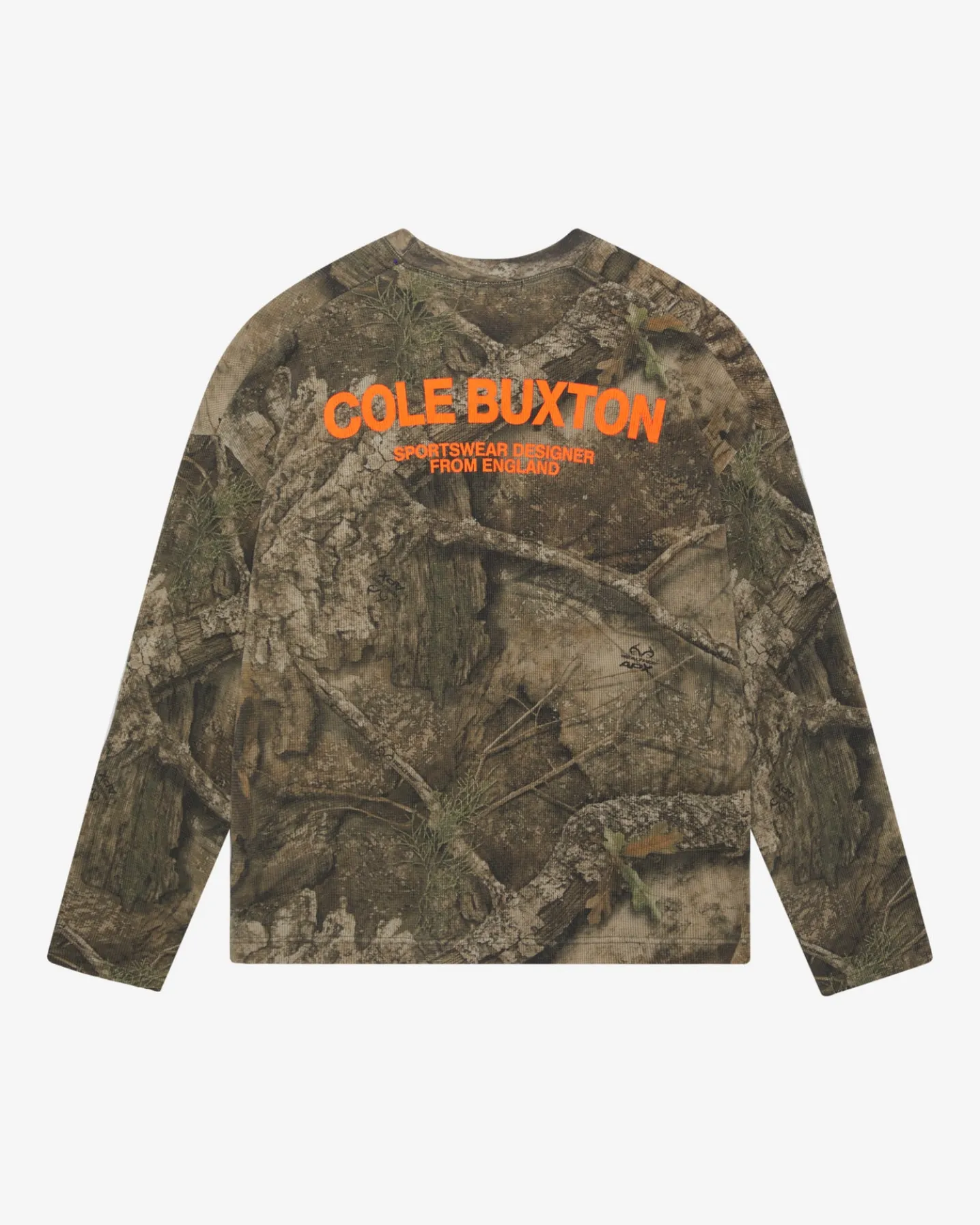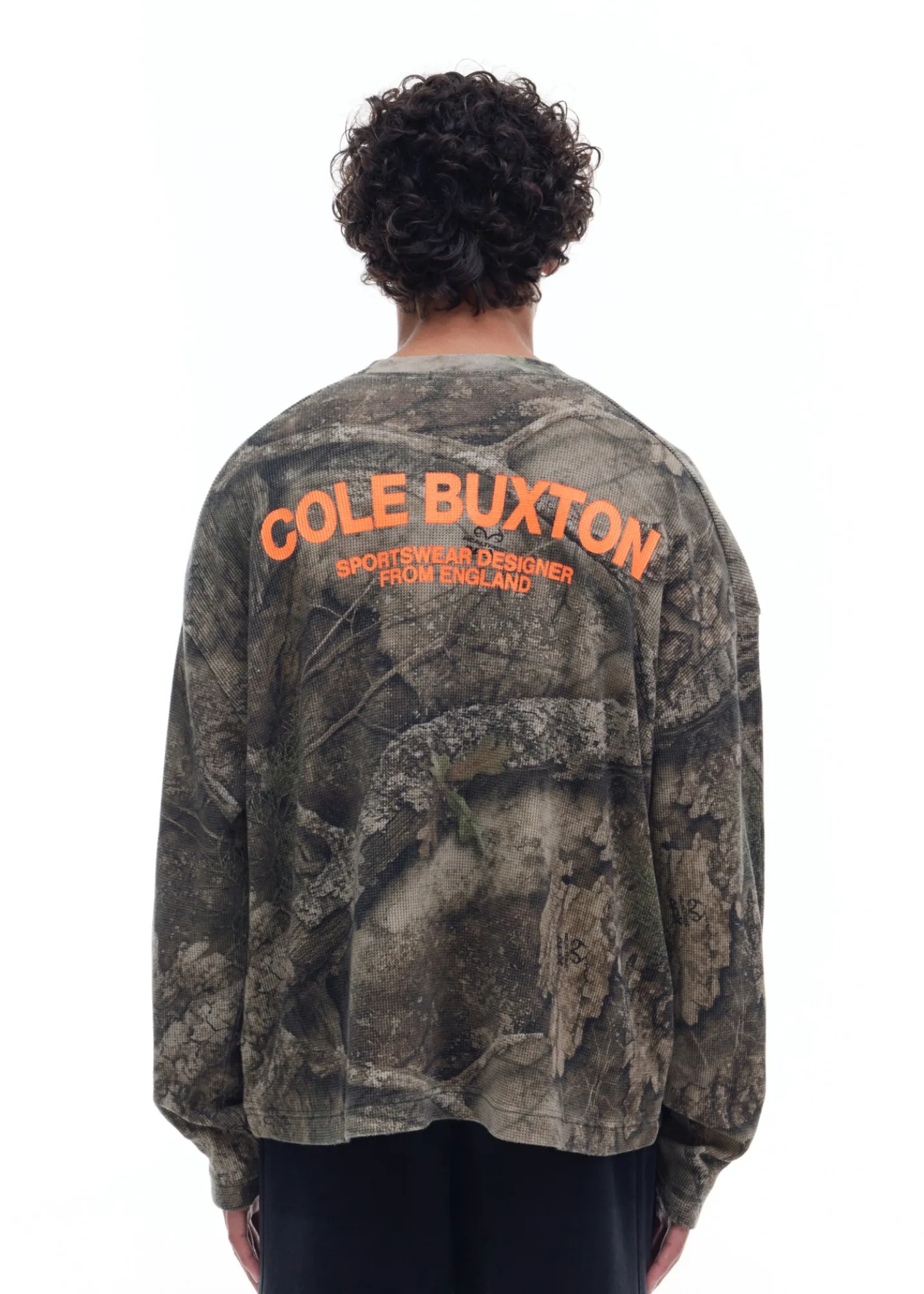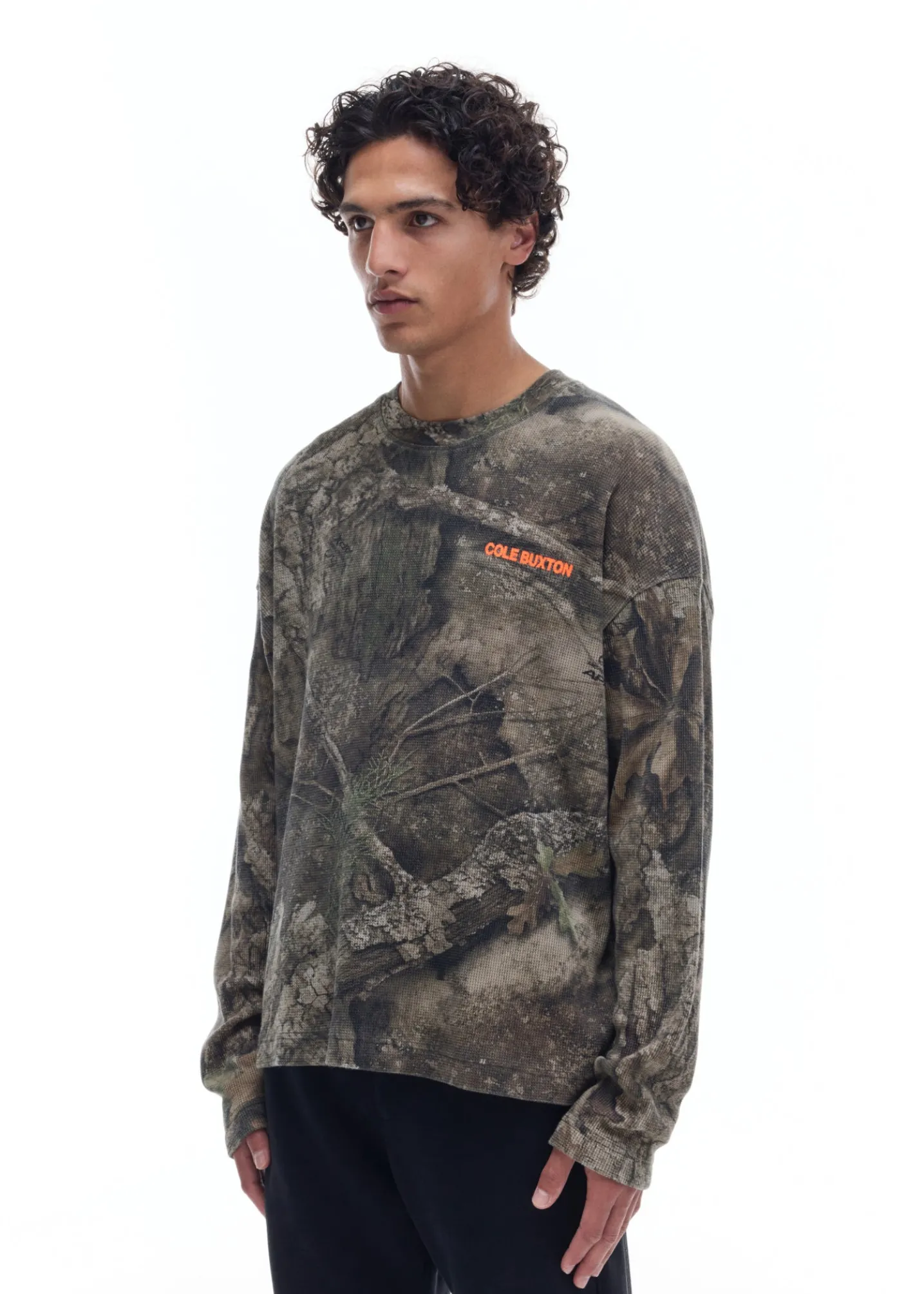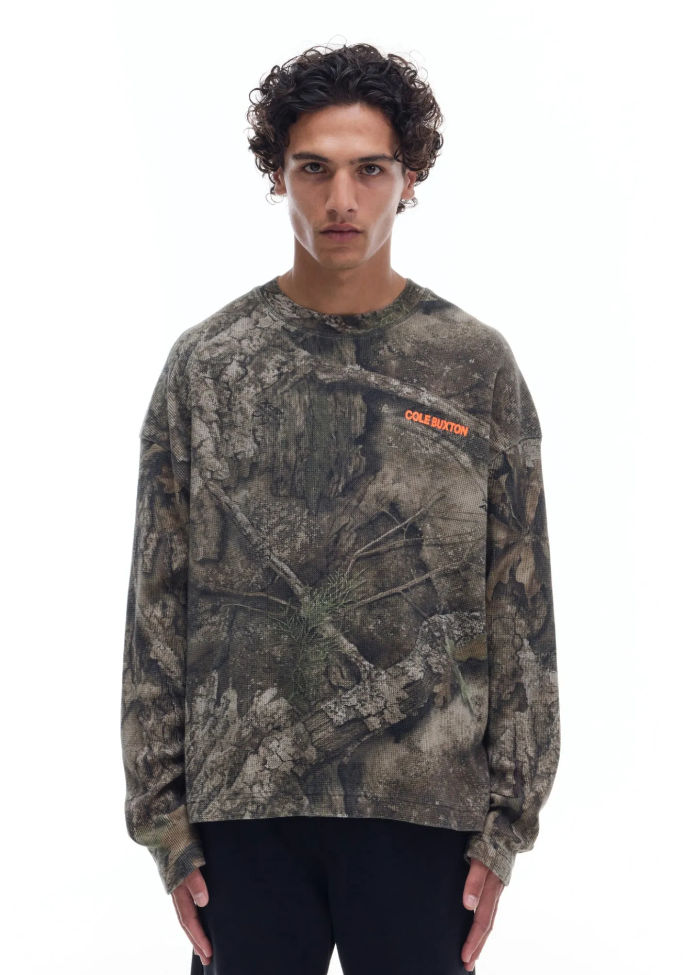 The Realtree waffle long sleeve is cut from100% cotton official Realtree APX waffle knit jersey in an oversized silhouettewith a soft vintage wash and features oursports wear logo printed in fluorescent orange inspired by traditional American hunting gear.