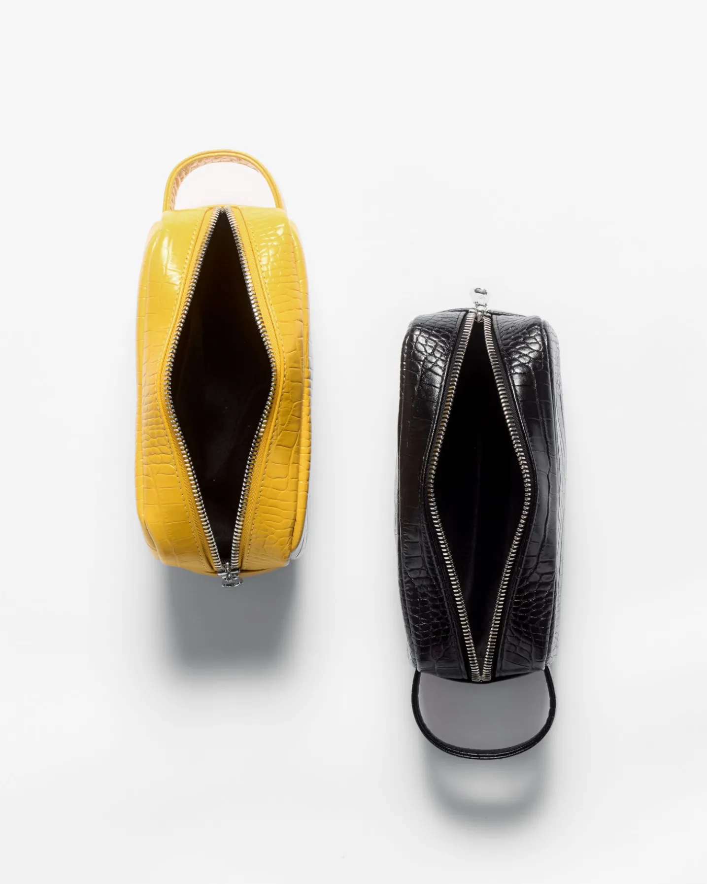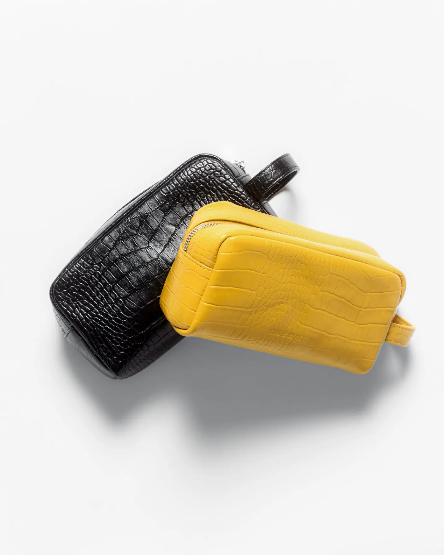 The resort wash bag is the latest addition to our luxury leather accessories offering. Made from Italian croc-embossed cow leather featuring a CB branded zip and self carry handle.
