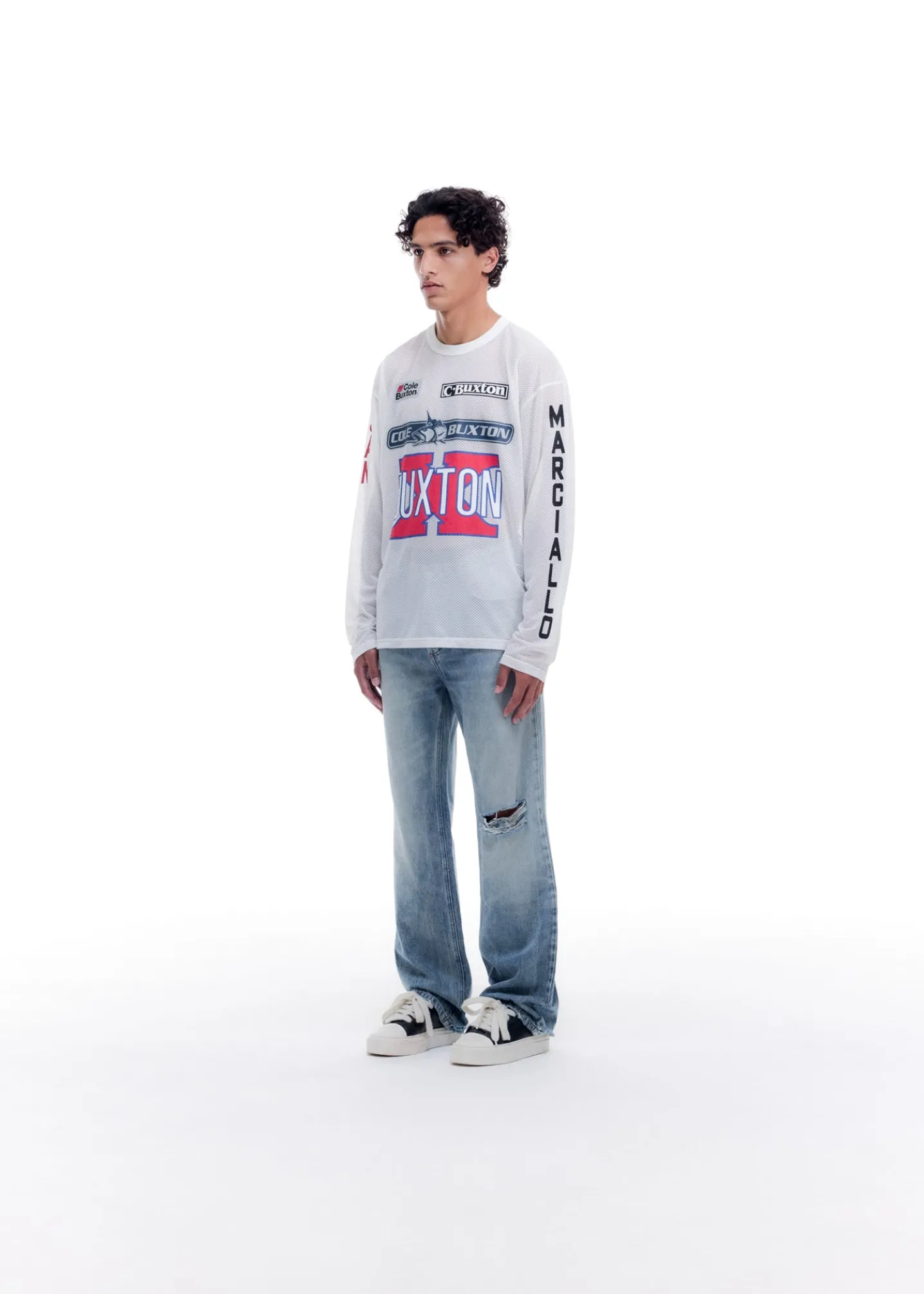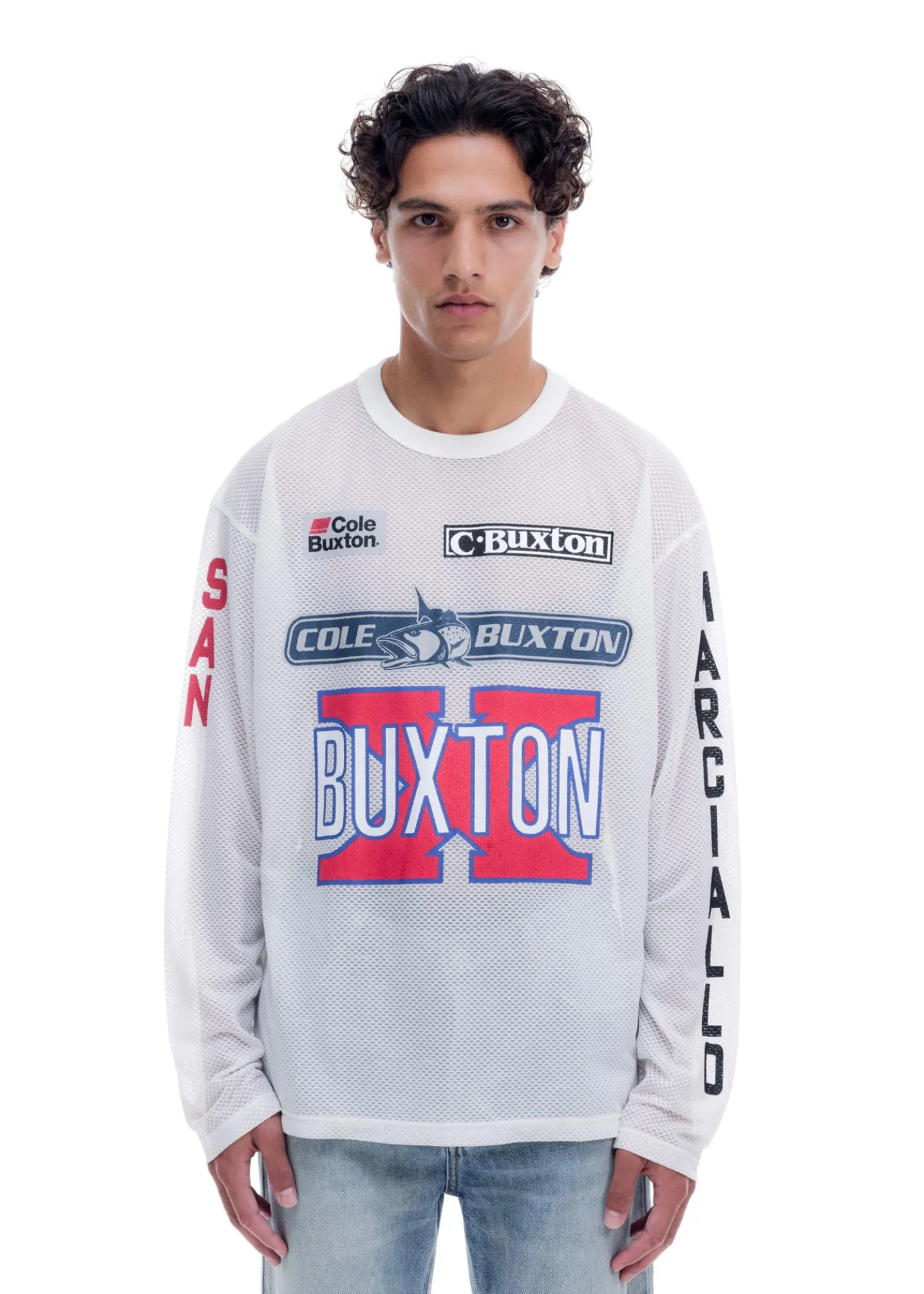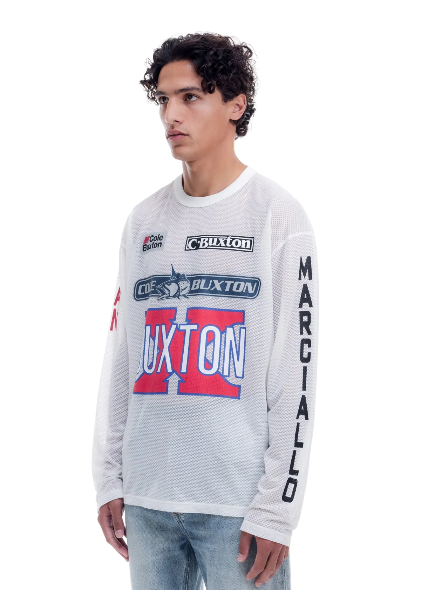 Introducing the sport fishing long sleeve, cut from a sheer polyester technical mesh with a ribbed neckline in our relaxed long sleeve silhouette. The decal logos have been inspired by big game fishing.