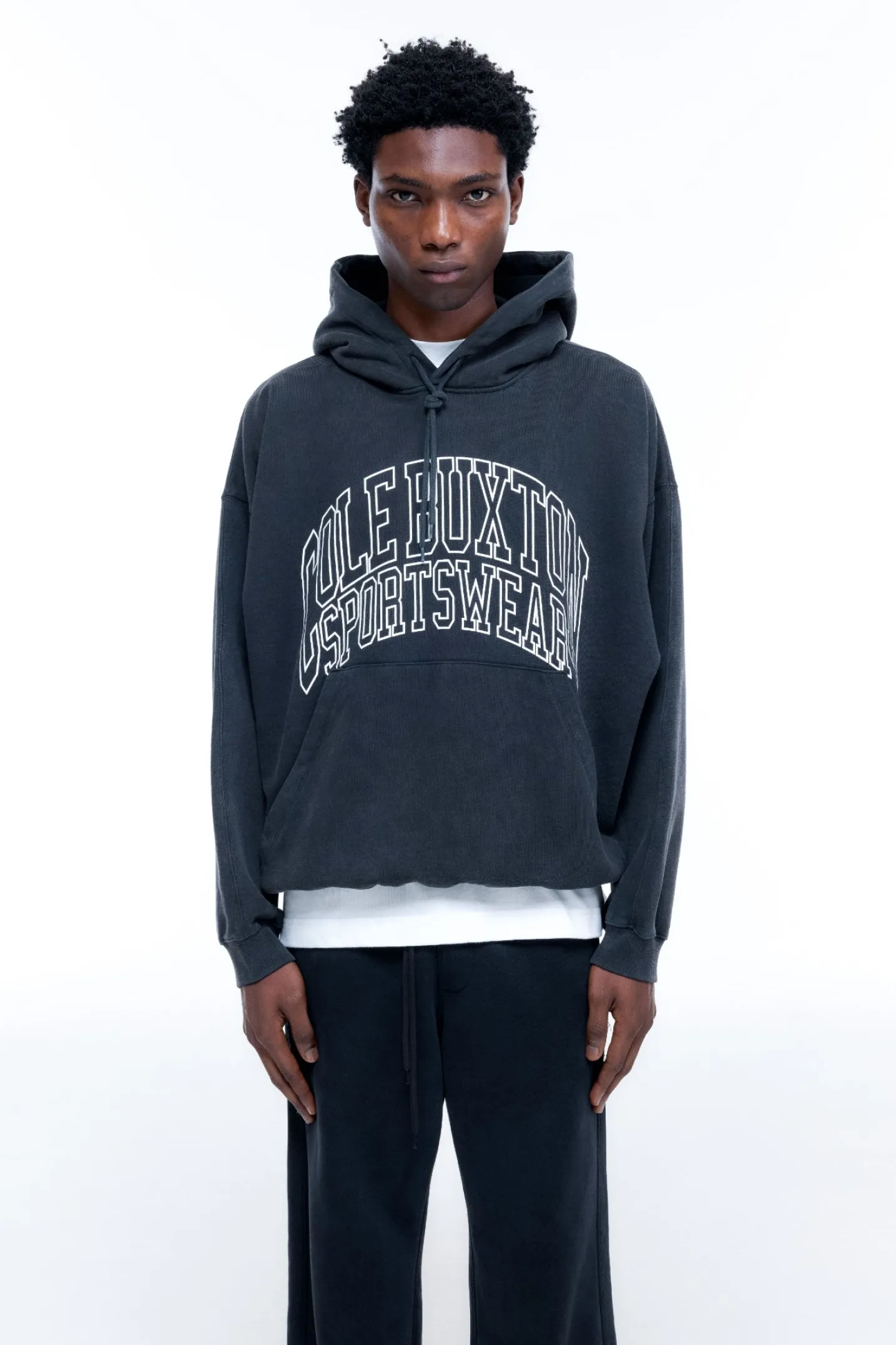 The sportswear arc hoodieis cut in our classic pulloverhoodie silhouette with a soft vintage wash, dropped shoulders and signature outer arm seam. Featuring our brand new sportswear arc logo inspired by ivy league merchandise.