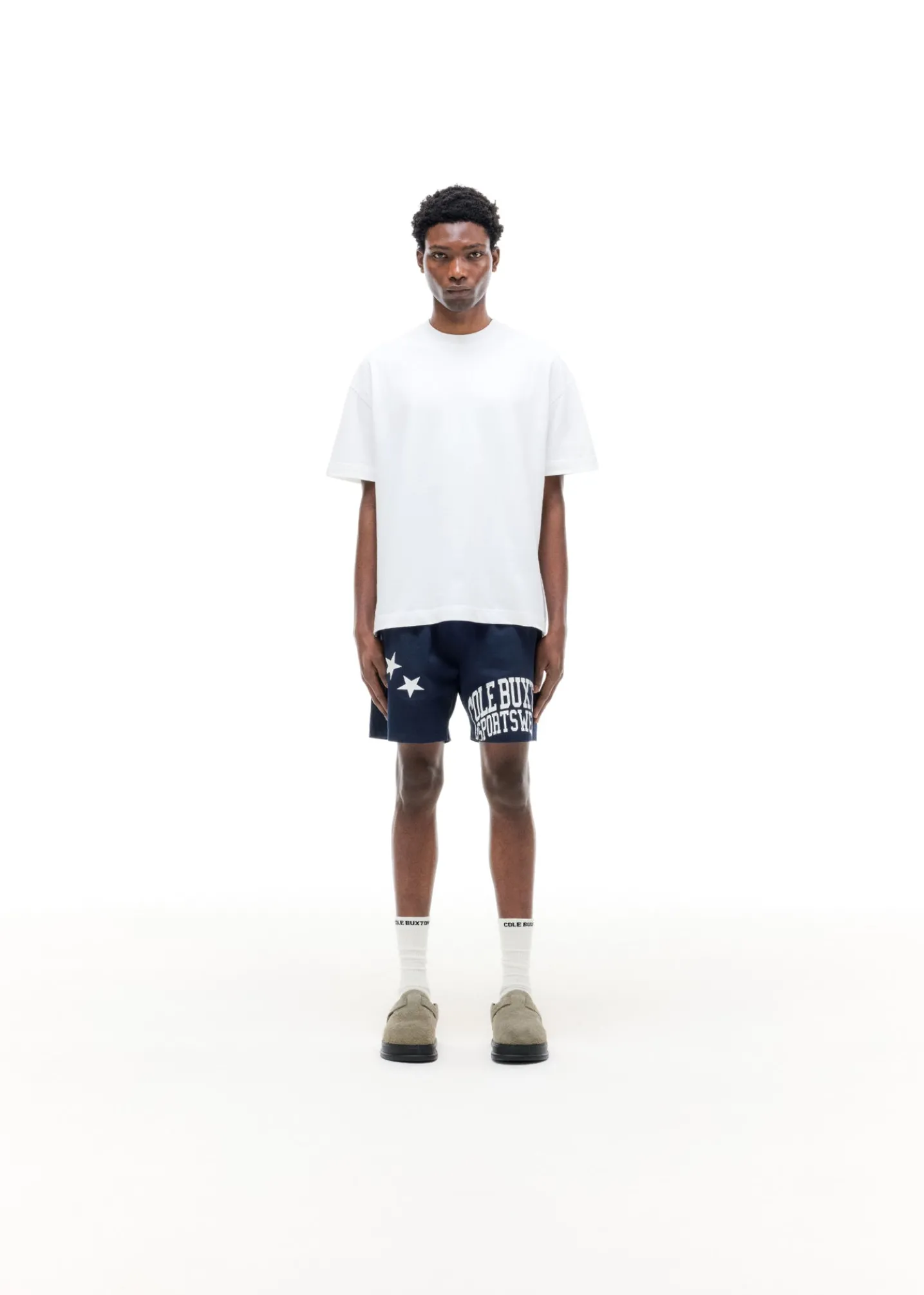 Introducing the sportswear star shorts. Inspired by old school American sportswear these have been cut in an old school boxy silhouette with a double print of arched stars and our varsity typeface. Made from a soft 100% cotton twill.