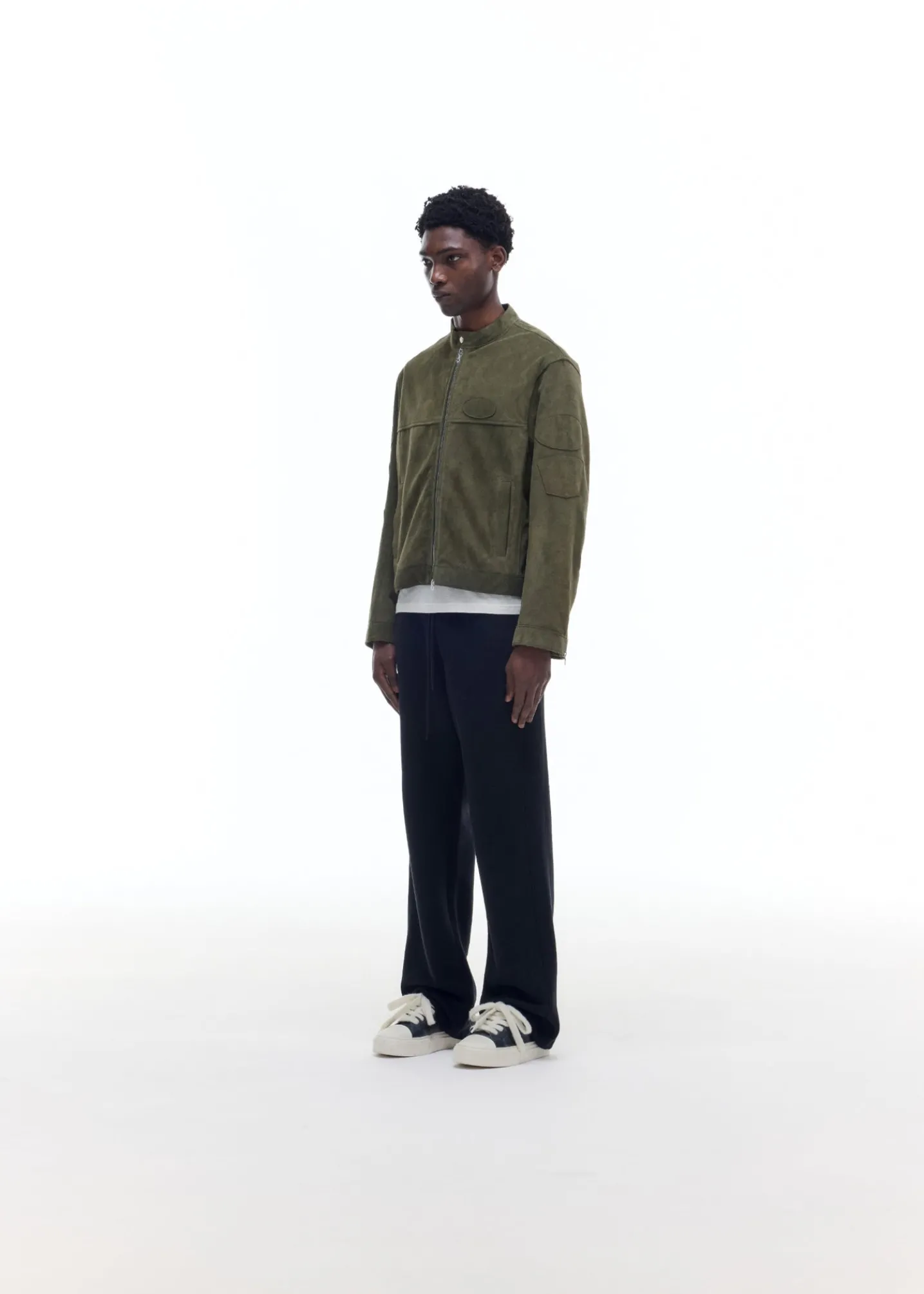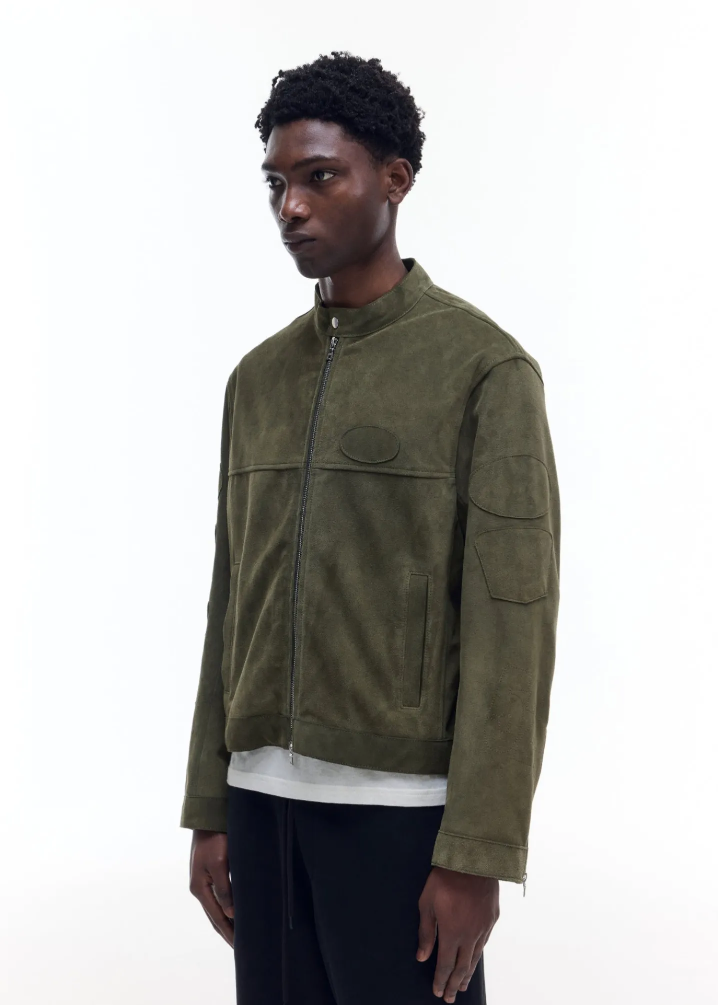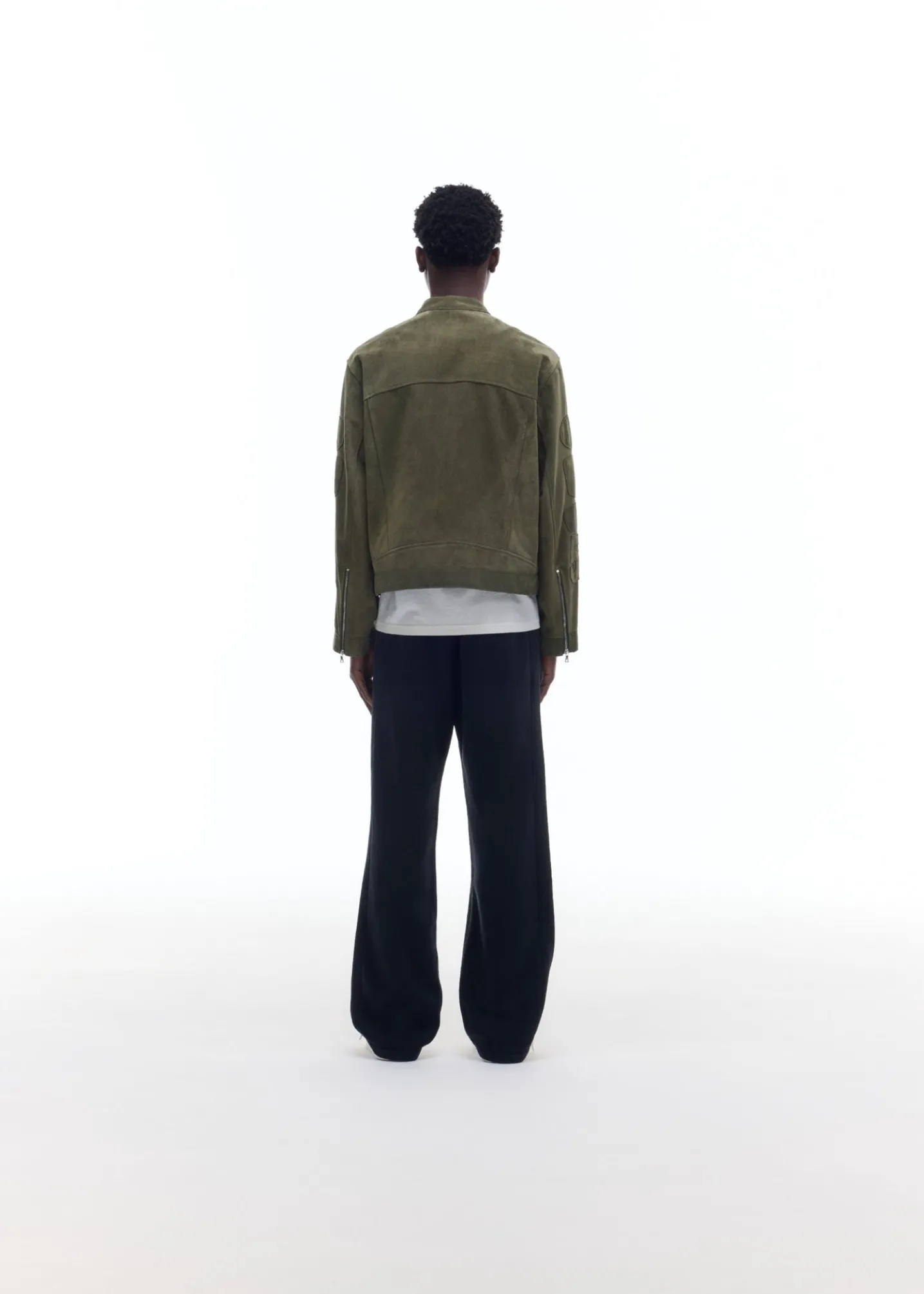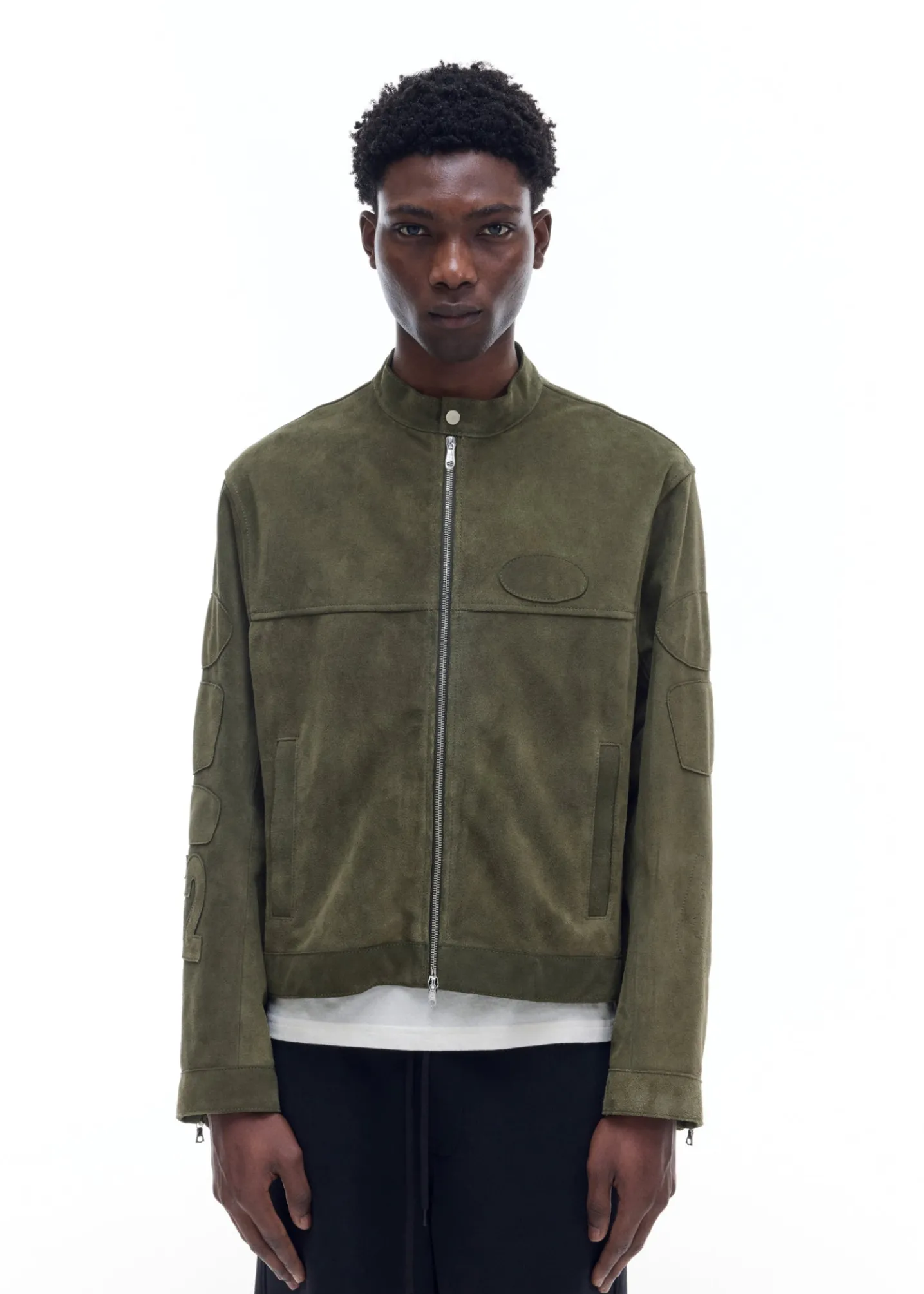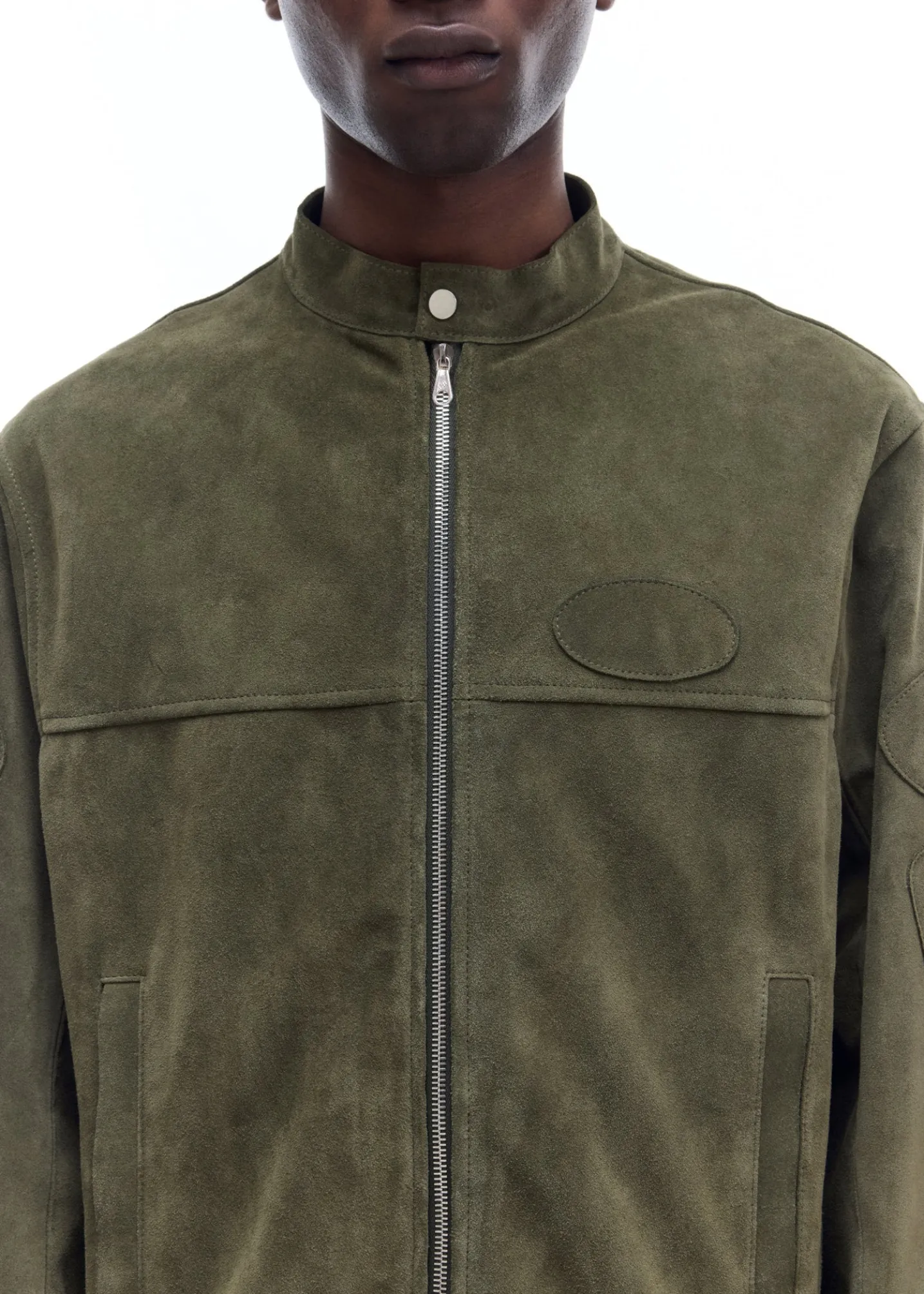 The suede cafe racer jacket is brand new for ss25. Cut from an ultra soft suede in a fitted cropped silhouette. We have taken design cues from old school motorcycle jackets with reference to patches and a subtle tonal 52 on the left sleeve end. Finished with brushed steel snaps and a 2 way branded CB zip closure.