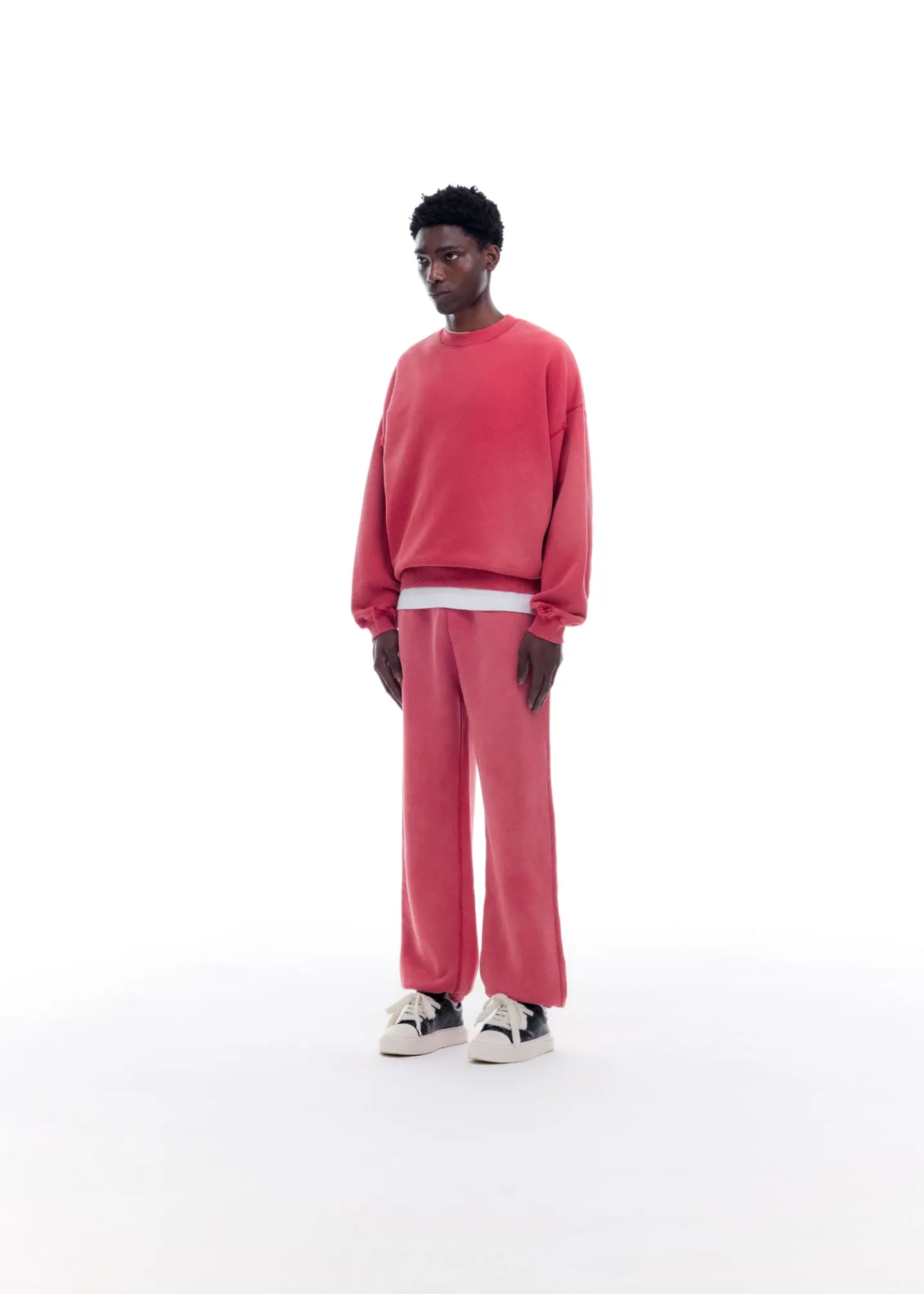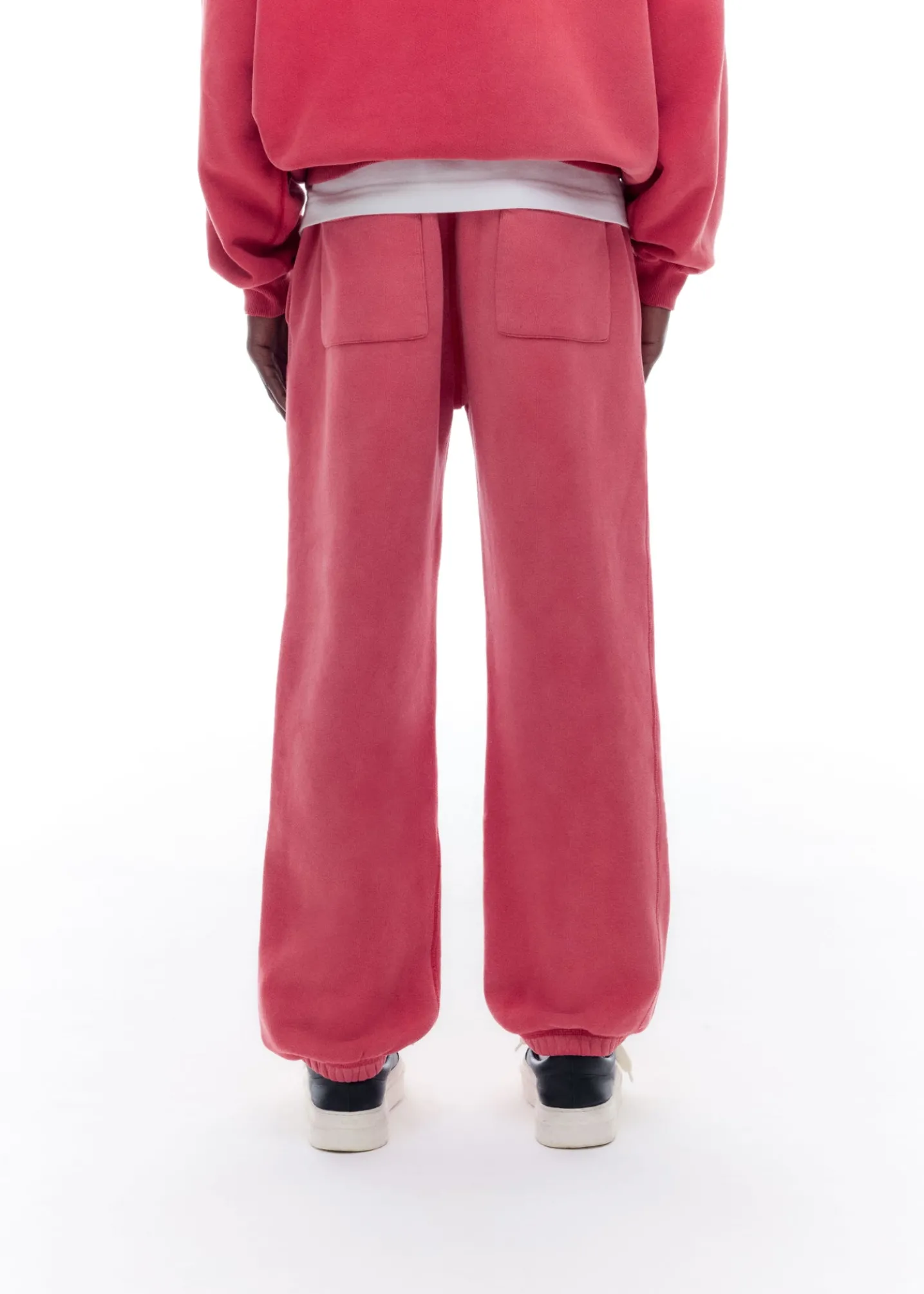 The sun fade sweatpant, a brand new pant for SS25. We’ve developed a brand new 500gsm half brushed American fleece for this that’s heavy in weight yet has a luxury drape. We have heavily washed this garment and treated it to achieve an authentic vintage sun fade.