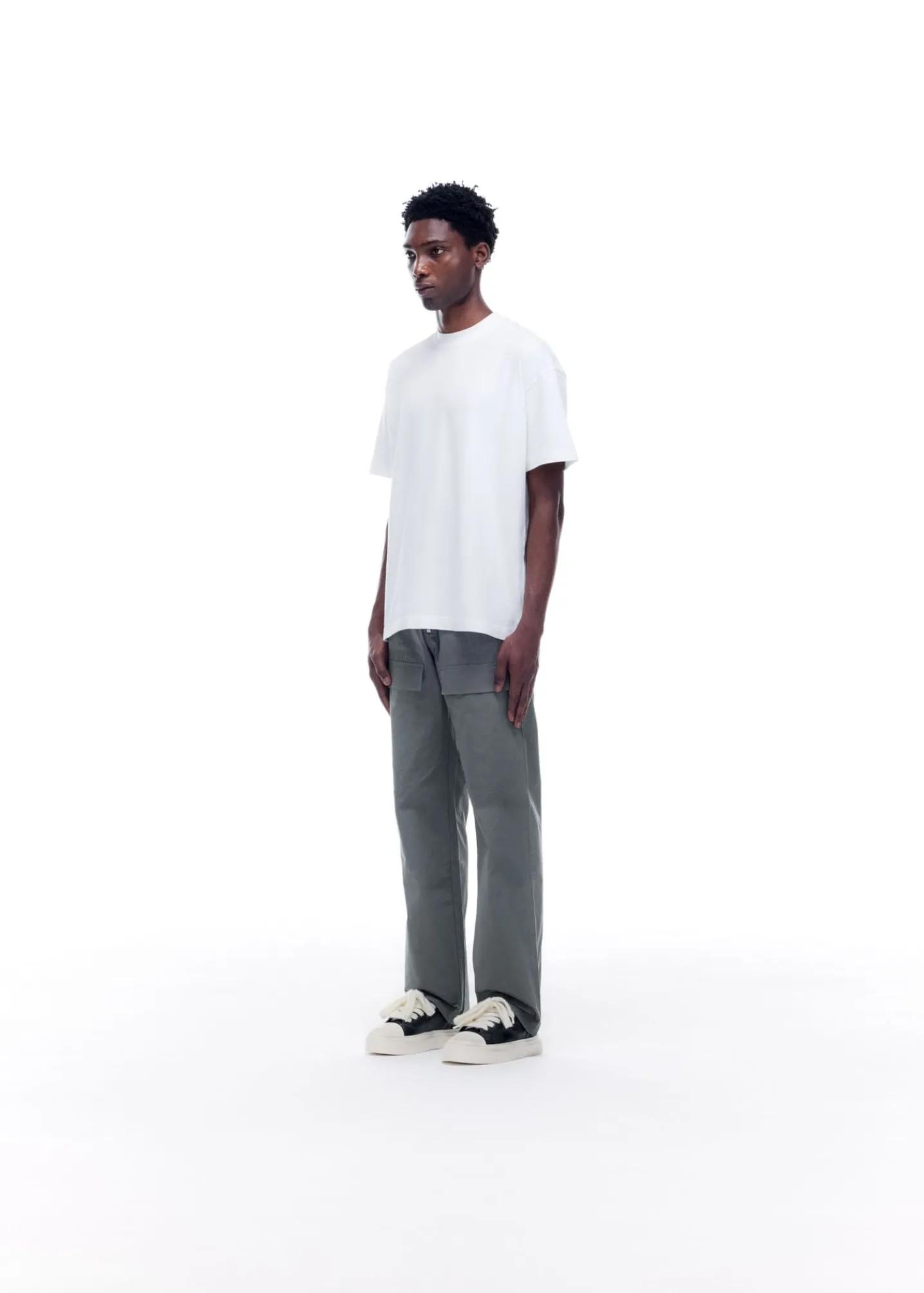 The CB tech cargos are a brand new timeless pant for SS24. Cut from a crisp lightweight cotton in a slim silhouette with a slight flare at the hem to sit perfectly over the shoe. Featuring an exposed zipped fly and signature thigh pockets with topstitched detailing across the pocket flaps.