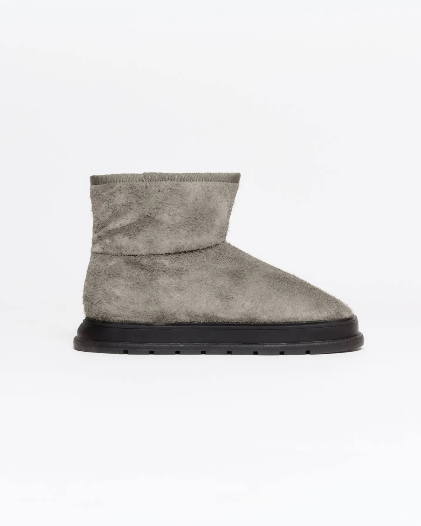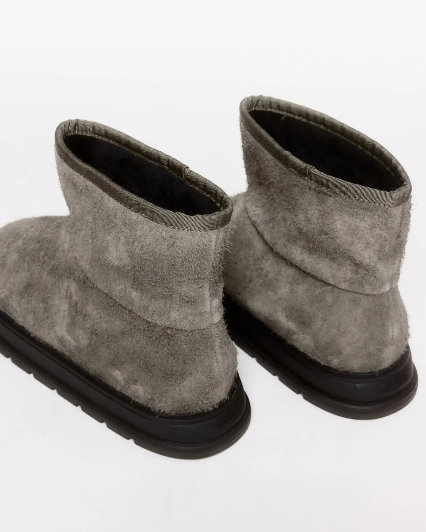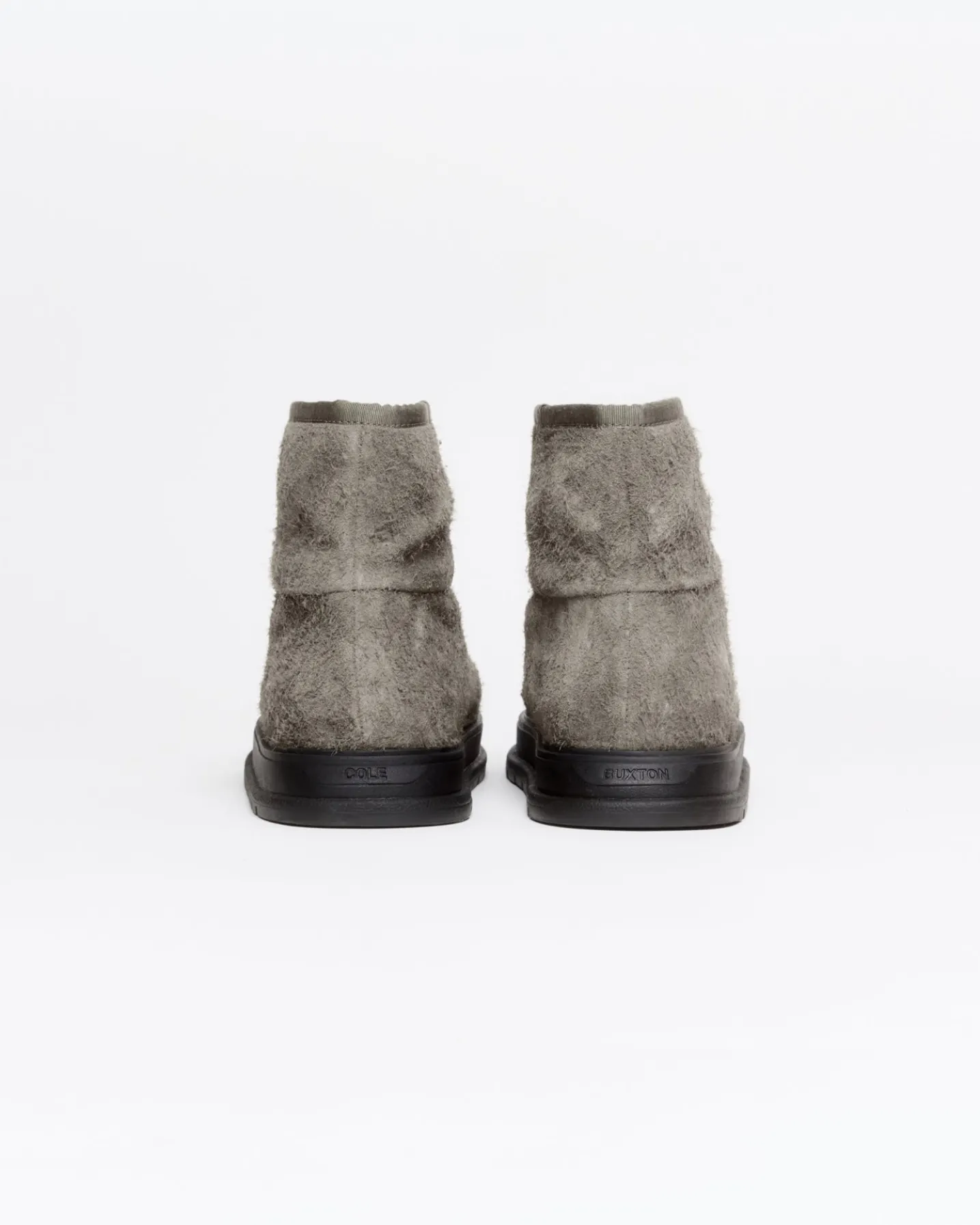 Introducing the CB Big Boot. A luxury take on the classic lace-less boot . We’ve cut the upper from a hand brushed Italian suede and lined it with a plush high pile shearling. The rubber sole is chunky in its silhouette, with a pronounced tread and alternate “Cole” / “Buxton” de-bossed on the rear heel.