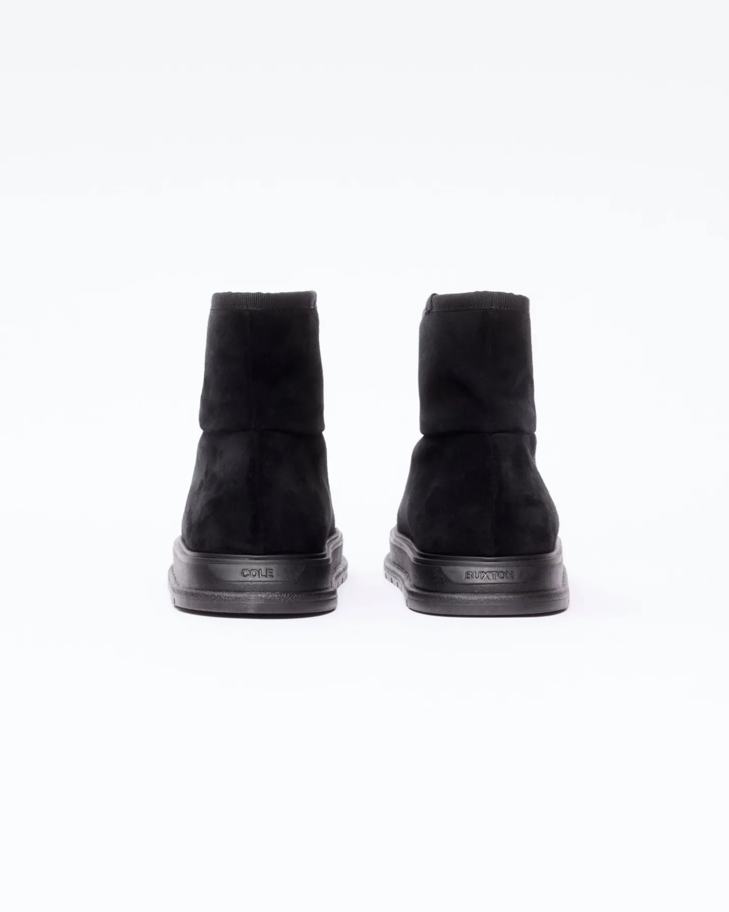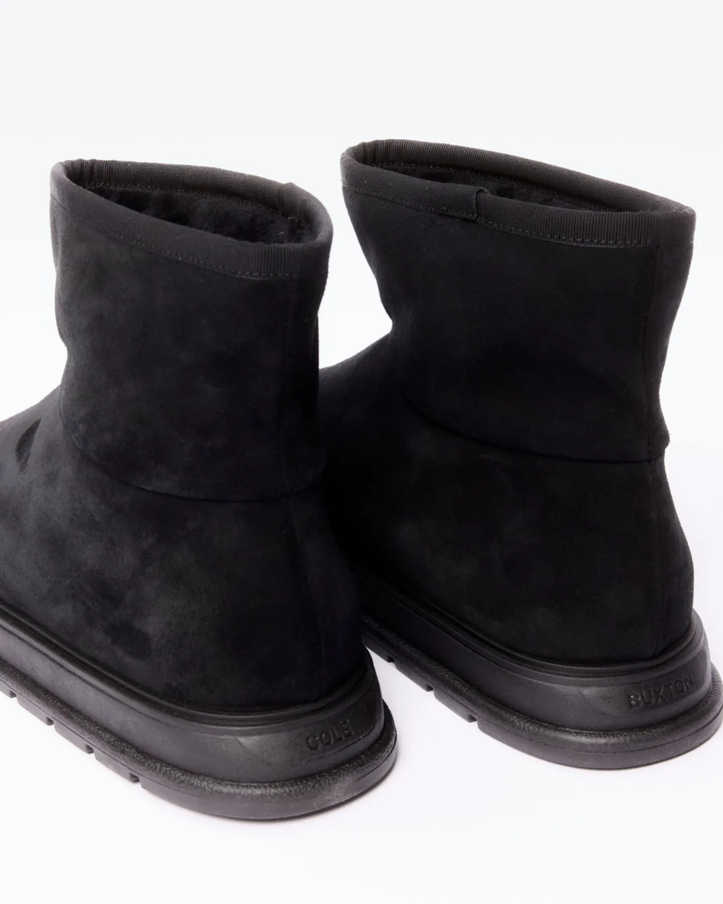 Introducing the CB Big Boot. A luxury take on the classic lace-less boot . We’ve cut the upper from a hand brushed Italian suede and lined it with a plush high pile shearling. The rubber sole is chunky in its silhouette, with a pronounced tread and alternate “Cole” / “Buxton” de-bossed on the rear heel.