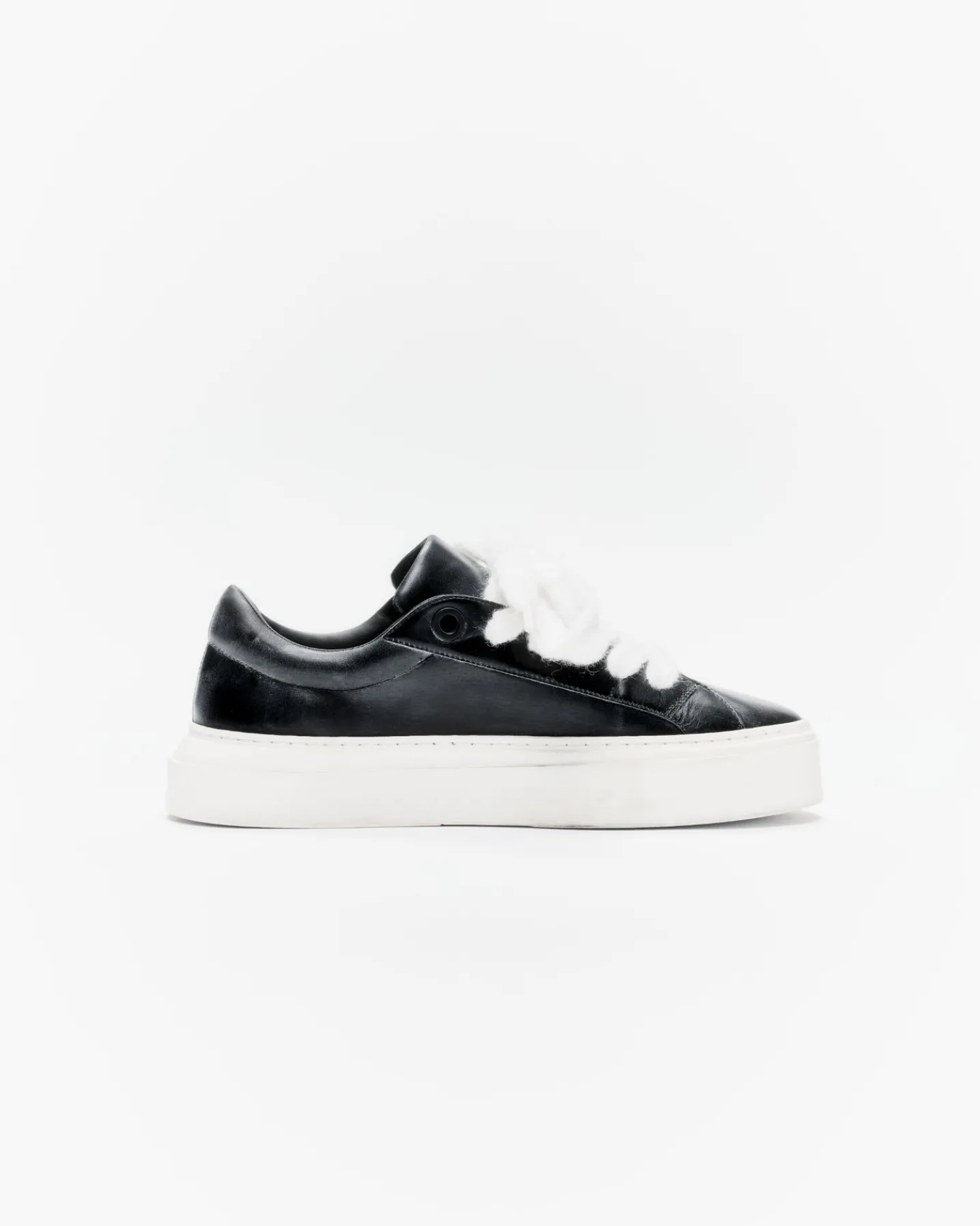 Introducing the CB star sneaker. Inspired by classic court shoes, we’ve cut the upper from a hand-waxed Italian leather with a padded tongue, cupped heel and lined with 50% leather / 50% loopback cotton. The rubber sole is chunky in its silhouette, with alternate “Cole” / “Buxton” de bossed on the rear heel, and our double star emblem split across the left and right underside of the sole. We’ve branded this sneaker with our classic star emblem appliqué in contrasting leather.Each pair comes with a set of natural and pink flat woven mohair laces.