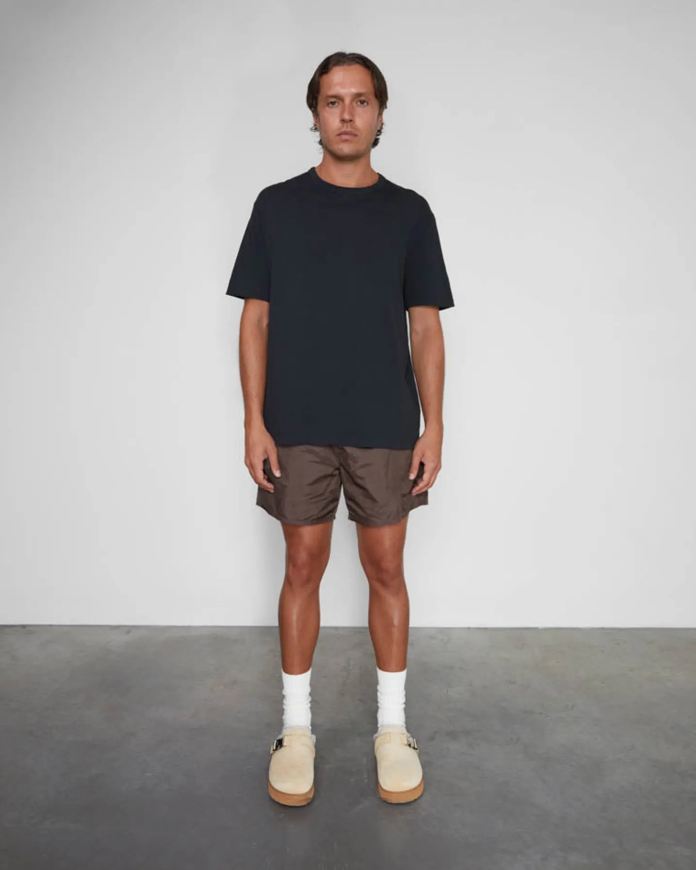 The Cole T-shirt is the newest offering in our t-shirt silhouettes. Cut in a more athletic shape from an open ended lightweight drapey cotton featuring a self fabric collar, coverstitched detailing throughout and a tonal classic embroidery on the back neck.